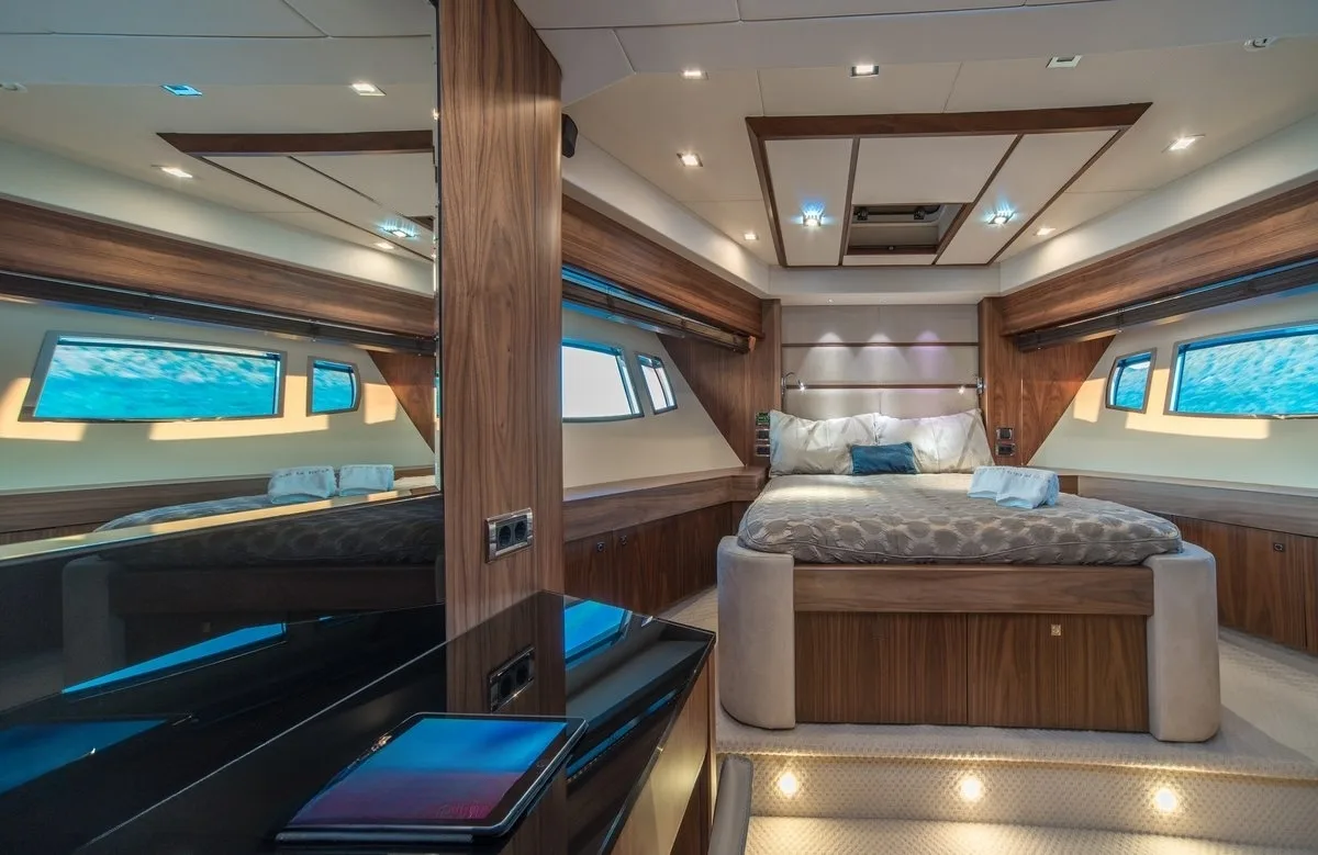 Accommodating up to eight guests, ‘Spirit Of The Sea’ offers a haven of comfort across its four exquisitely designed cabins. The master suite whispers elegance, while the VIP cabin and twin cabins provide a welcoming retreat. Waking up aboard is a delight, with each room offering a gentle reminder of the ocean’s presence, enhanced by the subtle sway of the yacht. Whether you’re enjoying a peaceful morning or retiring after a day of exploration, these accommodations envelop you in a serene embrace.