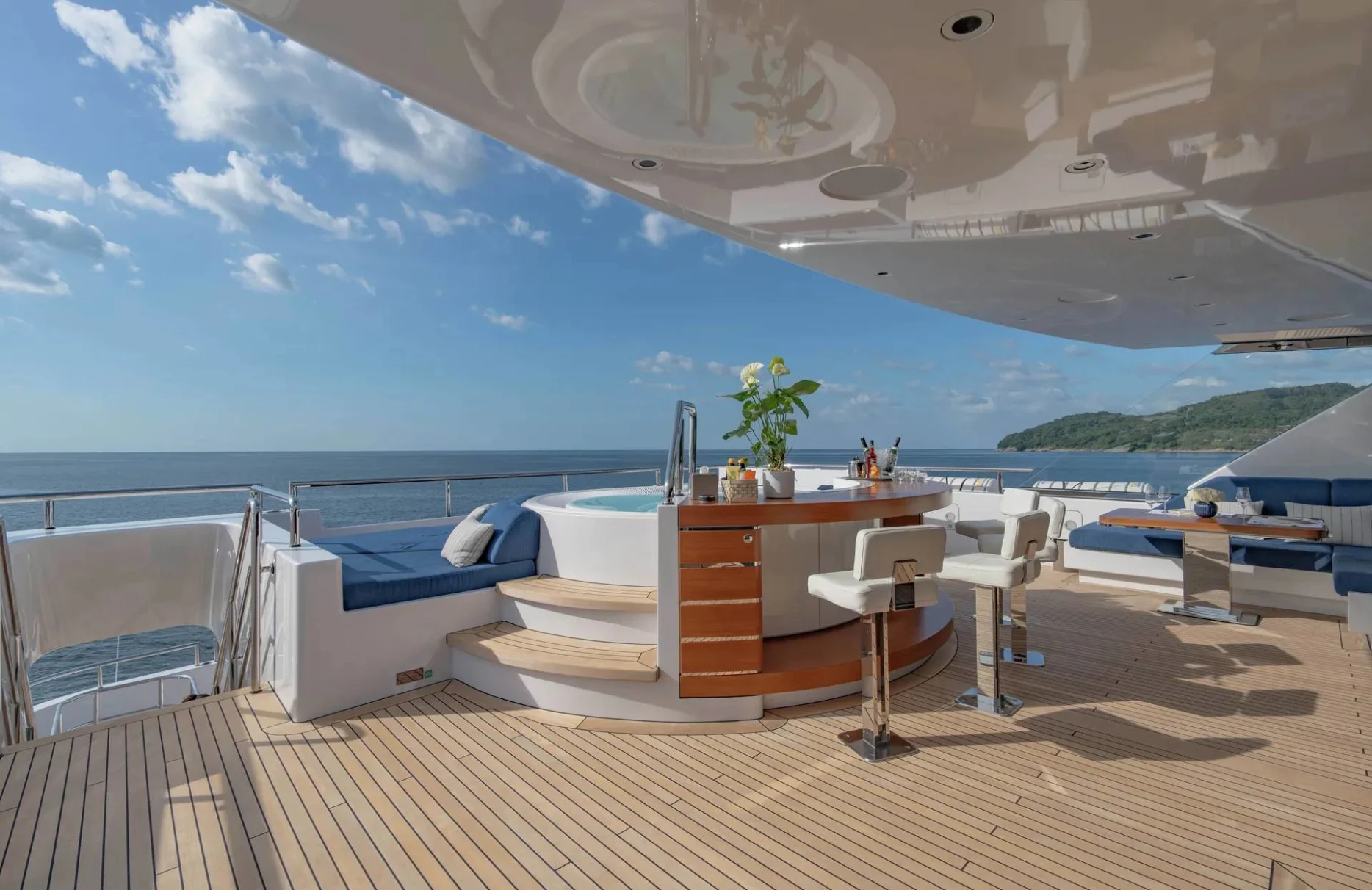 Onboard Starlust, life is a tapestry of exquisite moments. Mornings begin with a rejuvenating session in the gym, while afternoons invite you to unwind in the serene ambiance of the spa or bask in the warm embrace of the deck jacuzzi. The sun deck offers a perfect vantage point to soak up the sun, with plush sunpads providing comfort. As evening descends, the outdoor bar becomes the social heart of the yacht, where conversations flow as freely as the expertly crafted cocktails. The library offers a quiet refuge for those who seek solitude with a good book, and the sauna and steam room provide an indulgent retreat for relaxation.
