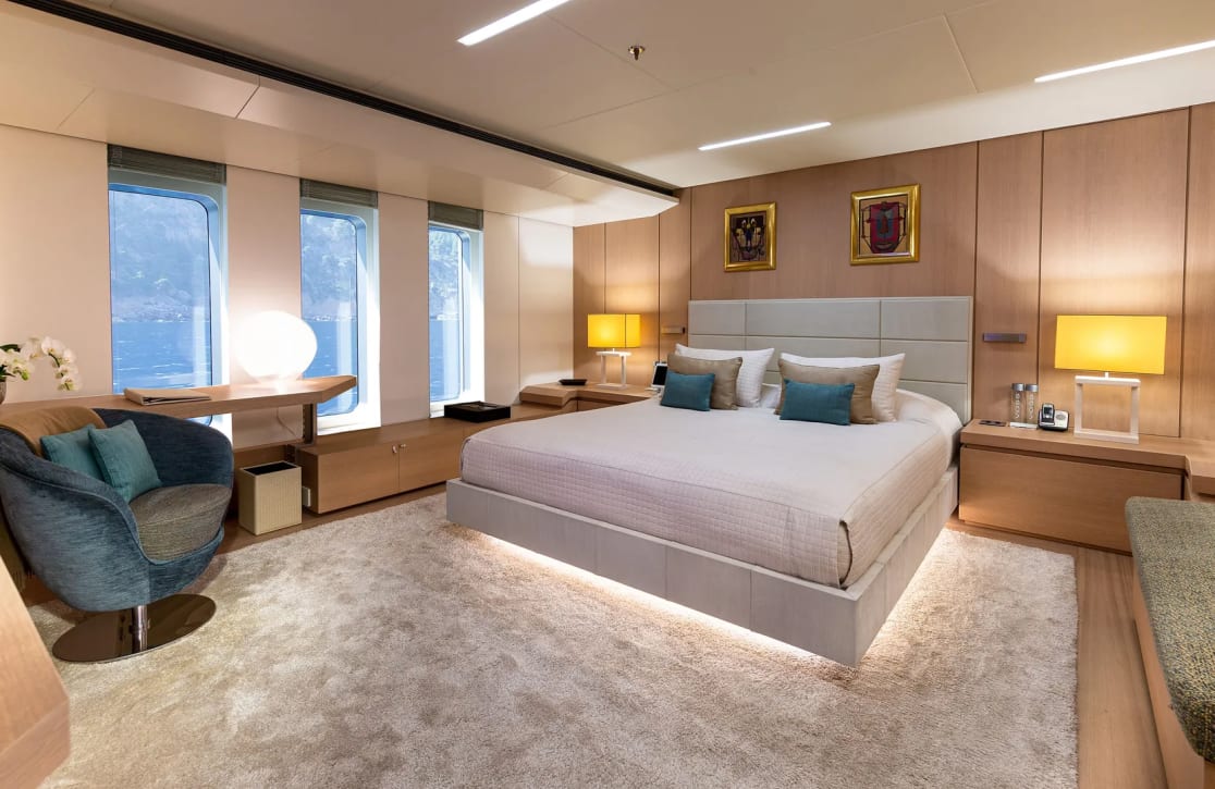 Stella Maris welcomes up to 12 guests in seven exquisite cabins, each a haven of comfort and elegance. The master suite offers a private retreat with panoramic views, while two VIP cabins and additional double and twin cabins provide a luxurious sanctuary for family and friends. Each morning, wake to the gentle sway of the yacht and the promise of a day filled with exploration and relaxation. The dedicated crew of nineteen ensures every detail is attended to, creating a seamless and memorable experience.