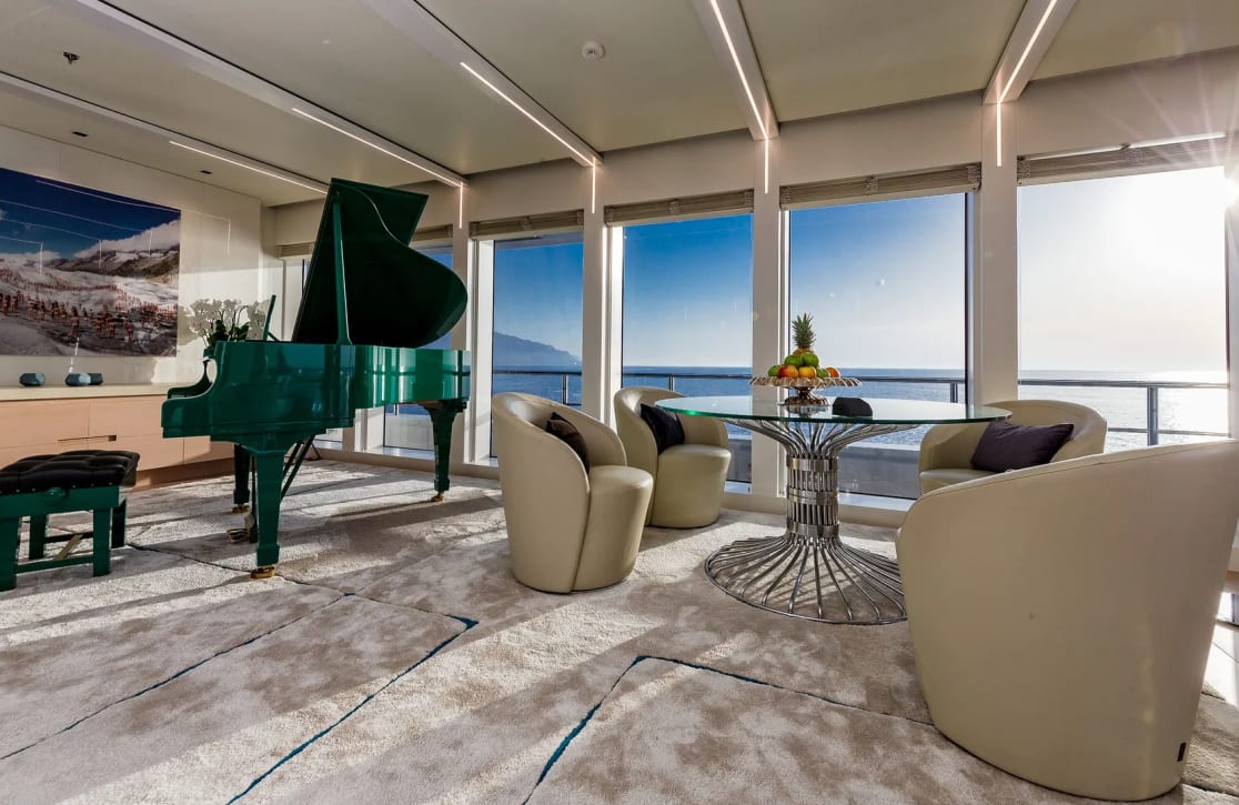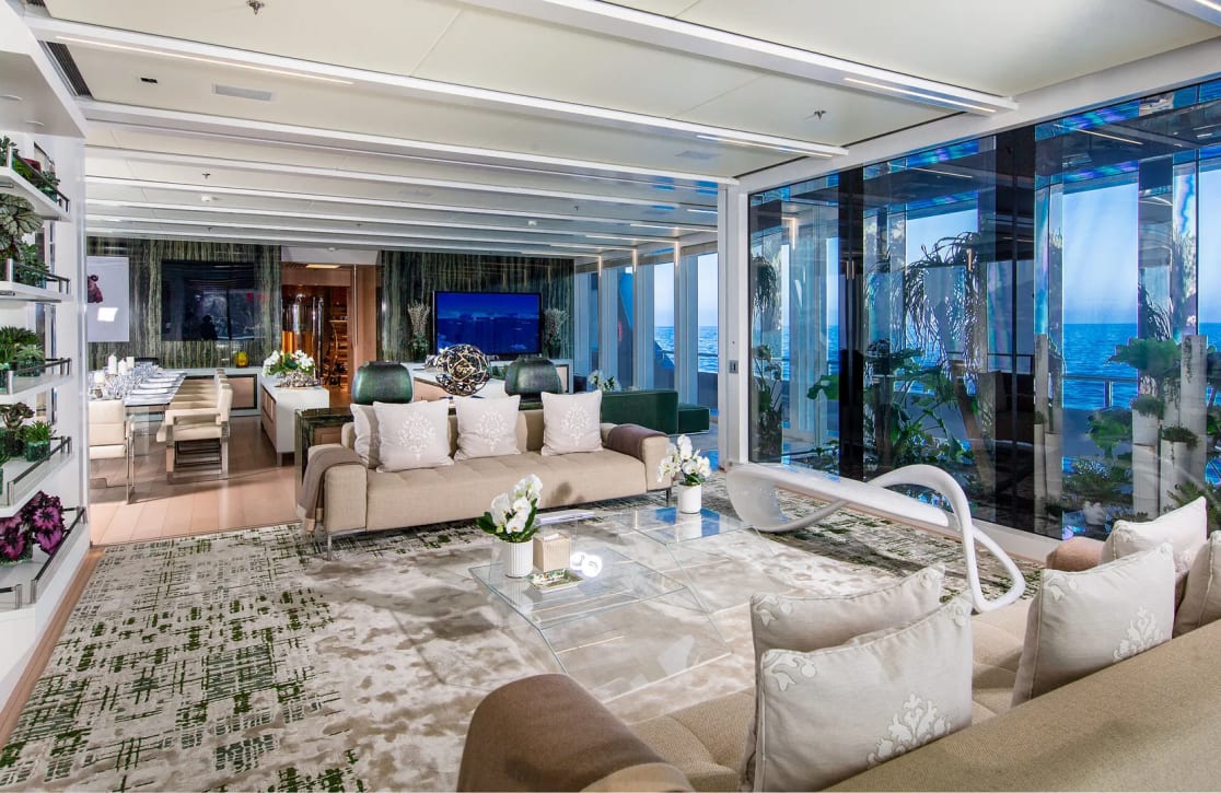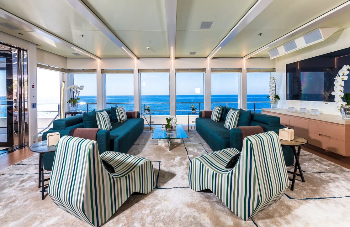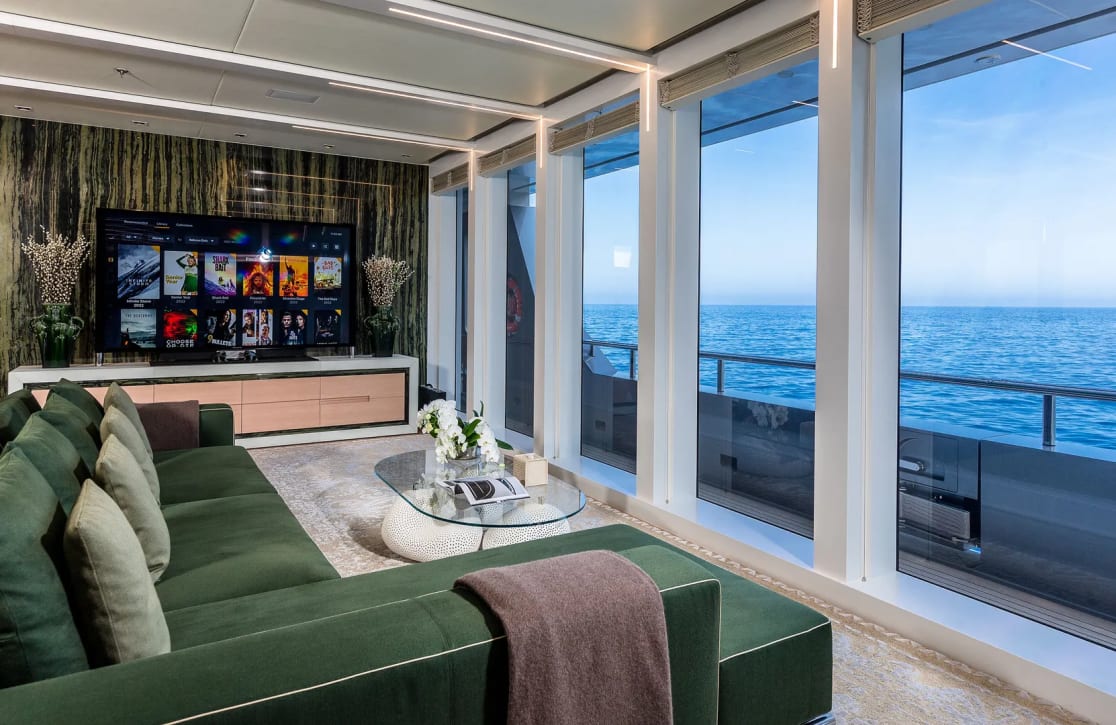 Life aboard Stella Maris is an experience of unparalleled comfort and enjoyment. The sun deck becomes your private oasis, complete with sunpads and a deck jacuzzi, perfect for soaking in the surrounding vistas. The onboard spa and hammam offer moments of pure tranquility, while the gym ensures you can maintain your fitness regime at sea. Social spaces abound with an exterior bar and a beach club that invites alfresco gatherings under the stars. As evening descends, underwater lights create a magical ambiance, and the tender garage stands ready to whisk you away for an adventure ashore.