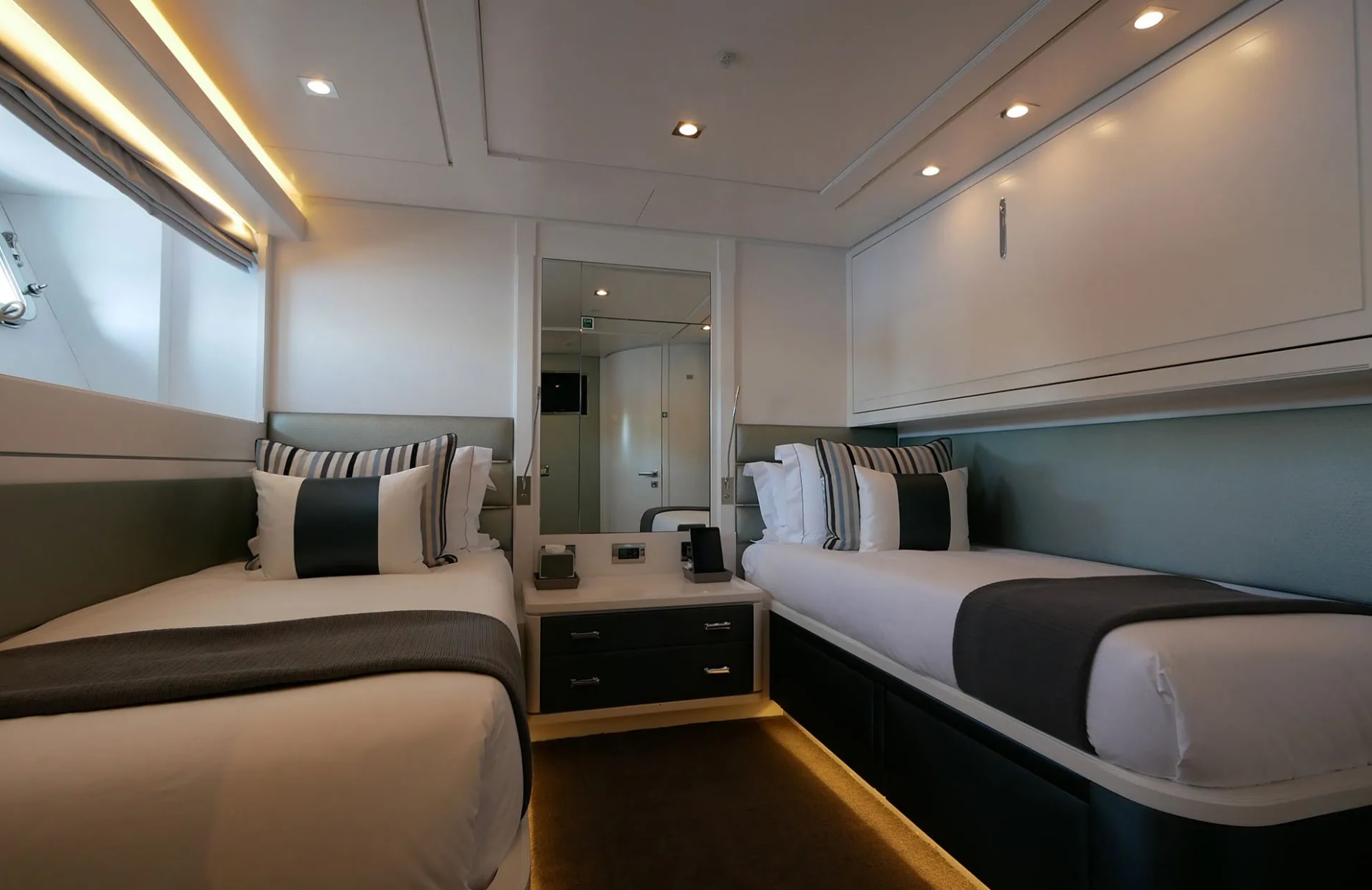 Sud’s accommodations are a testament to refined elegance and comfort, welcoming up to 10 guests within her five beautifully appointed cabins. The master suite is a haven of tranquility, while two VIP and two twin cabins offer serene retreats for all guests. Waking up aboard Sud, you’re greeted by the gentle rocking of the sea and the promise of a new day filled with adventure. With a crew of seven attending to every detail, your experience is crafted with care, ensuring each moment aboard is as effortless as it is memorable.