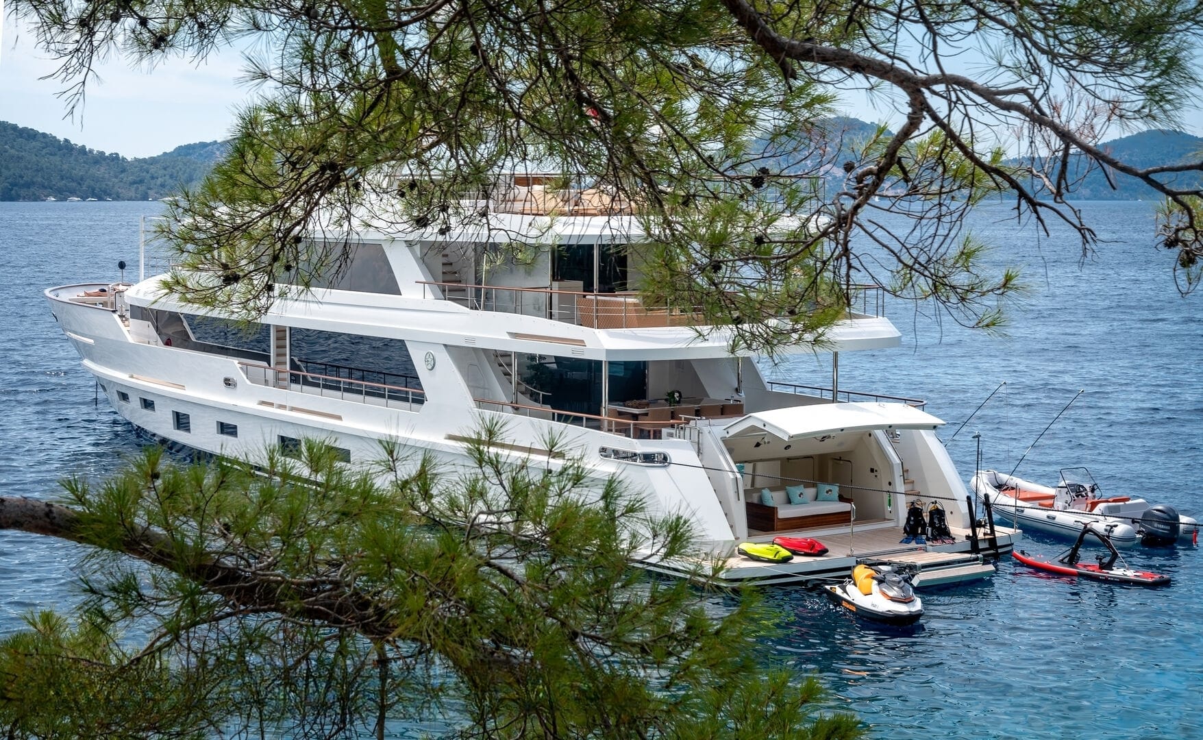 Crafted by the esteemed Yildiz shipyard, the motor yacht Sunrise invites you to a world of refined nautical adventure. At 43 meters in length, this 2020 creation embodies a seamless blend of elegance and modernity, with a design that promises both beauty and performance. As you step aboard, you are embraced by an ambiance of sophistication, where the seamless integration of the Italian studio Hot Lab’s interiors and the Ginton Naval Architects’ vision unfolds. Sunrise is not merely a vessel but a gateway to both the serenity of the open sea and the vibrant allure of coastal havens, providing a canvas for unforgettable memories.
