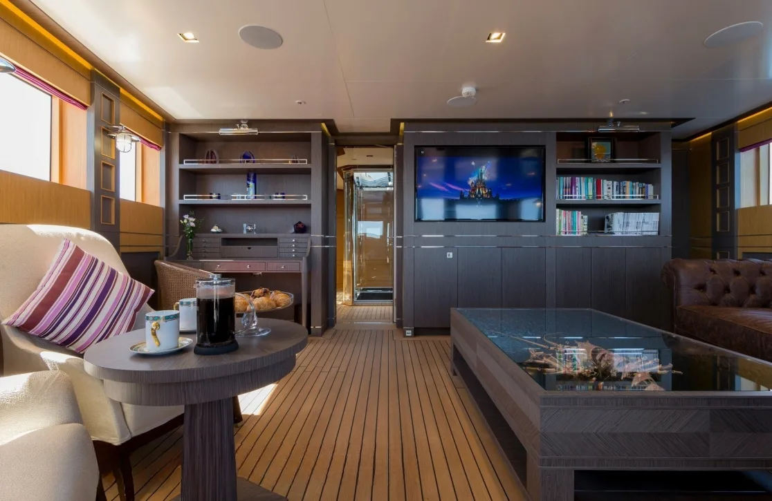 Step into a world where every detail is designed to enhance your journey. The sophisticated spaces of Taiba invite relaxation and social connection. Spend sun-drenched afternoons by the inviting pool or savor the sunset with a cocktail in hand from the outdoor bar. The movie theatre offers a space for intimate entertainment, while the sun deck and foredeck seating provide panoramic views of the horizon. For those seeking rejuvenation, the massage room offers a sanctuary of calm. Every area onboard, from the beach club to the jacuzzi, speaks to a lifestyle of refined leisure.