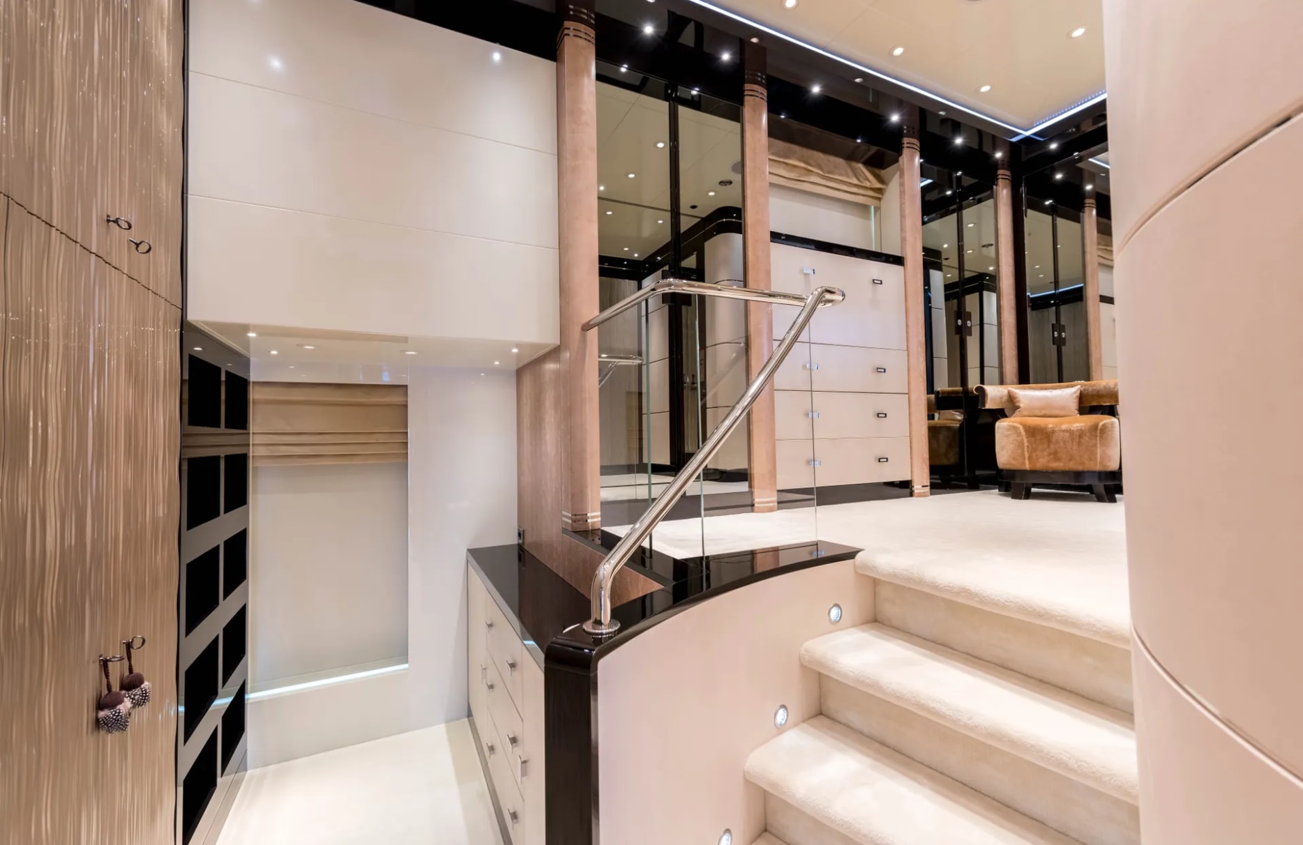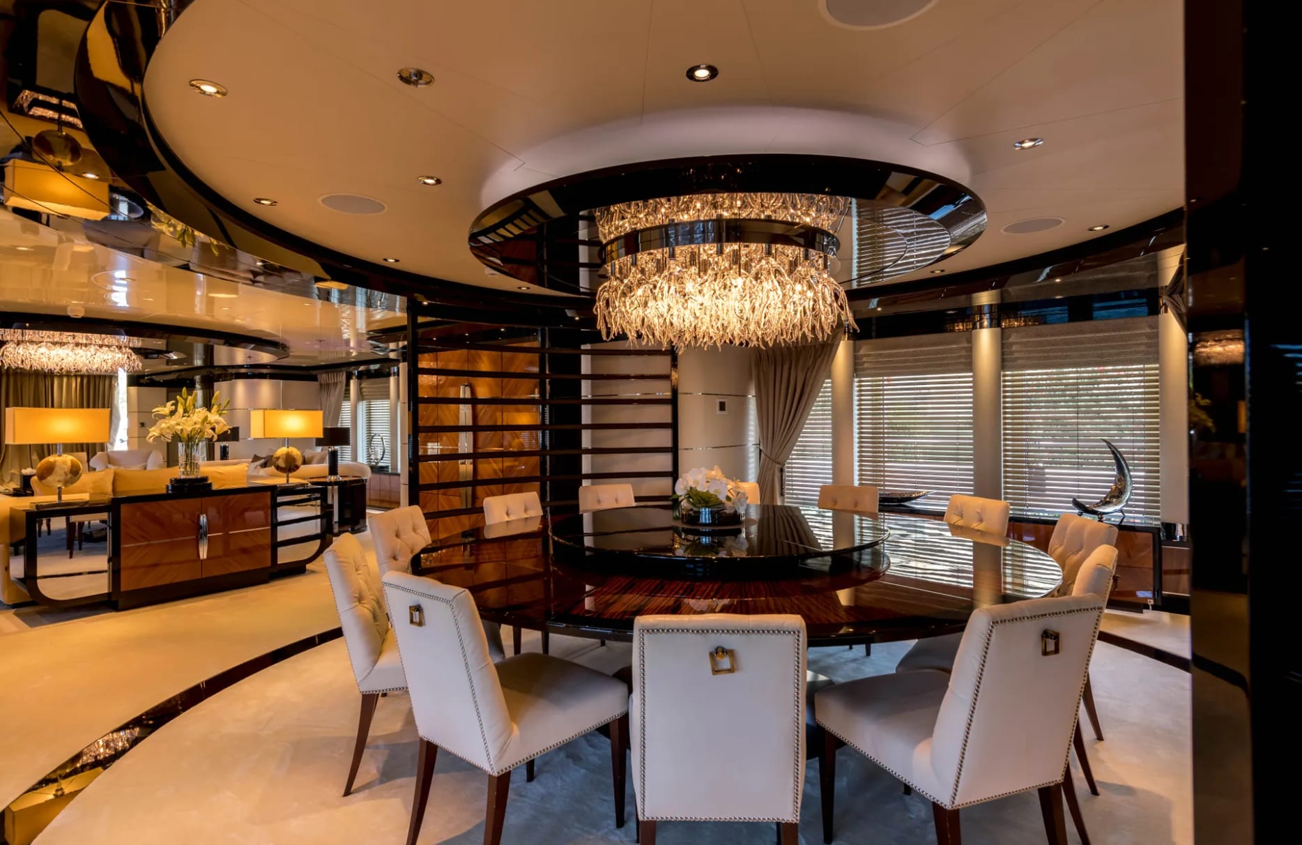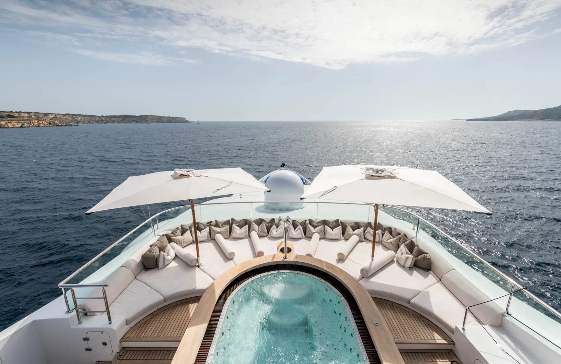 On Talisman C, every detail is curated for your pleasure and relaxation. As daylight spills across the decks, you might find yourself lounging by the inviting pool, or perhaps enjoying a rejuvenating session in the tranquil spa. The beach club elegantly transitions from a place of serene relaxation to a vibrant social hub, perfect for hosting soirées or enjoying quiet moments. Evenings aboard are an affair to remember, as the movie theatre beckons for cinematic nights, or you can savor a sunset cocktail at the exterior bar. Advanced air conditioning ensures a pleasant environment, while stabilizers promise smooth sailing, allowing you to enjoy every facet of the yacht in comfort.