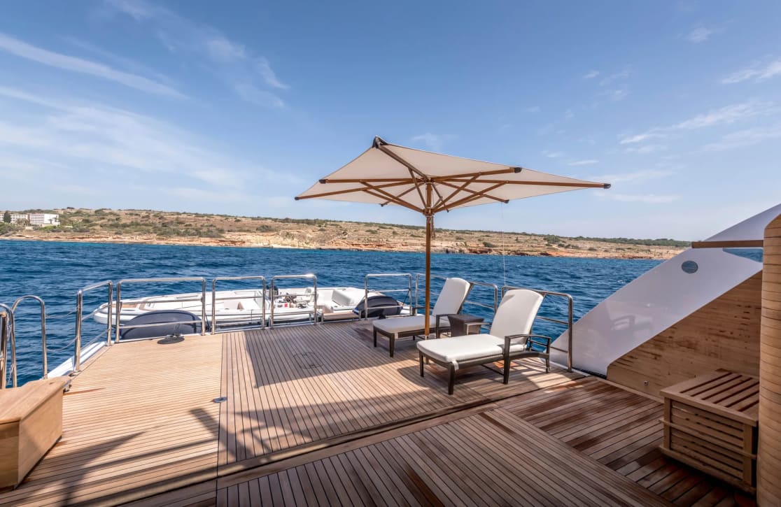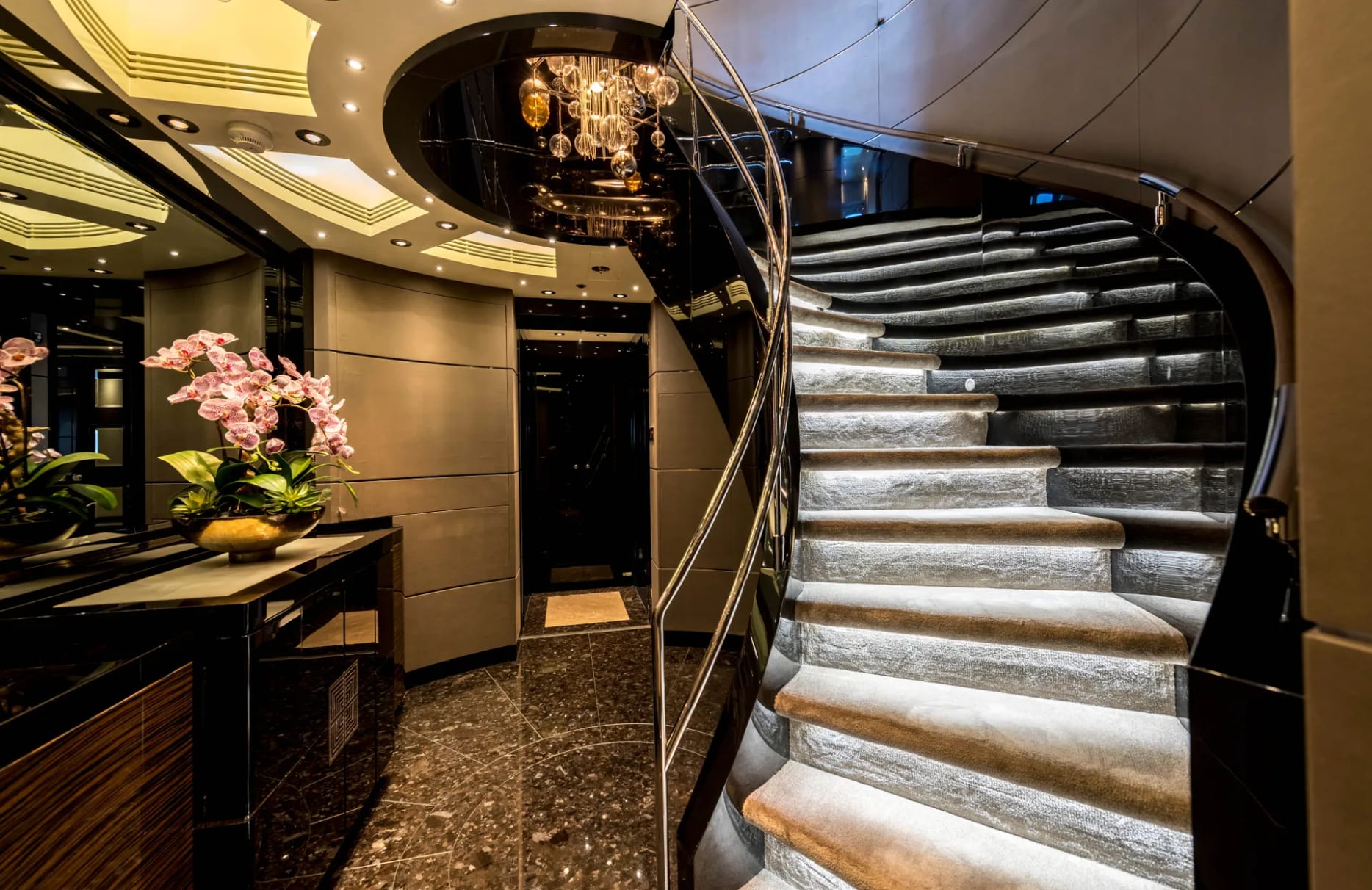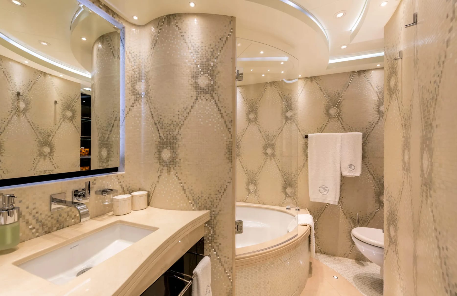 On Talisman C, every detail is curated for your pleasure and relaxation. As daylight spills across the decks, you might find yourself lounging by the inviting pool, or perhaps enjoying a rejuvenating session in the tranquil spa. The beach club elegantly transitions from a place of serene relaxation to a vibrant social hub, perfect for hosting soirées or enjoying quiet moments. Evenings aboard are an affair to remember, as the movie theatre beckons for cinematic nights, or you can savor a sunset cocktail at the exterior bar. Advanced air conditioning ensures a pleasant environment, while stabilizers promise smooth sailing, allowing you to enjoy every facet of the yacht in comfort.