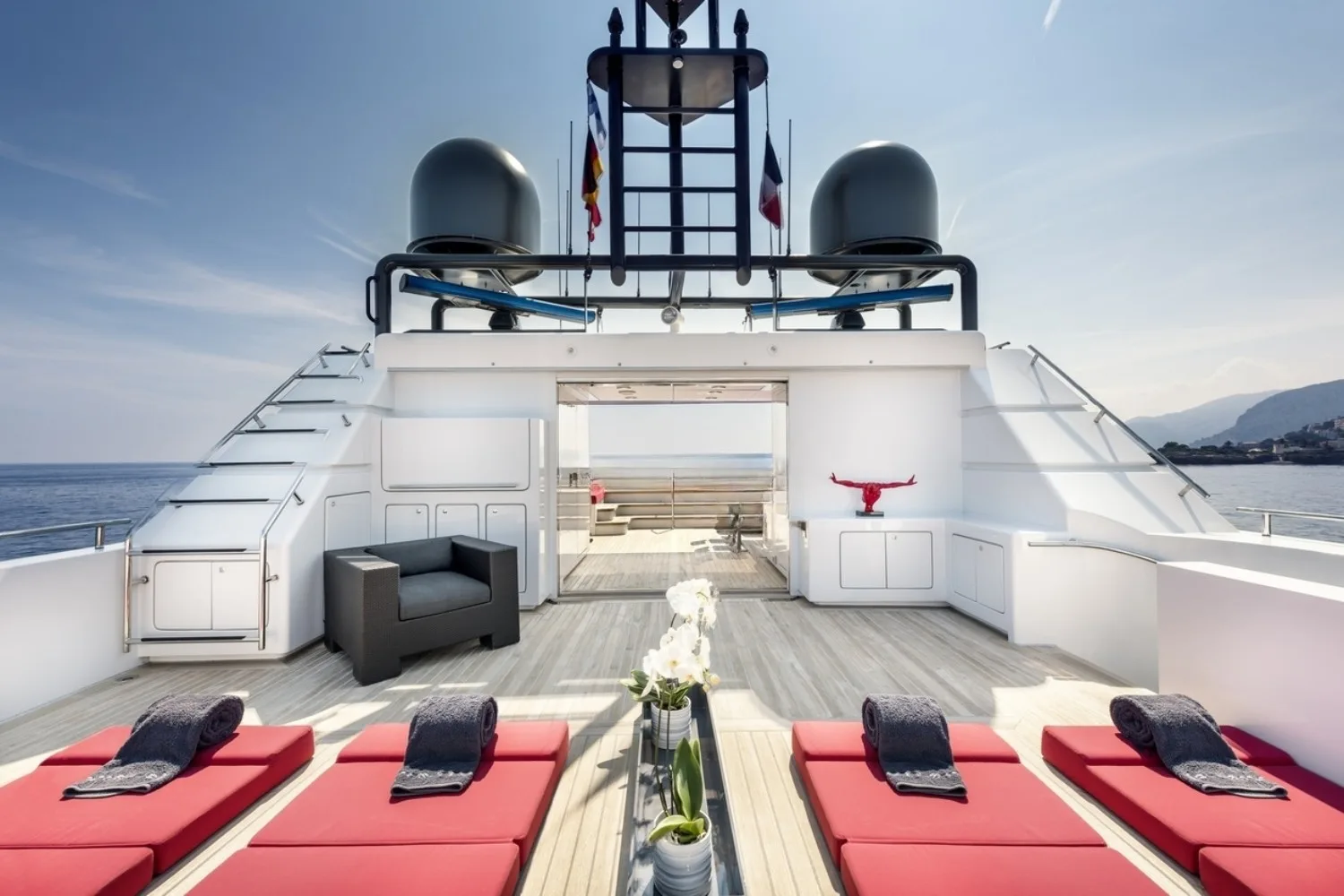 Life aboard the Thanuja is an invitation to indulge in refined relaxation and entertainment. The spacious decks effortlessly merge indoor and outdoor living, creating an atmosphere where serenity and socializing coexist harmoniously. Picture yourself unwinding in the bubbling deck jacuzzi as the sun dips below the horizon, or rejuvenating in the onboard sauna, letting the cares of the world melt away. With air-conditioned interiors providing a cool retreat, and Wi-Fi keeping you connected to the world, every moment aboard is tailored to your desires. Here, your days can be as tranquil or as vibrant as you choose, with every detail meticulously crafted to enhance your experience.