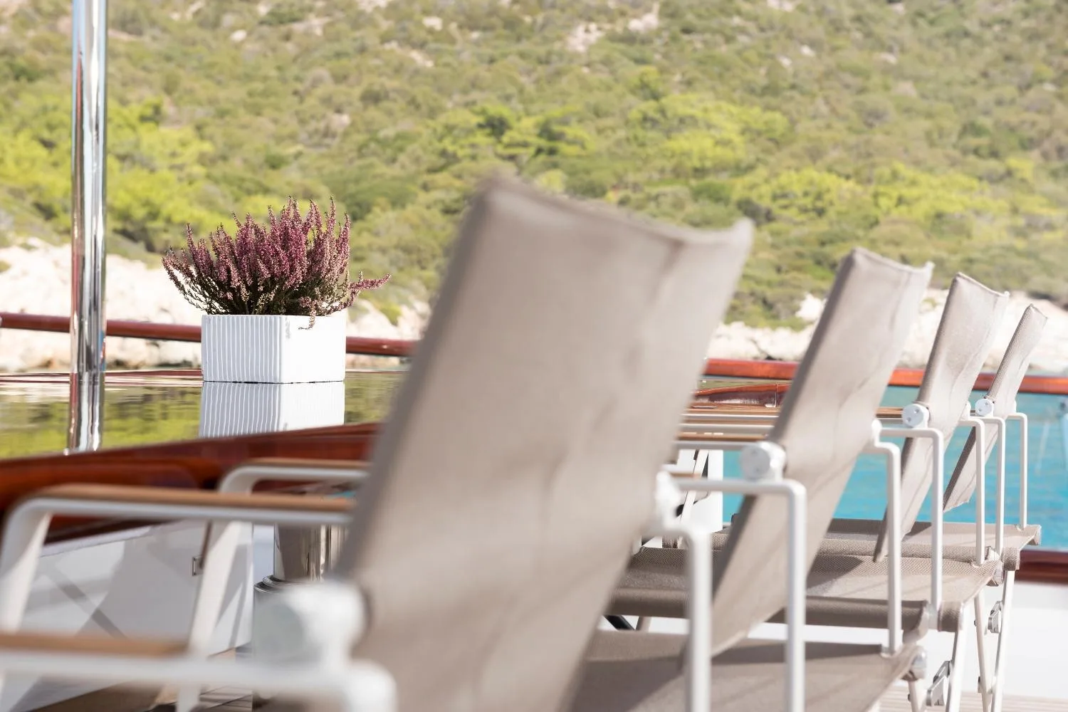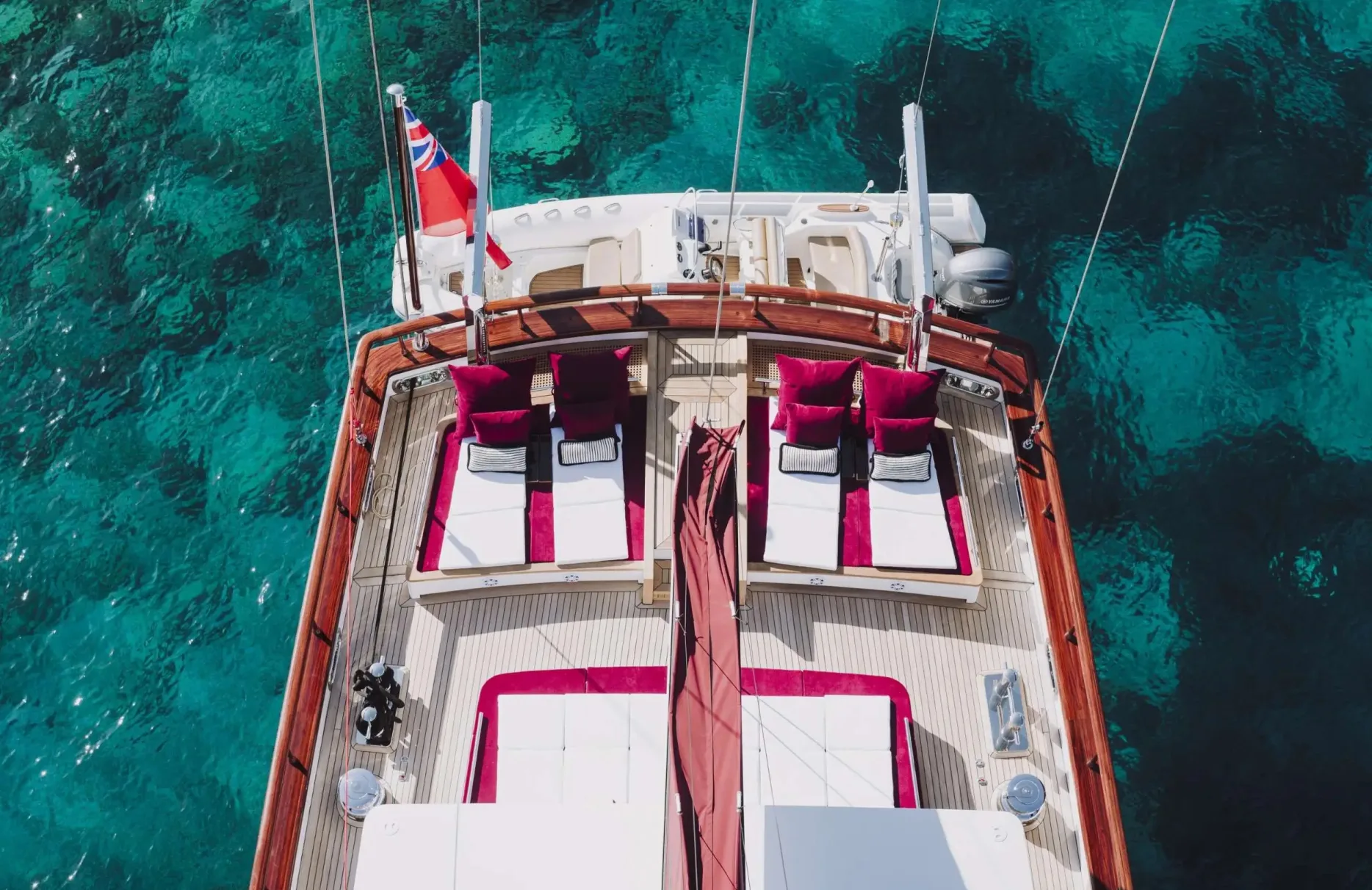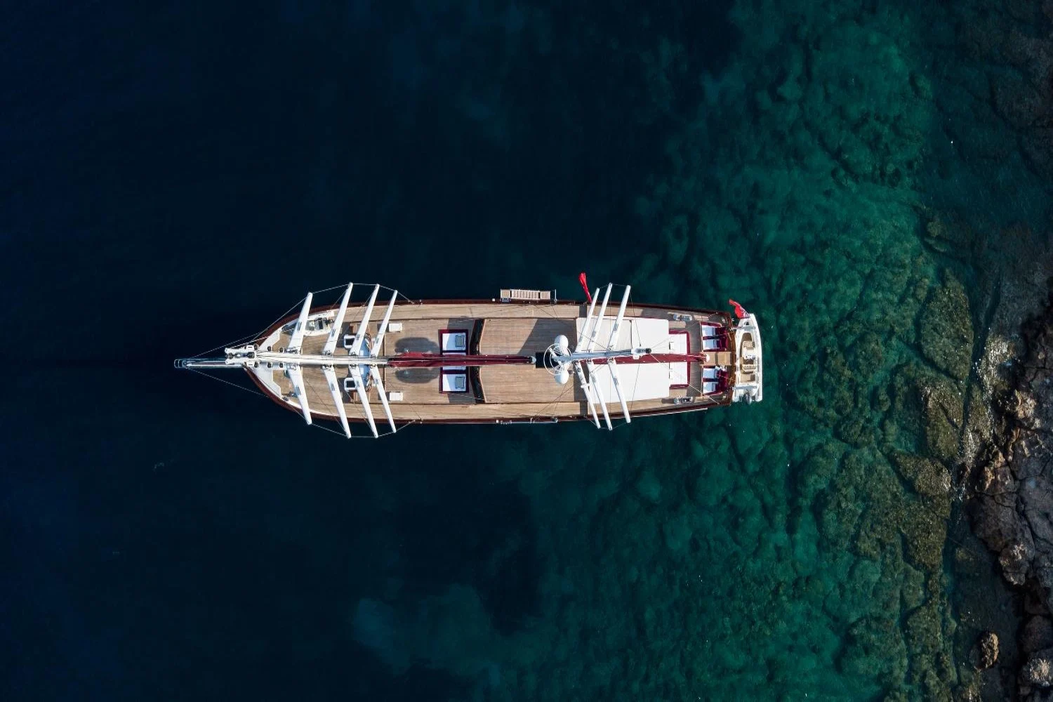Embark on a journey aboard the illustrious 42.9-meter gulet, That’s Amore, a vessel that seamlessly marries elegance with adventure. Crafted by the esteemed Custom shipyard, this yacht is a haven for up to 12 fortunate guests, who will find themselves enveloped in its opulent embrace. Picture a week spent gliding through the serene waters of the East Mediterranean, where each day unfolds like a masterpiece. With a wood hull and superstructure driven by twin Volvo Penta engines, That’s Amore cruises at a peaceful 10 knots, reaching exhilarating speeds of up to 14 knots, ensuring every voyage is both tranquil and thrilling.