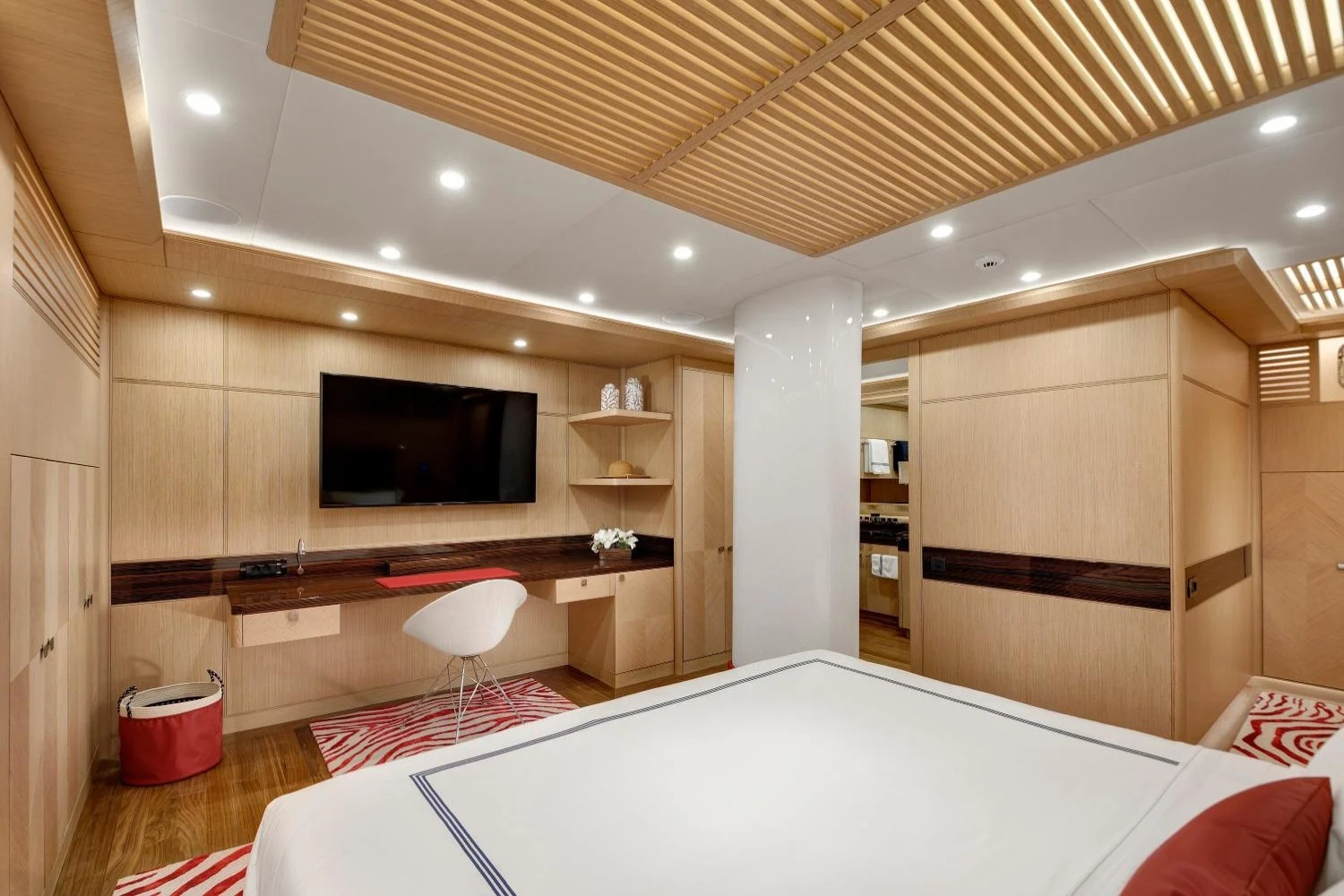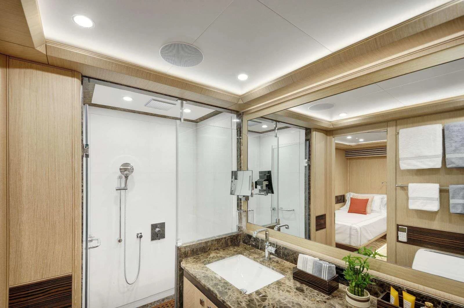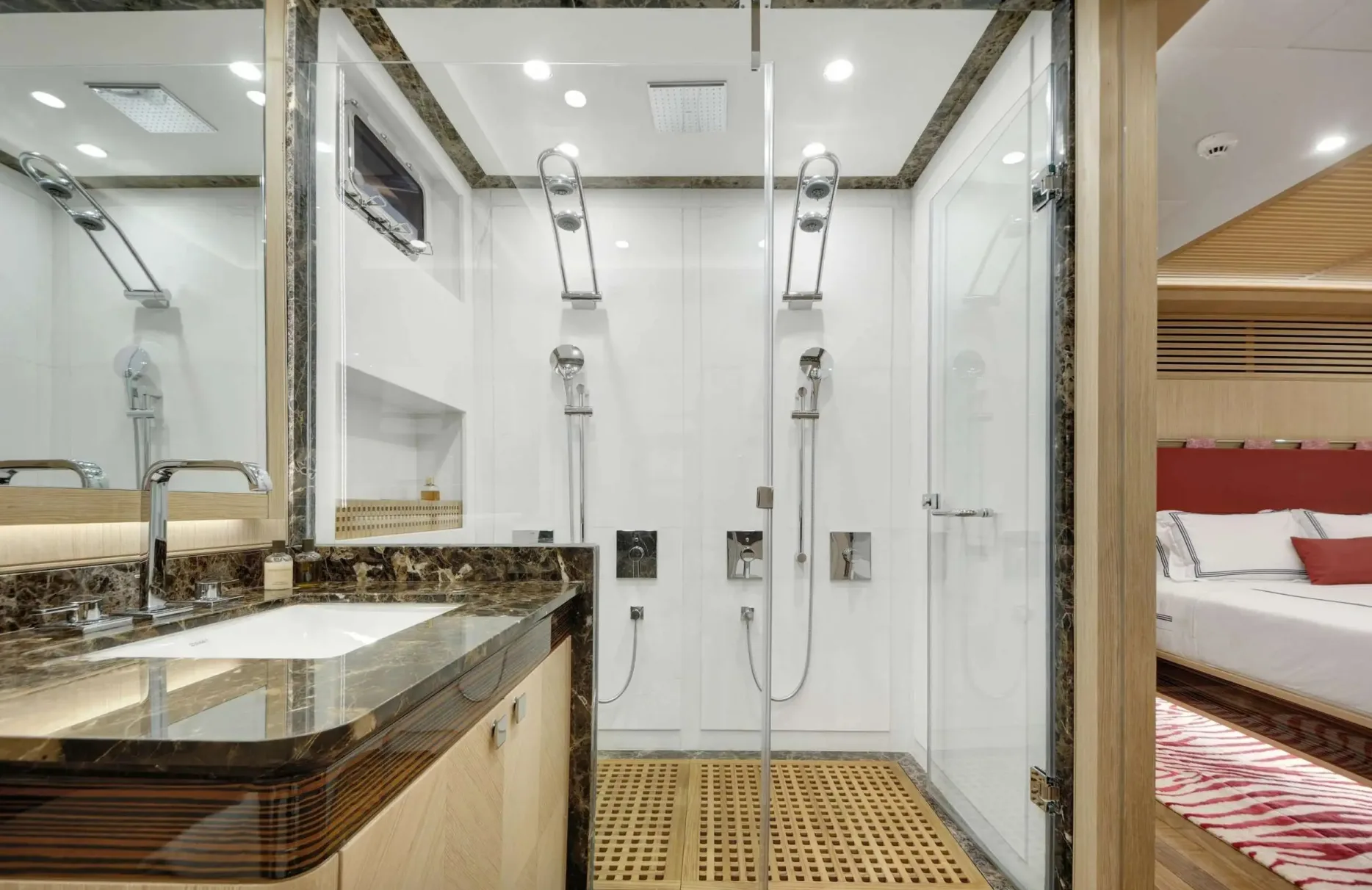 Step into a world where every detail is designed for your pleasure. Onboard That’s Amore, the atmosphere is consistently cool thanks to the state-of-the-art air conditioning, ensuring comfort throughout your voyage. As the sun sets, the yacht’s underwater lights create a mesmerizing glow that invites you to linger on deck, perhaps with a glass in hand, soaking in the tranquil ambiance. The yacht’s expansive spaces offer both intimate corners for quiet reflection and larger areas perfect for lively gatherings, crafting an environment where wellness and entertainment coexist harmoniously.
