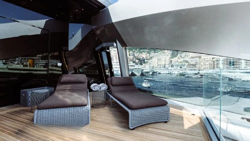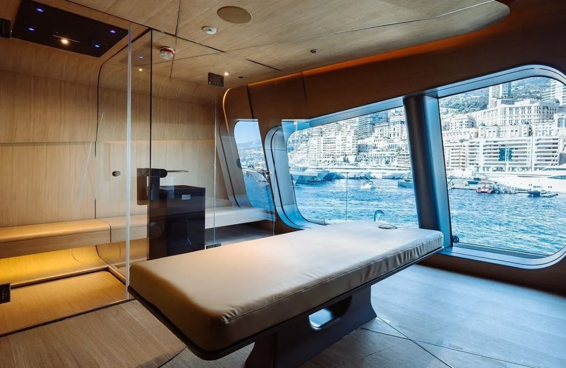 The journey aboard This Is It is one of serene indulgence, where every corner invites a new experience. As the sun rises, enjoy a refreshing morning in the state-of-the-art fitness center, followed by a dip in the deck jacuzzi. The spa and massage room offer a sanctuary for rejuvenation, while the sauna provides a space to unwind and detox. Evenings transform into enchanting gatherings as you relax on sunpads or connect with loved ones over a shared meal, enhanced by the yacht’s exceptional Wi-Fi connectivity and air conditioning that ensures your comfort no matter the season.