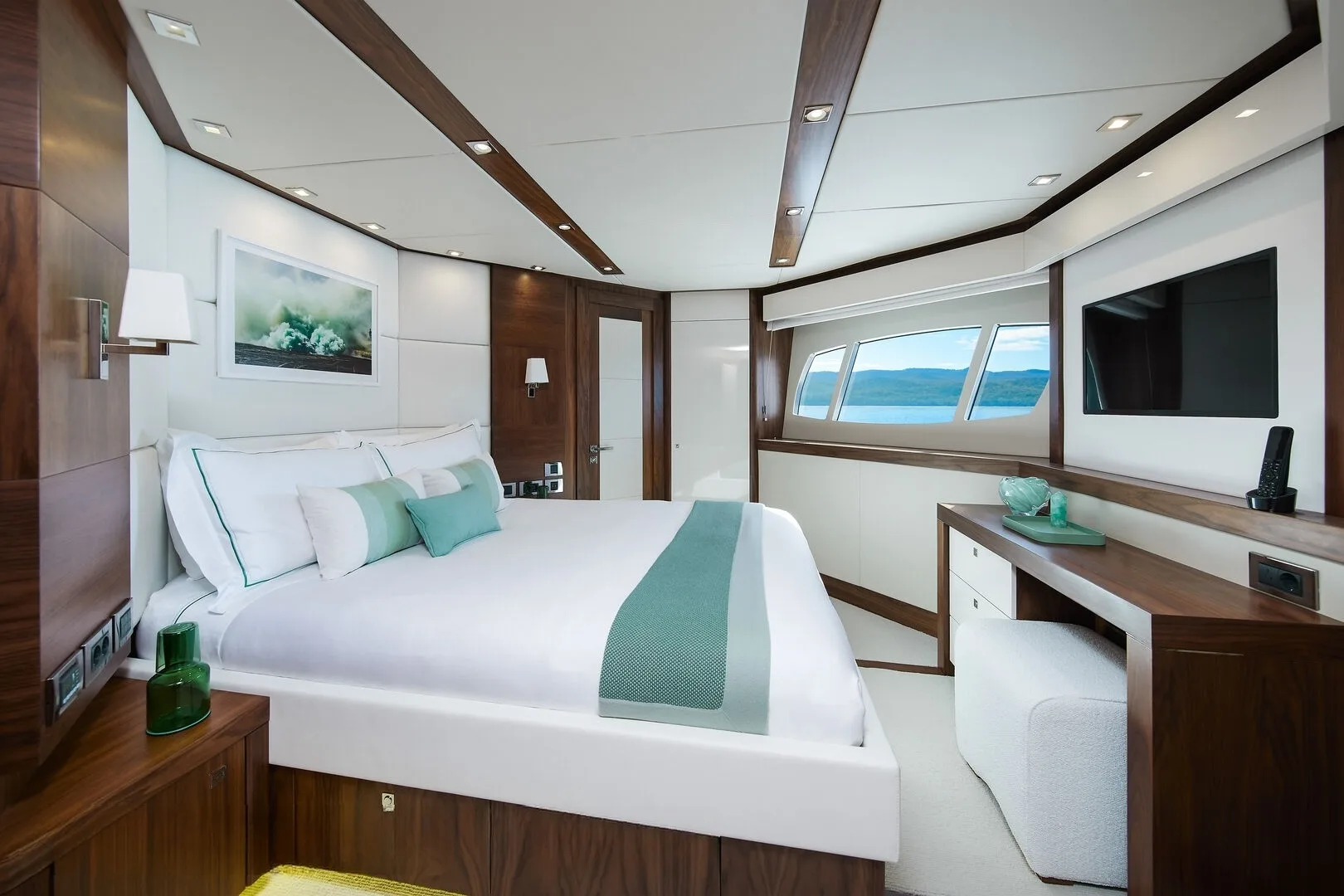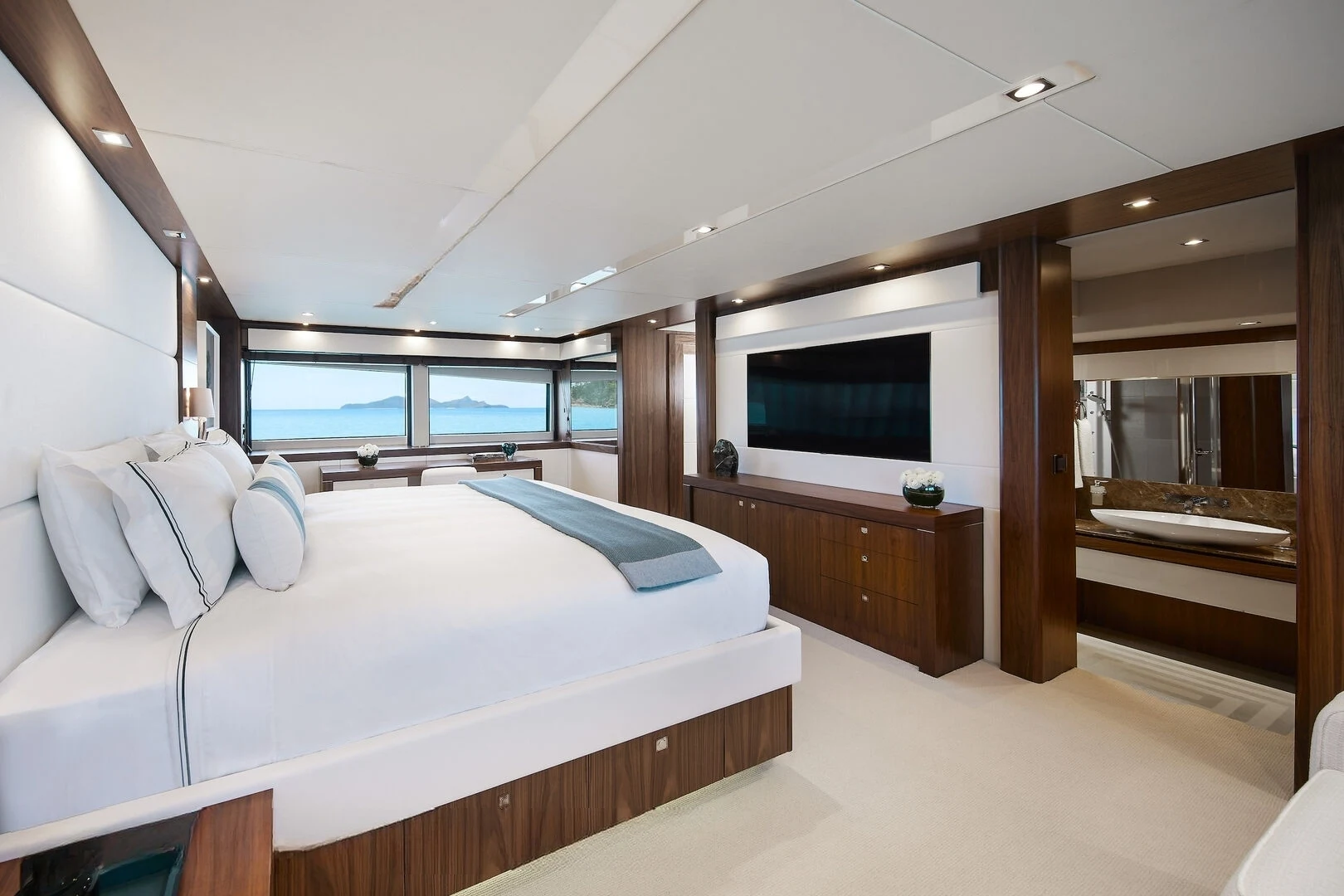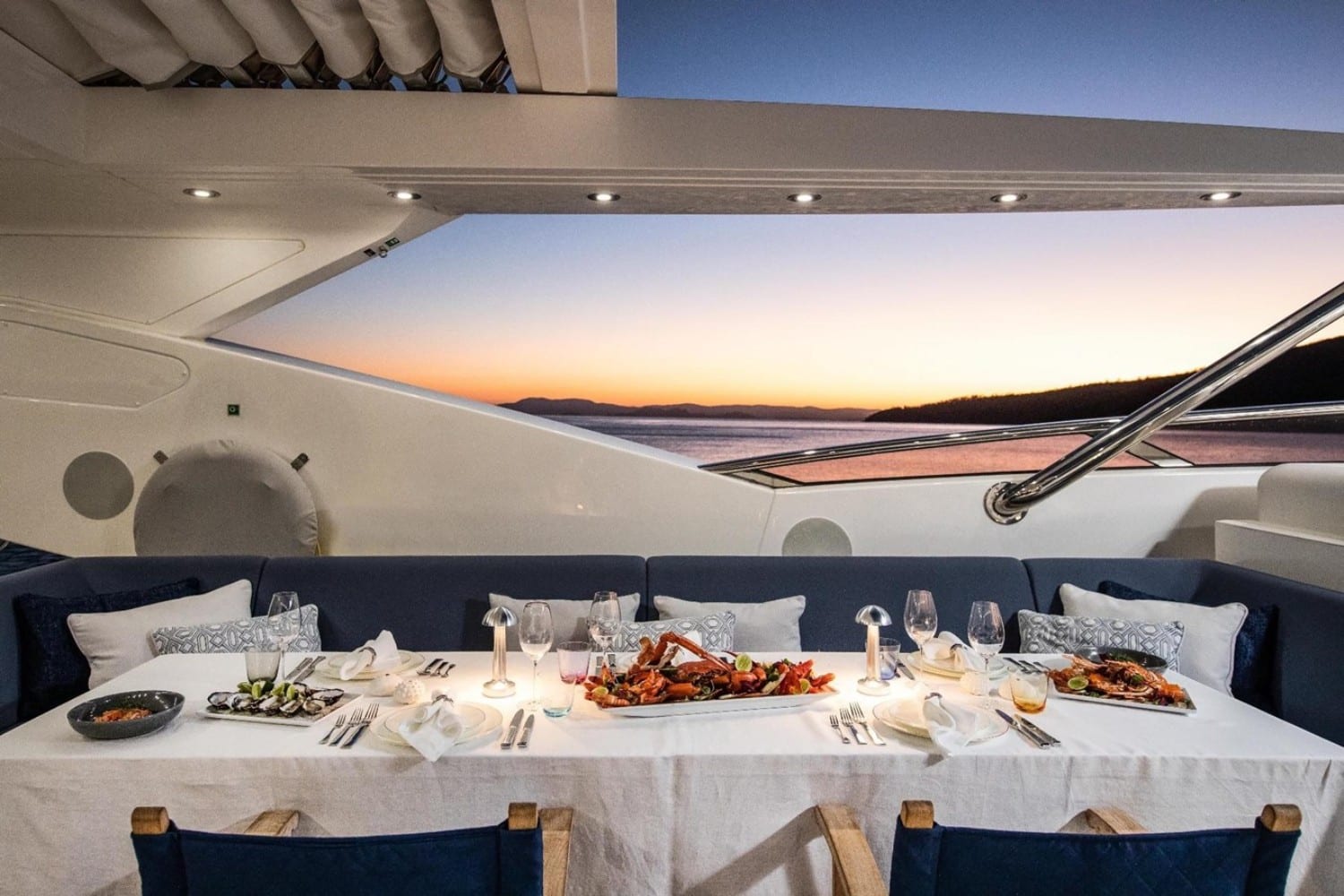 Onboard the Three Rivers, every moment is an invitation to indulge in the finest experiences. As you soak in the deck jacuzzi, the world seems to melt away, leaving only the gentle caress of sea breezes and panoramic ocean views. As the sun sets, underwater lights illuminate the surrounding waters, creating a magical ambiance for evening gatherings. Seamless connectivity is at your fingertips with onboard Wi-Fi, allowing you to share your journey or retreat into solitude as you desire. With comprehensive air conditioning throughout, every space promises comfort and tranquility, whether you’re socializing on the sun deck or enjoying a quiet moment in a private nook.