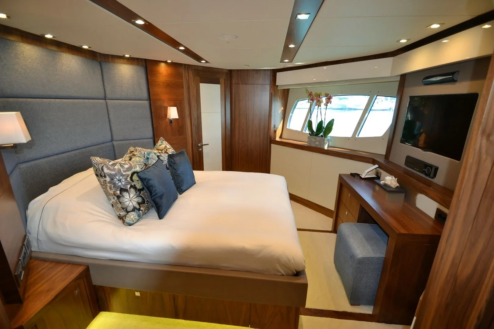 Step into a world of refined elegance and adventure aboard the Three Rivers, a majestic 34-meter motor yacht crafted by the distinguished Sunseeker. This vessel is designed to offer an unparalleled experience on the open seas, harmonizing sophistication with comfort for up to 12 guests. As you glide through azure waters at a comfortable 19 knots, or push to a thrilling 26 knots, the Three Rivers becomes your personal gateway to both serene relaxation and exhilarating exploration. Whether you’re basking in the sun on deck or venturing ashore to discover hidden coves, your journey promises to be as enriching as it is luxurious. With a range of 1,250 nautical miles, imagine a week of endless horizons and unforgettable experiences, all underpinned by the meticulous attention to detail that defines this extraordinary yacht.