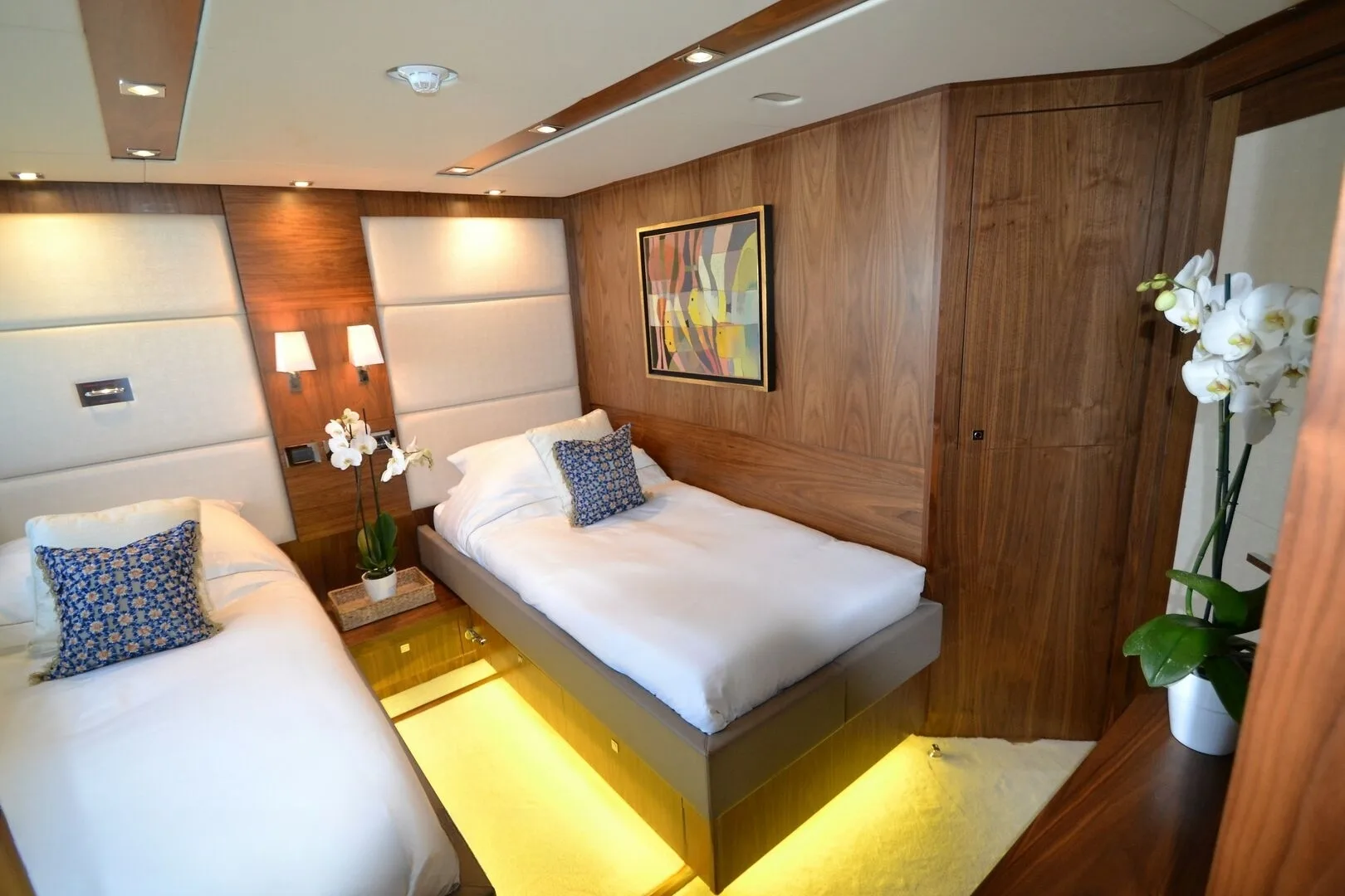 The accommodations aboard Three Rivers are an artful blend of style and comfort, designed to make each guest feel at home on the high seas. With five beautifully appointed cabins, including a master suite and two double cabins, the yacht offers a sanctuary for up to 12 guests. Each cabin is a haven of tranquility, where waking up to the gentle lapping of waves against the hull is a daily pleasure. Thoughtful design ensures every room is a retreat, with plush furnishings and an inviting ambiance that makes relaxation effortless.