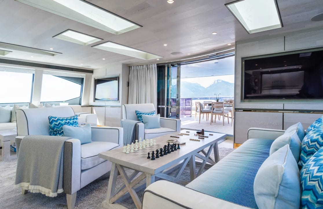 Accommodating up to 12 guests, Thumper’s five cabins are a testament to thoughtful luxury. The master suite, two double cabins, and two twin cabins provide a versatile layout for families or groups of friends. Each cabin is a cocoon of comfort, where waking up to the gentle sway of the sea promises a serene start to the day. Plush bedding and meticulous attention to detail ensure restful nights, while the gentle hum of the sea offers a lullaby like no other.