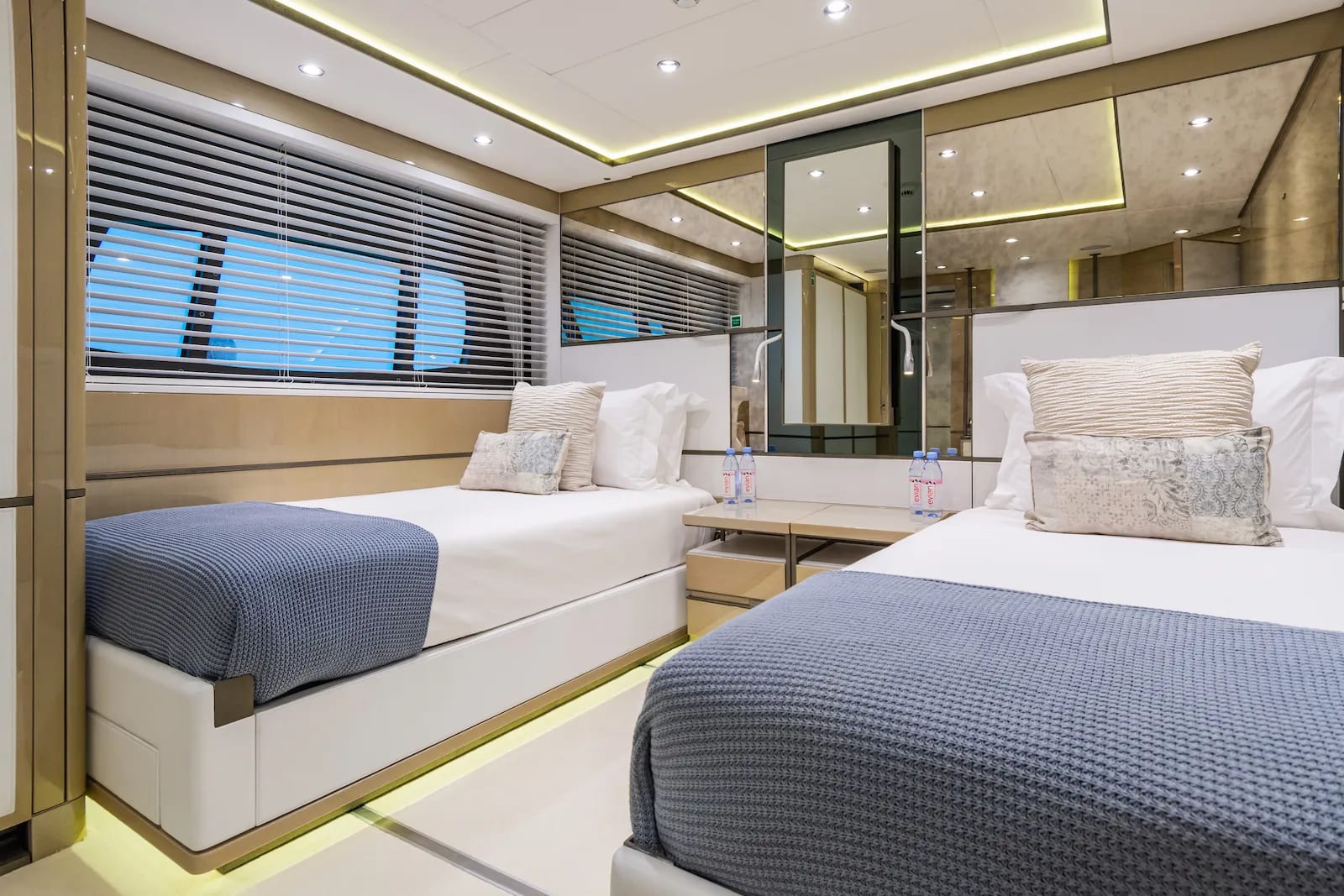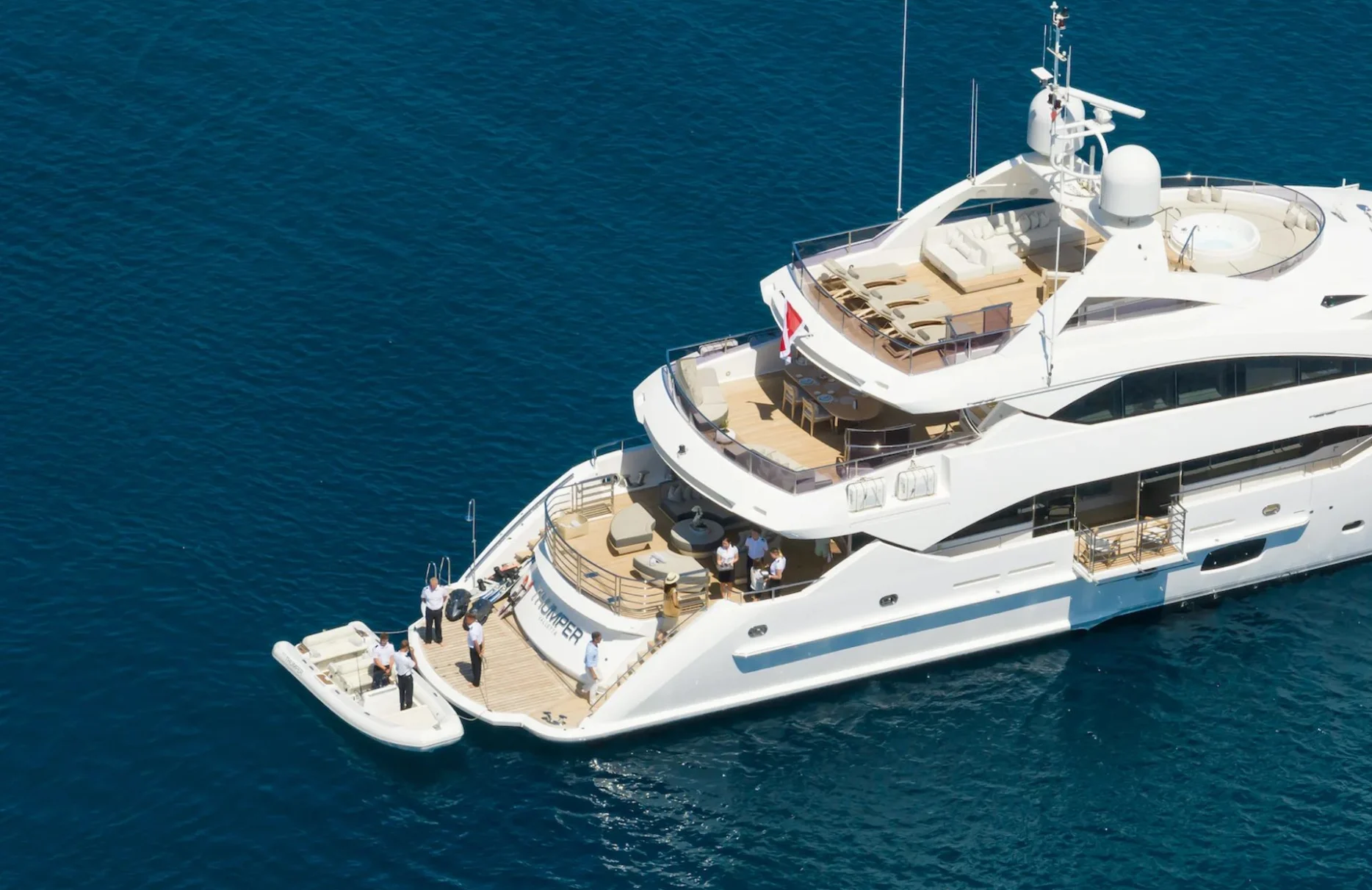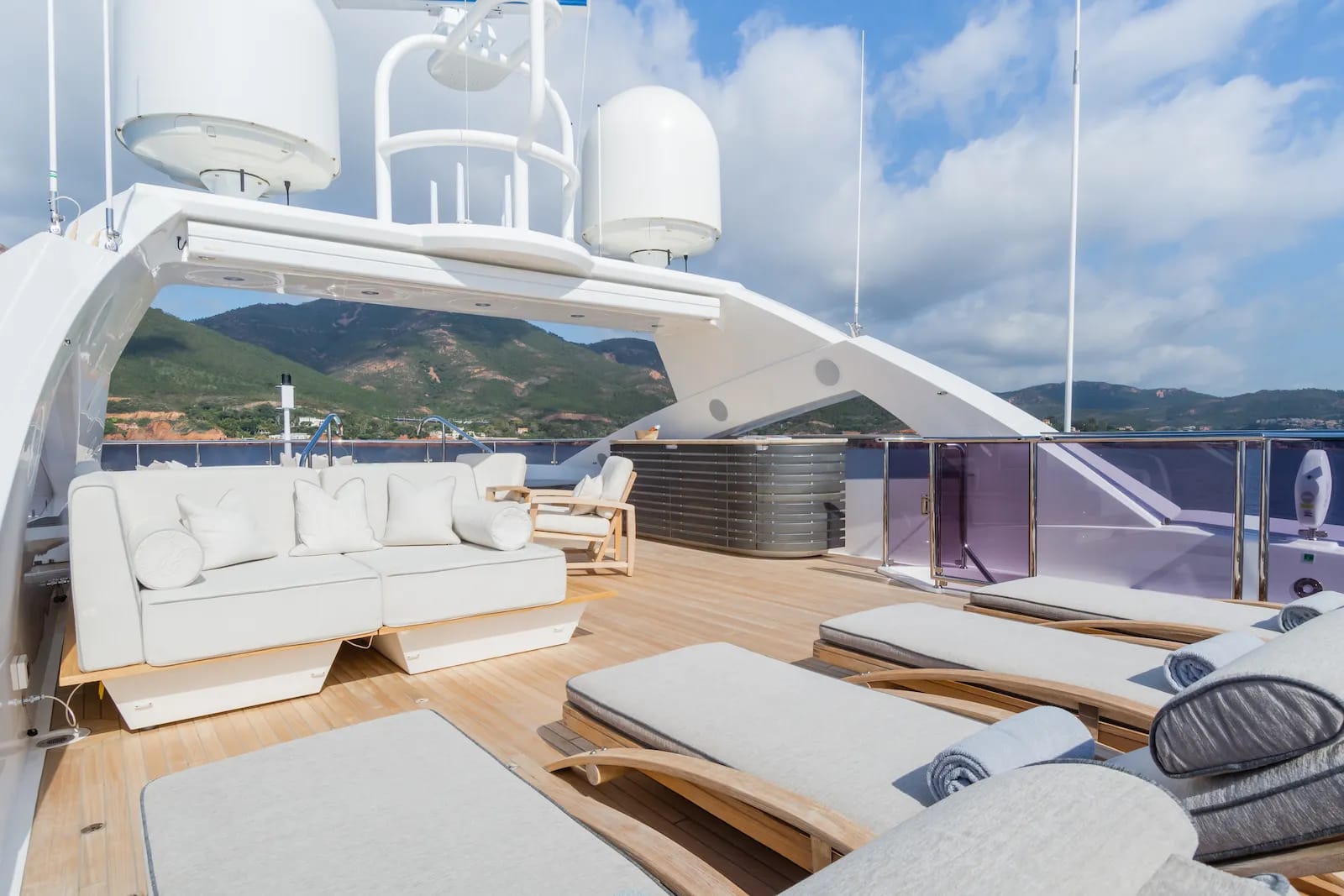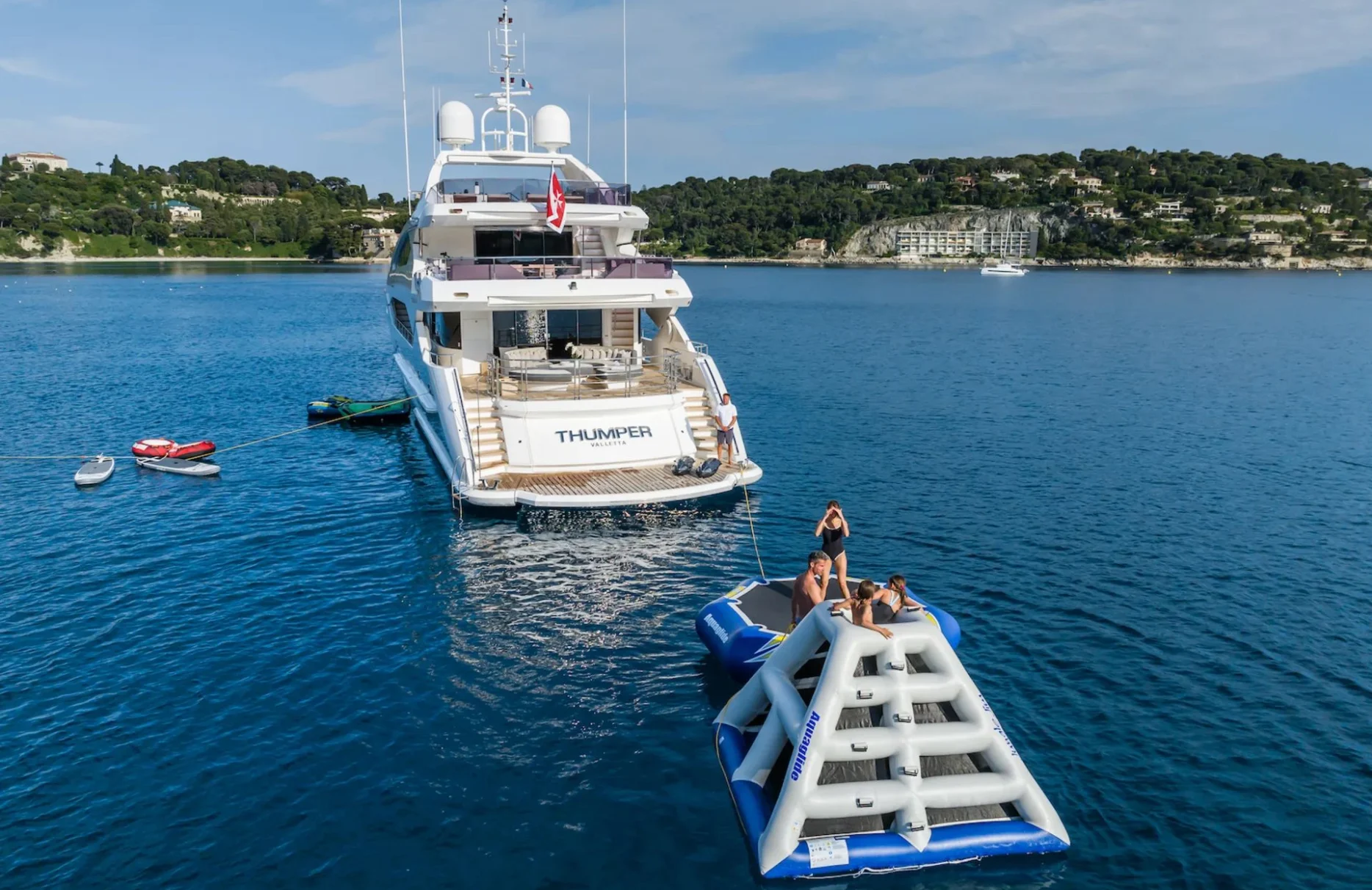 The Thumper offers an invitation to explore the world in unparalleled comfort and style. This 40-meter masterpiece from the iconic Sunseeker shipyard embodies a seamless blend of sophisticated design and high-speed performance, reaching up to 24 knots. With the Mediterranean as your backdrop, each day aboard promises new adventures and tranquility, be it unwinding under the sun on the deck or embarking on excursions to hidden coastal gems. Thumper’s refined elegance and thoughtful detailing ensure that every moment spent on board becomes a cherished memory. Her exceptional range of 1,500 nautical miles invites you to explore farther and deeper, with the assurance of a stable and smooth journey, thanks to advanced stabilization technology.