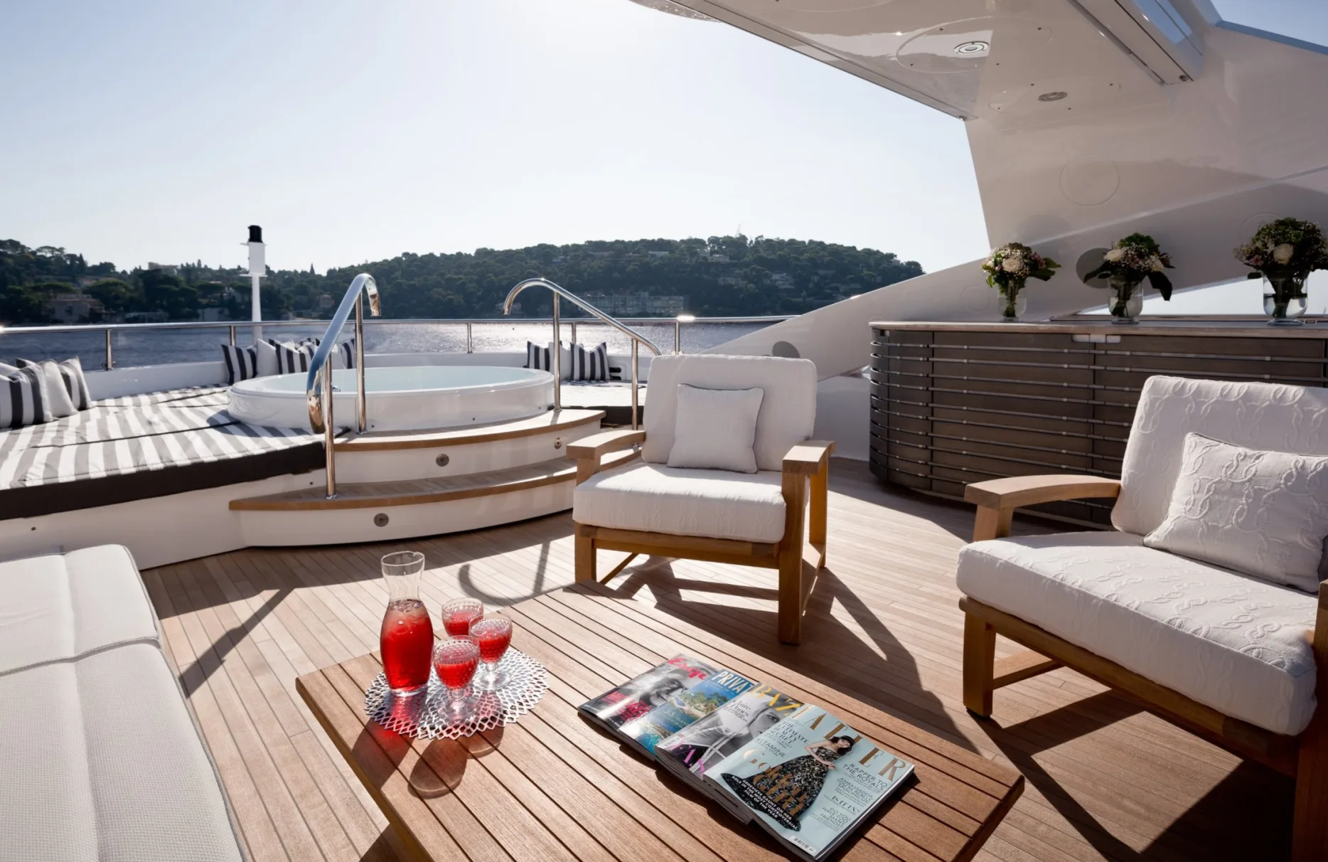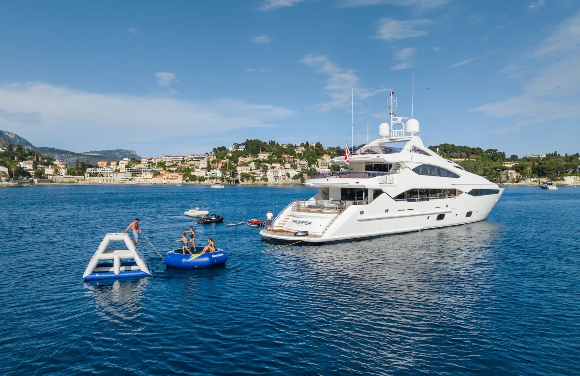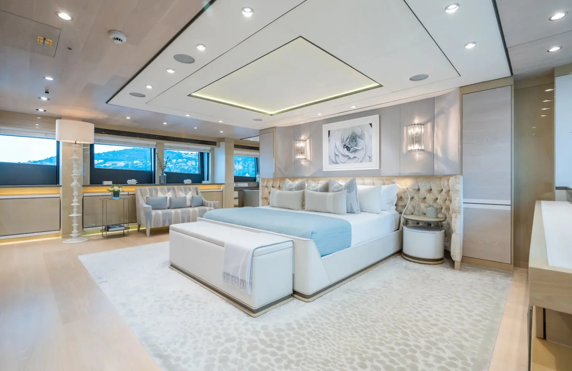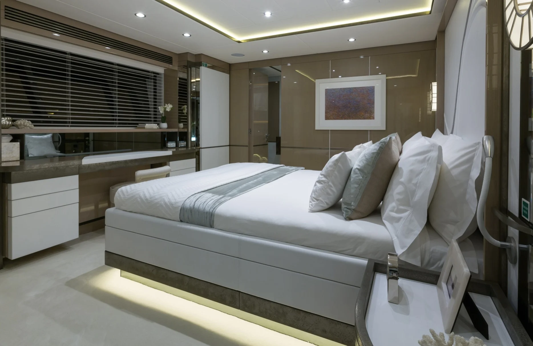 The Thumper offers an invitation to explore the world in unparalleled comfort and style. This 40-meter masterpiece from the iconic Sunseeker shipyard embodies a seamless blend of sophisticated design and high-speed performance, reaching up to 24 knots. With the Mediterranean as your backdrop, each day aboard promises new adventures and tranquility, be it unwinding under the sun on the deck or embarking on excursions to hidden coastal gems. Thumper’s refined elegance and thoughtful detailing ensure that every moment spent on board becomes a cherished memory. Her exceptional range of 1,500 nautical miles invites you to explore farther and deeper, with the assurance of a stable and smooth journey, thanks to advanced stabilization technology.