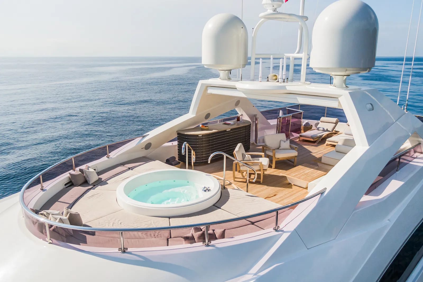 Onboard Thumper, the experience is akin to living in a sophisticated sanctuary at sea. The allure of a deck Jacuzzi beckons for leisurely soaks under the stars, while the seamless Wi-Fi connectivity keeps you in touch with the world, should you wish. Relax in air-conditioned comfort throughout the yacht, or enjoy a cinematic evening with satellite TV in the plush salon. Each space is designed for ultimate relaxation and entertainment, creating an atmosphere where social gatherings or quiet retreats feel equally inviting.