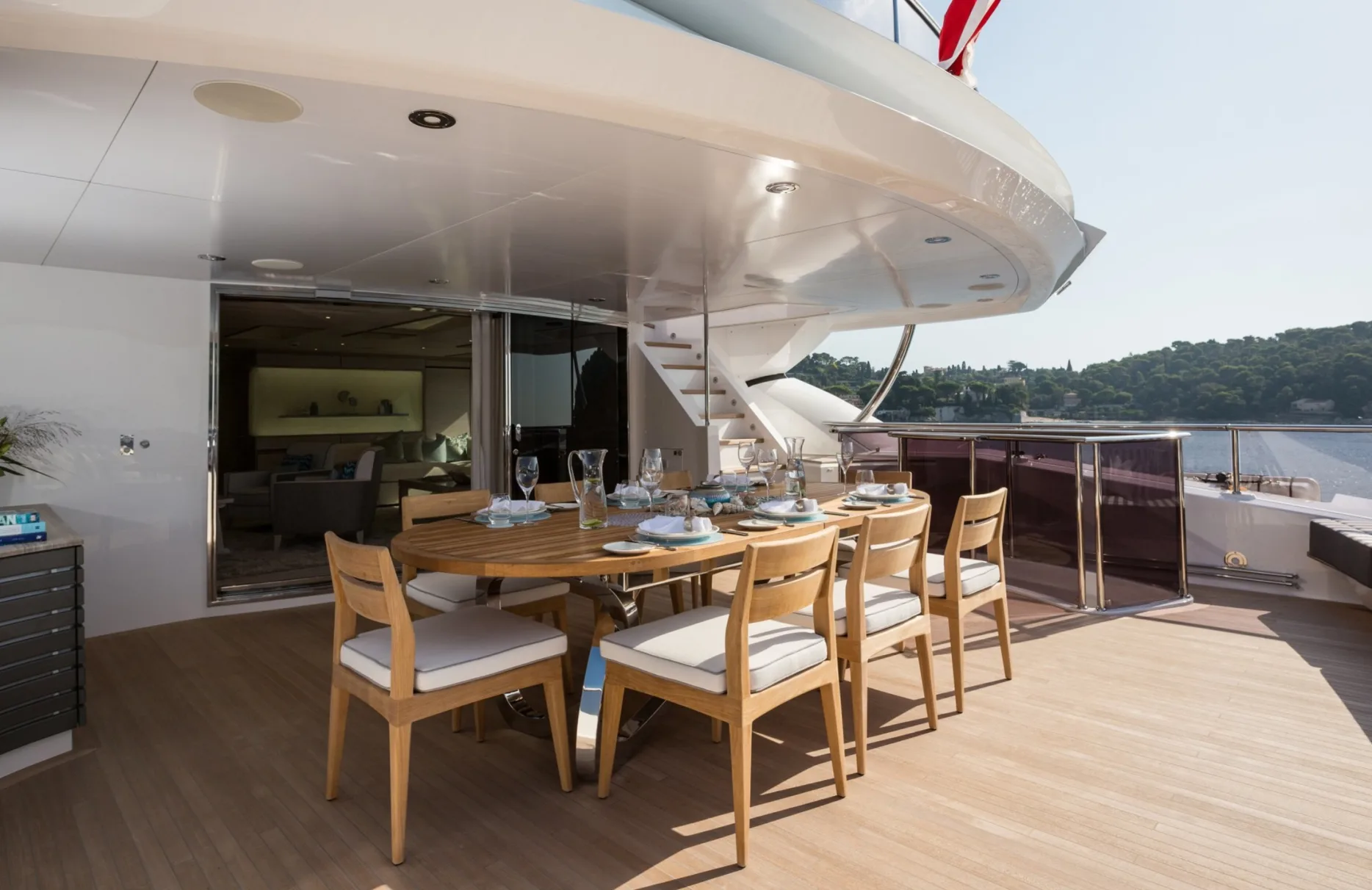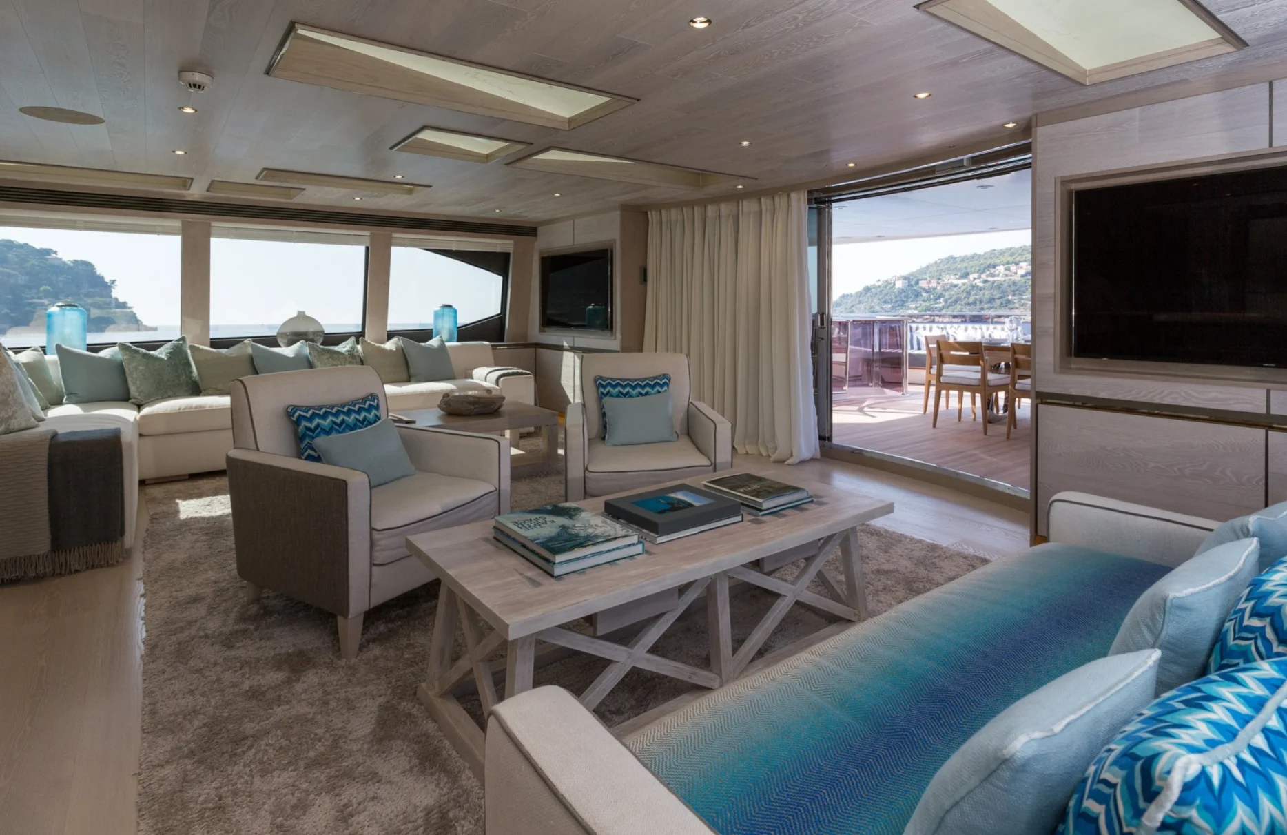 Accommodating up to 12 guests, Thumper’s five cabins are a testament to thoughtful luxury. The master suite, two double cabins, and two twin cabins provide a versatile layout for families or groups of friends. Each cabin is a cocoon of comfort, where waking up to the gentle sway of the sea promises a serene start to the day. Plush bedding and meticulous attention to detail ensure restful nights, while the gentle hum of the sea offers a lullaby like no other.