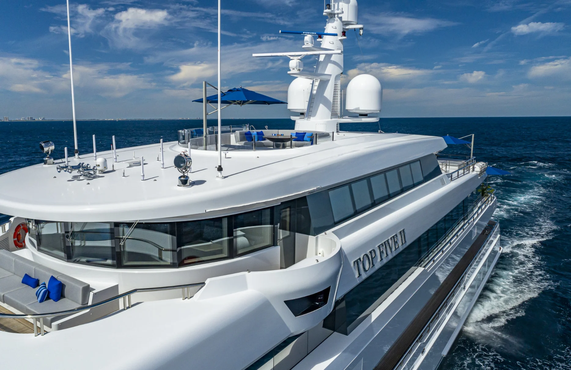 Embark on an enchanting journey aboard the magnificent Top Five II, a 200-foot masterpiece crafted by Hakvoort, where every moment is designed to captivate. With its sleek, modern design and interior styling by the renowned Sinot Yacht Design, this vessel invites you to experience life at sea like never before. As you glide through azure waters, the steel hull and aluminum superstructure provide exceptional stability,...