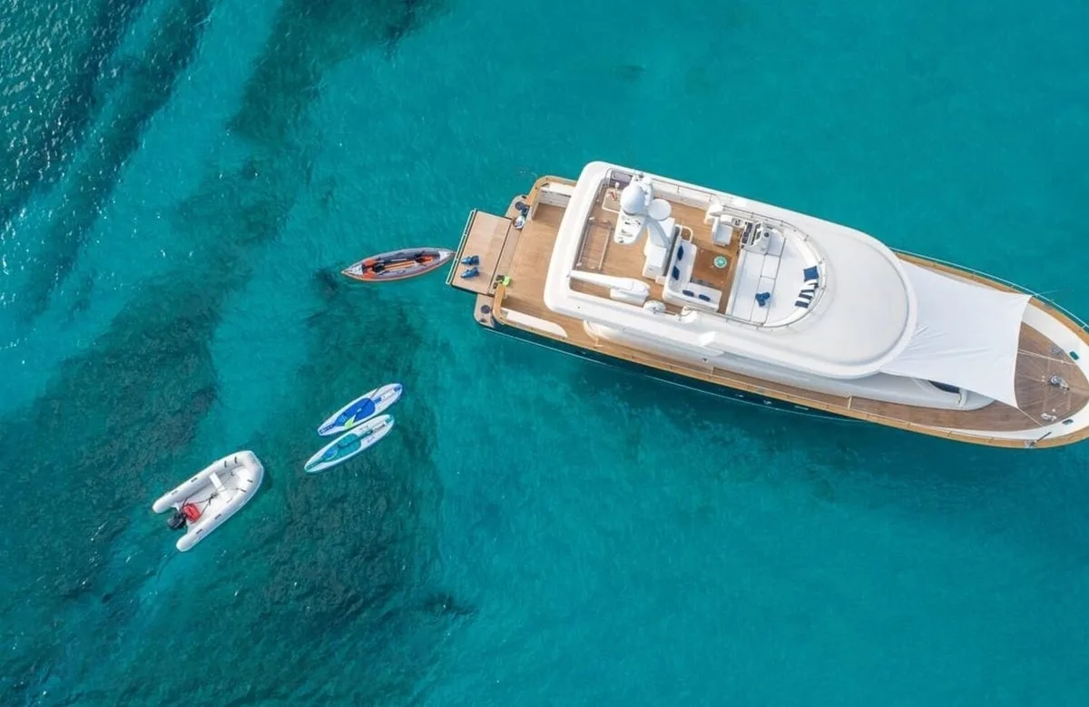 Step into a world where the day’s pleasures are as boundless as the sea itself. Trabucaire offers a sanctuary of refinement, where spacious interiors are complemented by modern conveniences like state-of-the-art Wi-Fi, ensuring you’re connected when you choose to be. As the day unfolds, relax with a book on the sunpads or enjoy a leisurely swim, returning to the perfectly climate-controlled comfort of the yacht. Evenings aboard transform into enchanting gatherings, where the harmonious blend of design and function creates a setting as inviting as the views beyond.
