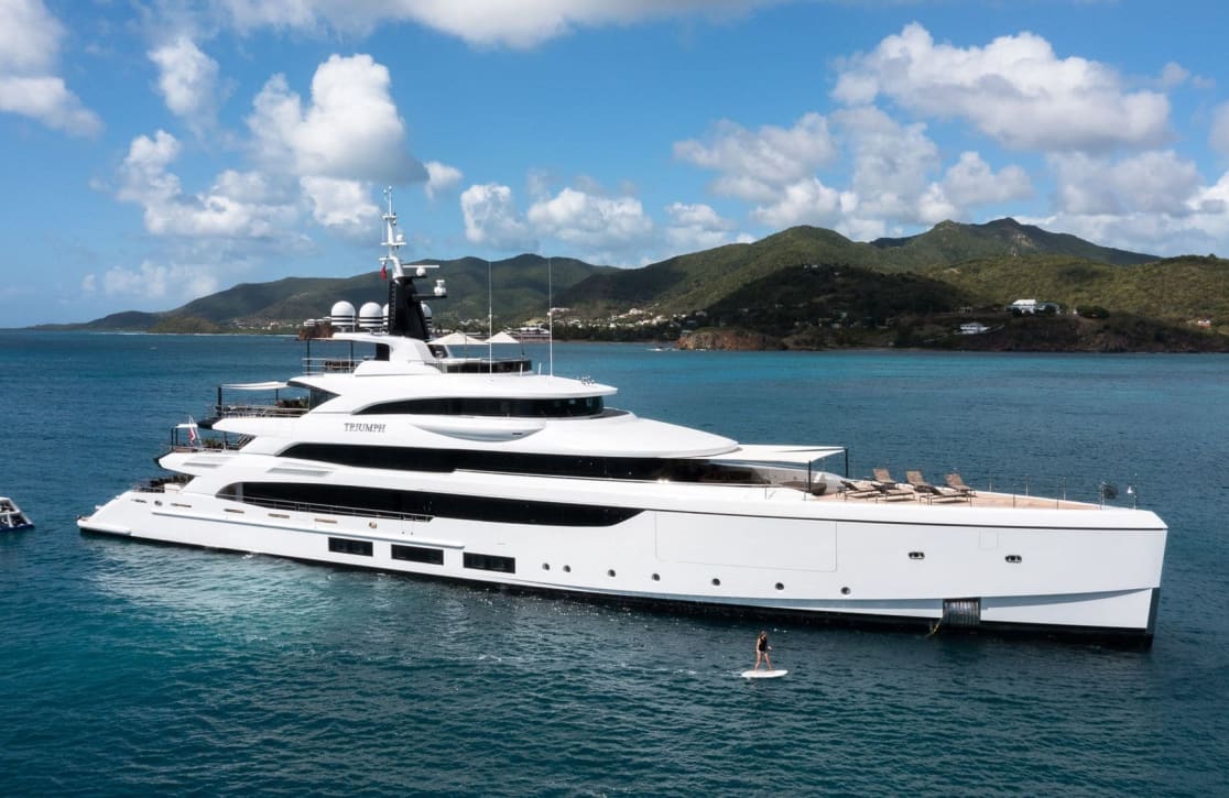 Embark on an extraordinary voyage aboard the magnificent Triumph, a 65-meter masterpiece crafted by the renowned Benetti shipyard. This award-winning yacht seamlessly blends elegance with functionality, offering a sanctuary where every detail is meticulously curated. As you traverse the azure seas, Triumph’s impressive engineering ensures a smooth and stable journey, with the promise of reaching far-off destinations up to 5,000 nautical miles away. Whether you’re savoring the coastal views from the sun-drenched decks or exploring vibrant ports of call, a week aboard Triumph is an invitation to immerse yourself in the art of refined travel.