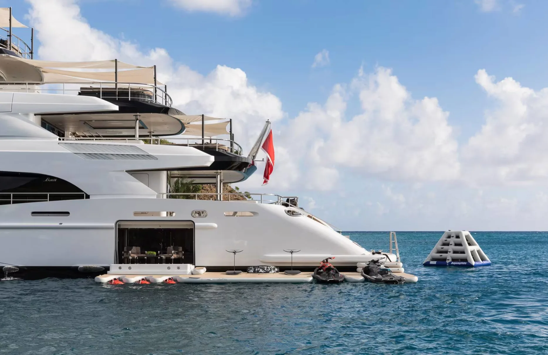 Embark on an extraordinary voyage aboard the magnificent Triumph, a 65-meter masterpiece crafted by the renowned Benetti shipyard. This award-winning yacht seamlessly blends elegance with functionality, offering a sanctuary where every detail is meticulously curated. As you traverse the azure seas, Triumph’s impressive engineering ensures a smooth and stable journey, with the promise of reaching far-off destinations up to 5,000 nautical miles away. Whether you’re savoring the coastal views from the sun-drenched decks or exploring vibrant ports of call, a week aboard Triumph is an invitation to immerse yourself in the art of refined travel.