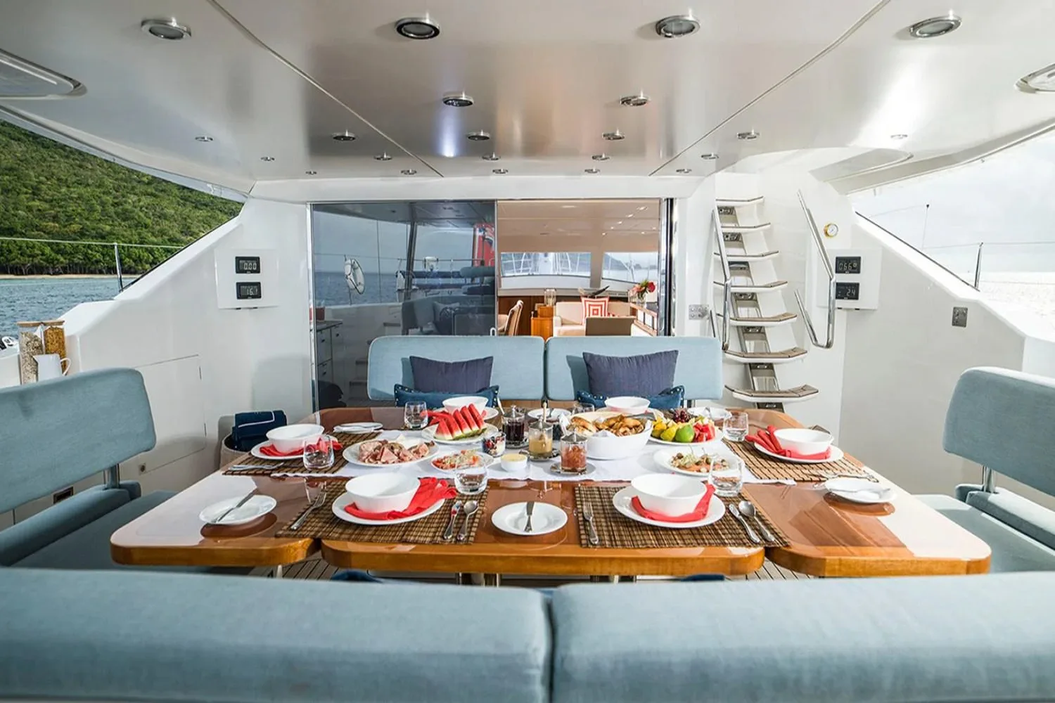 Twilight II is a sanctuary of comfort and connectivity, where modern conveniences blend effortlessly with timeless elegance. The yacht’s interiors are a haven, offering Wi-Fi to keep you connected with the world as you drift away from it. The air-conditioned spaces provide a refreshing retreat from the sun, inviting you to relax in style and comfort. Evenings are perfect for gathering in intimate lounges, sharing stories of the day’s adventures, or enjoying a film under the starry sky. Every detail aboard is curated to elevate your journey.