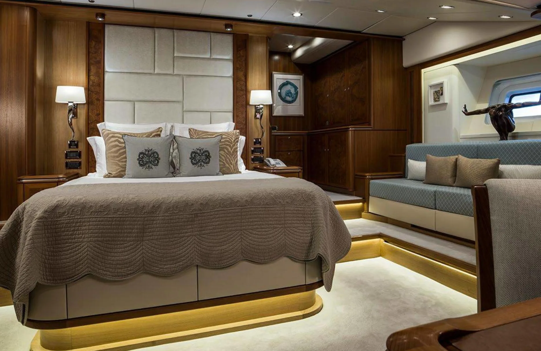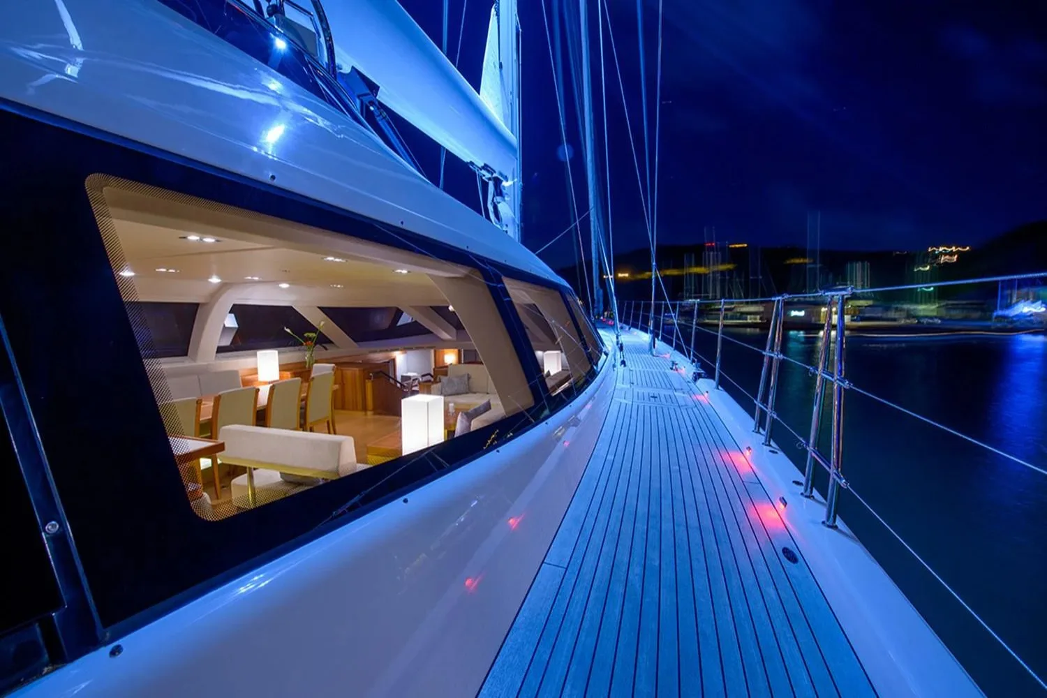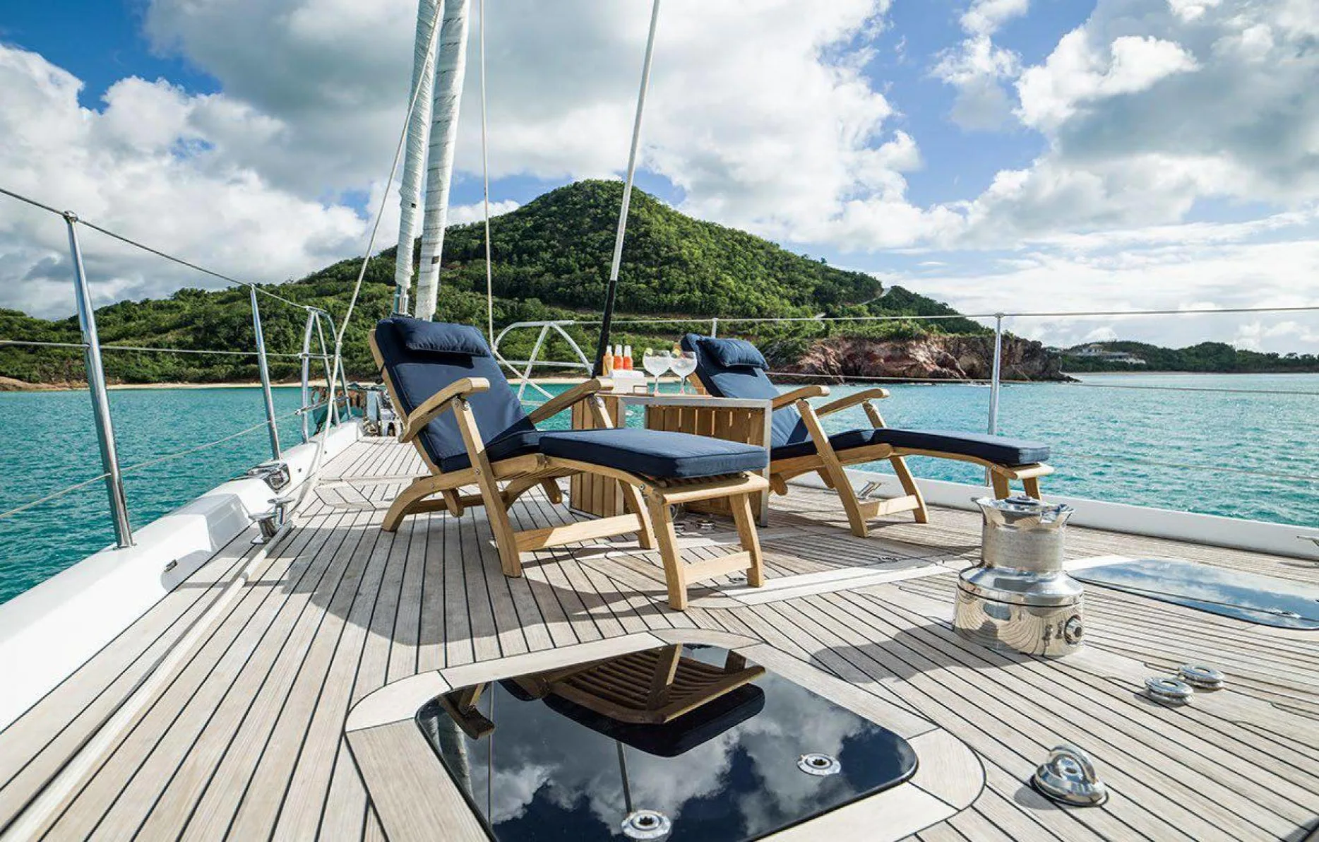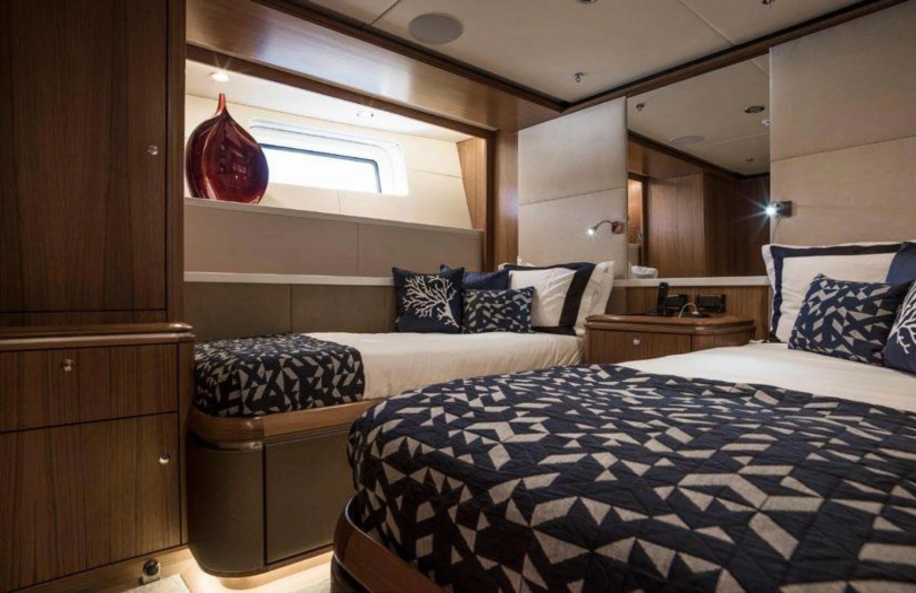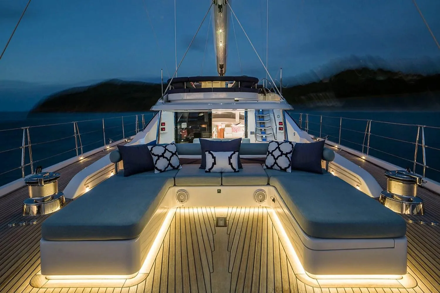Onboard Twilight II, every moment is an opportunity to relish the art of sailing while surrounded by the impeccable design of Rhoades Young. Her composite hull ensures a smooth journey, while the attentive crew of five anticipates your every need, crafting a seamless and indulgent experience. As the sun sets, gather with friends and family on the deck, or unwind in the beautifully appointed interiors, each space thoughtfully designed to enhance your voyage.