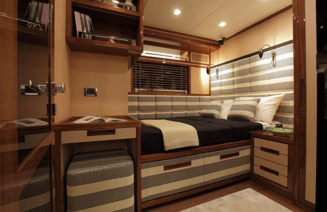 Onboard Vay, every moment is curated for your pleasure and relaxation. The expansive decks invite you to bask in the sun’s warmth, while the gentle sea breeze caresses your skin. As day turns to evening, the air-conditioned interiors offer a cool retreat where you can unwind with your favorite book or connect with loved ones through the onboard Wi-Fi. Whether you’re enjoying the views from the sunpads or savoring a fine meal prepared by the attentive crew, life aboard Vay is a harmonious blend of tranquility and sophistication.
