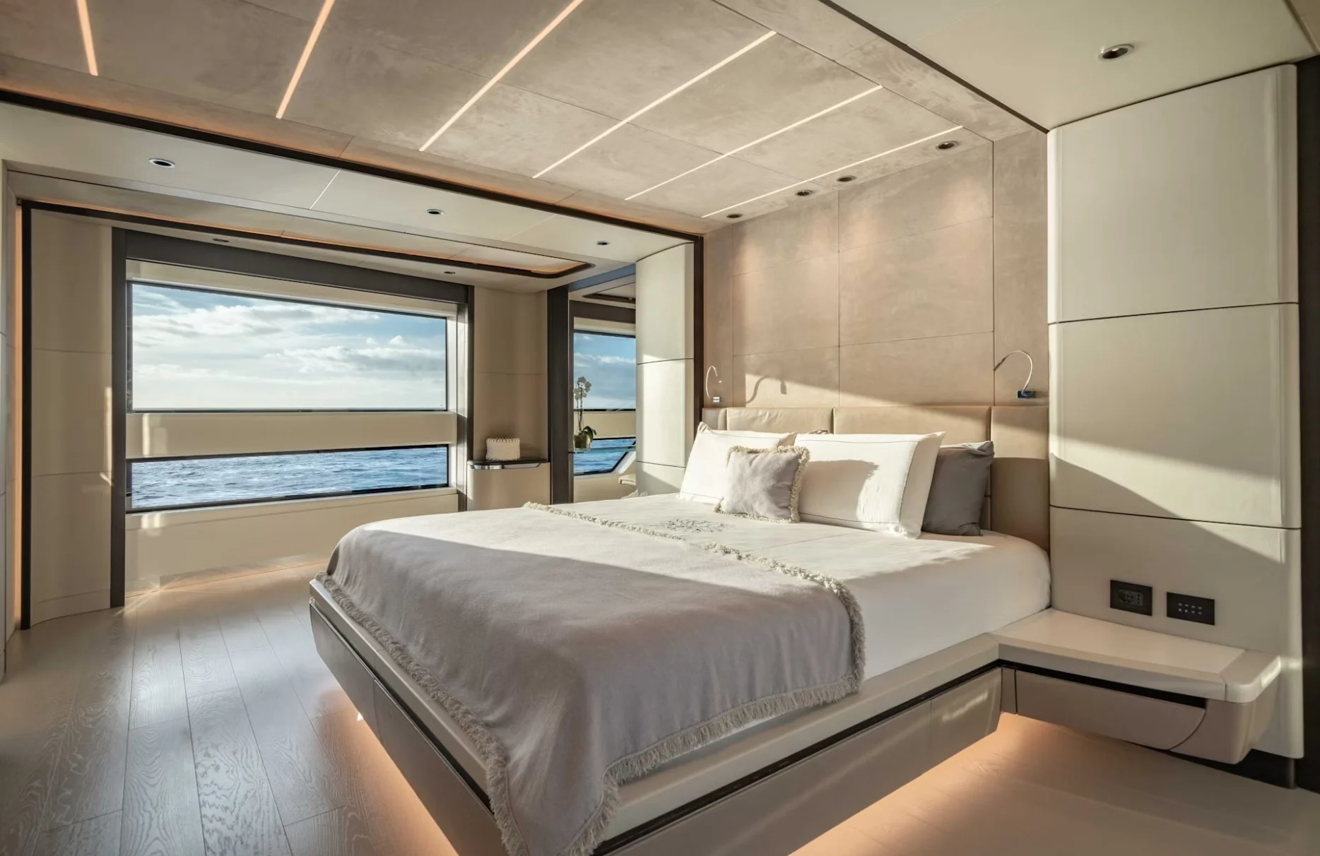 Step into the luxurious embrace of Vayus’ accommodations, where up to ten guests are treated to an experience of pure refinement. The master suite offers a sanctuary of calm, while two VIP staterooms and two double cabins provide exquisitely appointed spaces for rest and rejuvenation. Awaken each morning to the gentle sway of the sea, as sunlight filters through elegantly designed interiors, setting the perfect tone for the day ahead. With a dedicated crew of six attending to your every need, the essence of comfort is redefined with each passing moment.