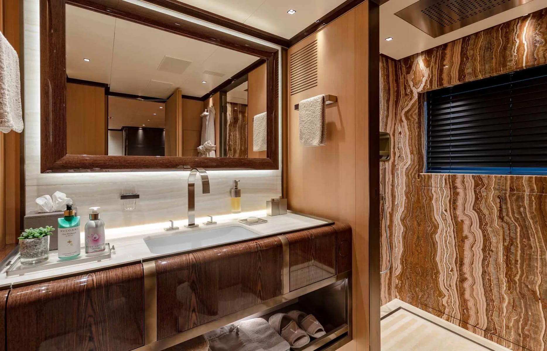 Vertige accommodates up to 12 guests in six beautifully appointed cabins, each designed to offer a sanctuary of comfort and elegance. Drift into slumber in the master suite, where gentle waves and luxurious furnishings create a cocoon of tranquility. Each morning, the promise of a new day beckons as you wake to the soft glow of sunlight filtering through expansive windows. The yacht’s thoughtful layout includes a VIP cabin, three double cabins, and a twin cabin, ensuring every guest enjoys a restful retreat with exquisite attention to detail.