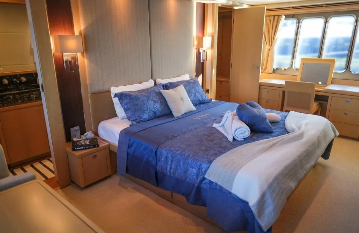 As you step aboard this exquisite yacht, you’re not just signing up for a voyage but embarking on a lifestyle experience. ‘Via’ promises more than just a journey; it offers a gateway to explore both the tranquil and vibrant sides of each destination. The versatile spaces onboard, combined with impeccable service from a dedicated crew of three, ensure a seamless blend of relaxation and adventure. Whether you’re savoring a tranquil evening on deck or planning an onshore excursion, ‘Via’ is your ultimate companion for a memorable escape.