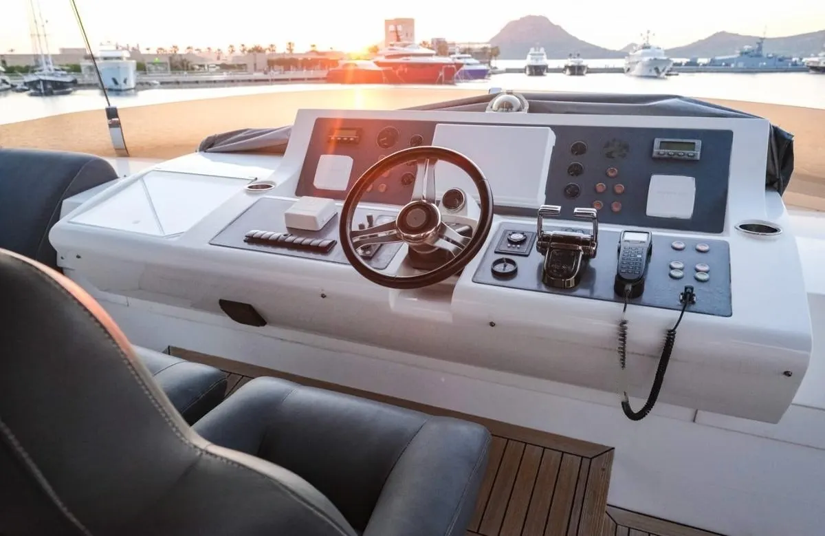 Life aboard ‘Via’ is a seamless blend of comfort and sophistication. Imagine enjoying the cool breeze on the deck as you unwind in the spacious outdoor living areas, perhaps catching up on the latest news or your favorite series with the yacht’s reliable Wi-Fi. Inside, the climate-controlled air conditioning offers a respite from the midday sun, allowing you to relax in the refined interiors designed by Princess. Whether hosting an intimate gathering under the stars or enjoying a quiet afternoon with a good book, every corner of ‘Via’ is tailored for your enjoyment.