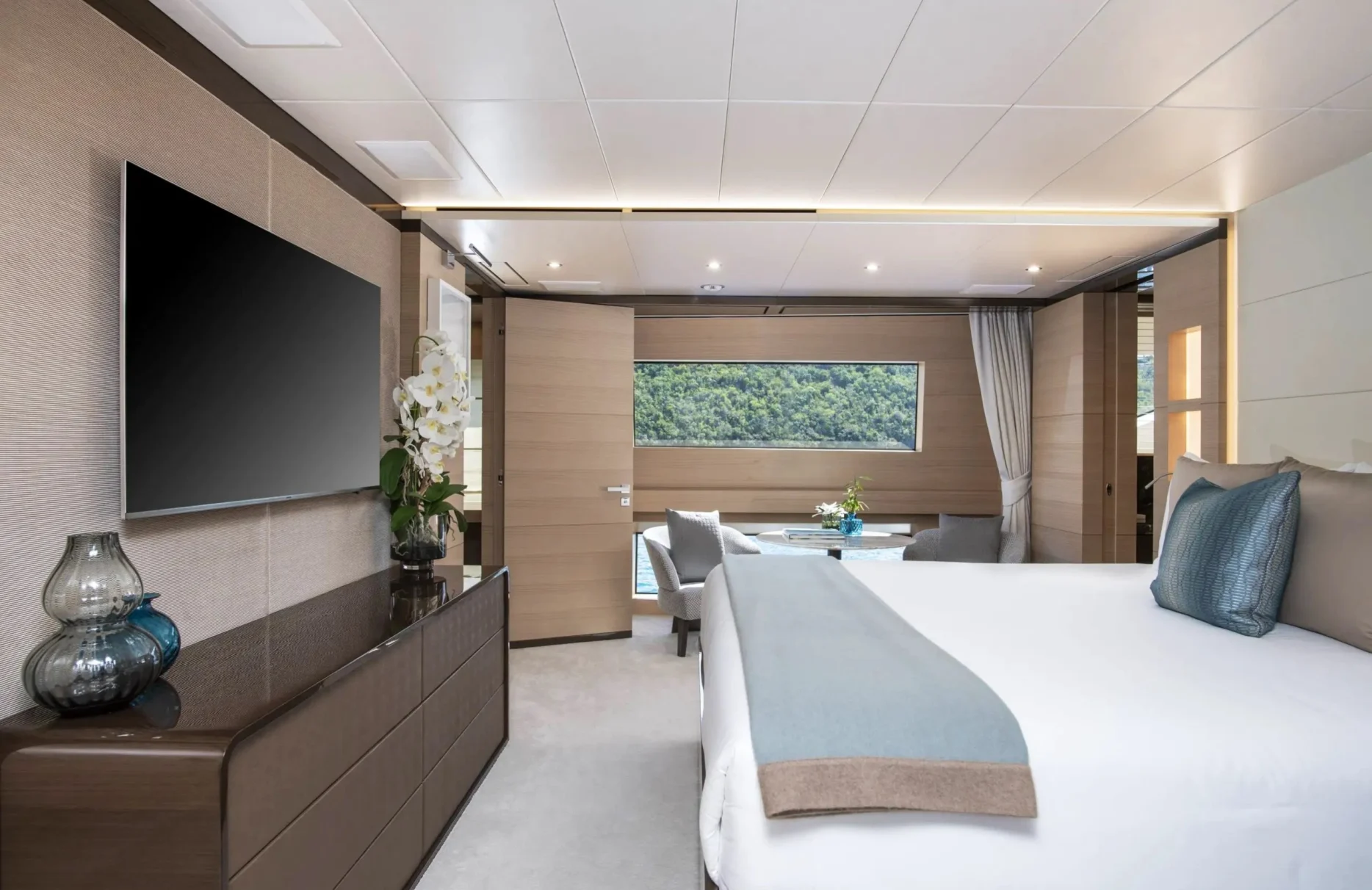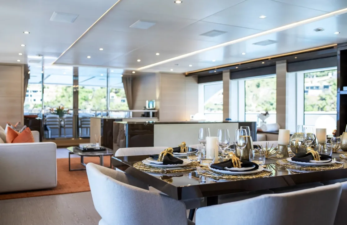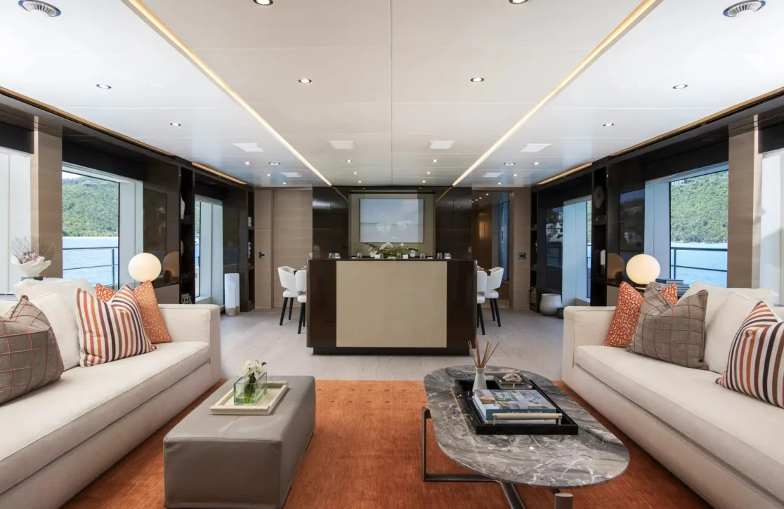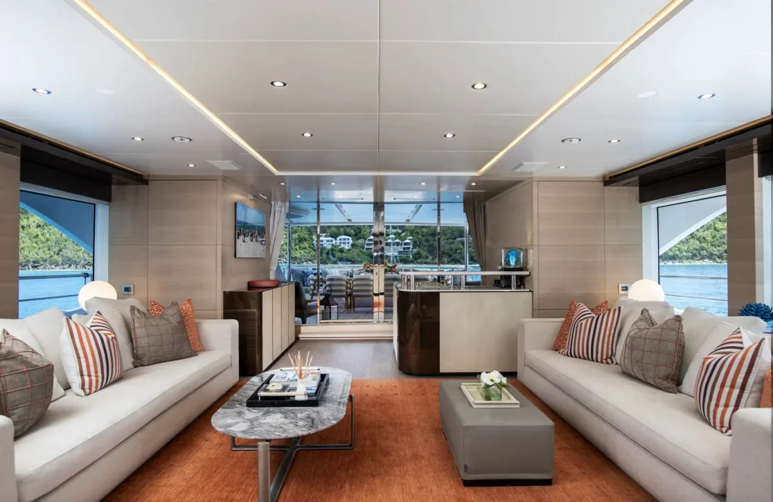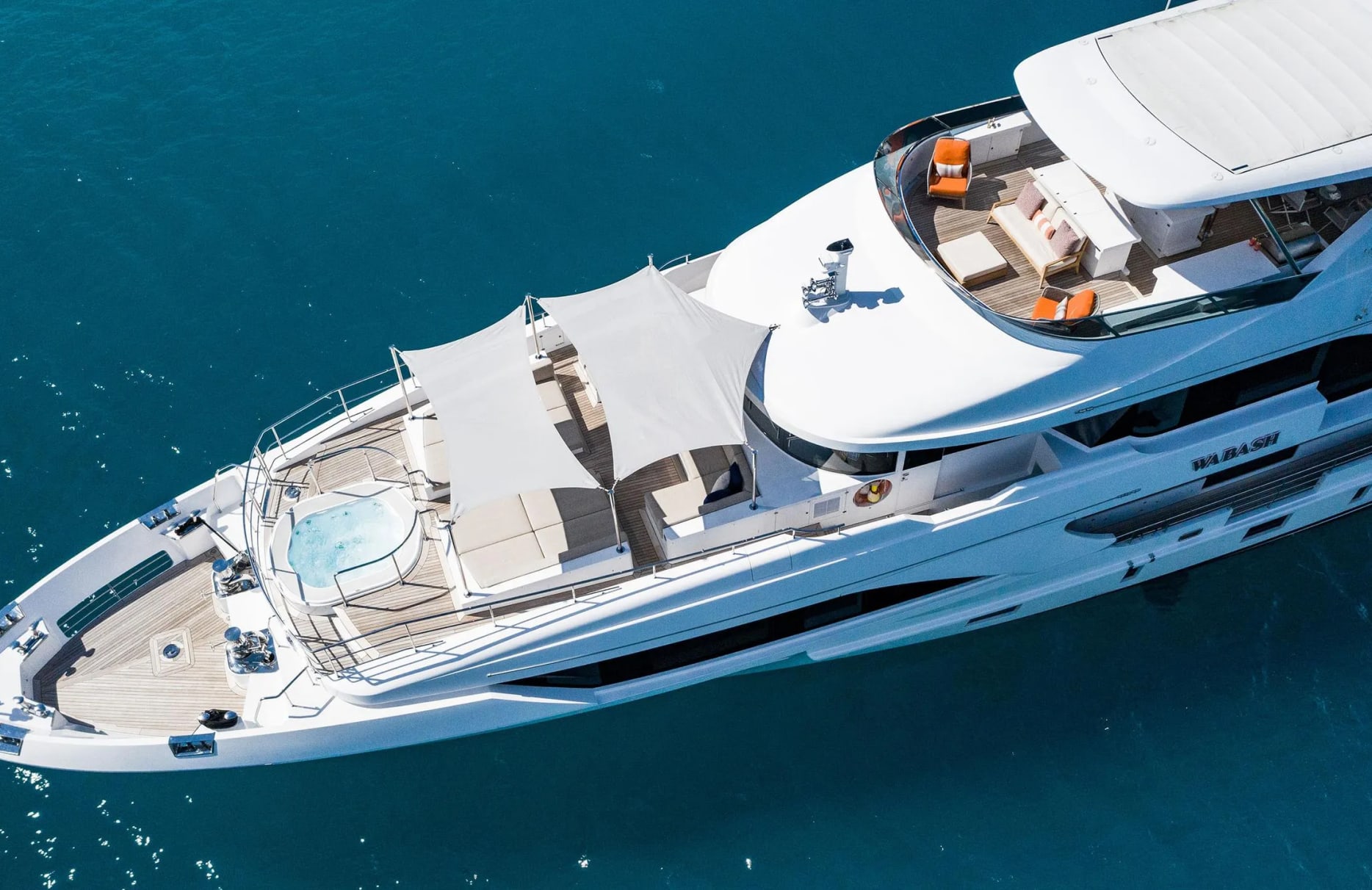 Onboard Wabash, every moment is crafted for comfort and delight. Picture yourself basking in the sun on the expansive sun deck, a refreshing cocktail in hand, or finding serenity in the deck jacuzzi as you gaze upon endless horizons. The yacht’s sophisticated air conditioning system ensures a perfect climate indoors, while Wi-Fi keeps you effortlessly connected to the world beyond. As daylight fades, the at-anchor stabilizers provide a gentle lull, setting the scene for an evening of refined entertainment and relaxation, whether you choose to unwind in the sumptuous indoor spaces or under the canopy of stars.