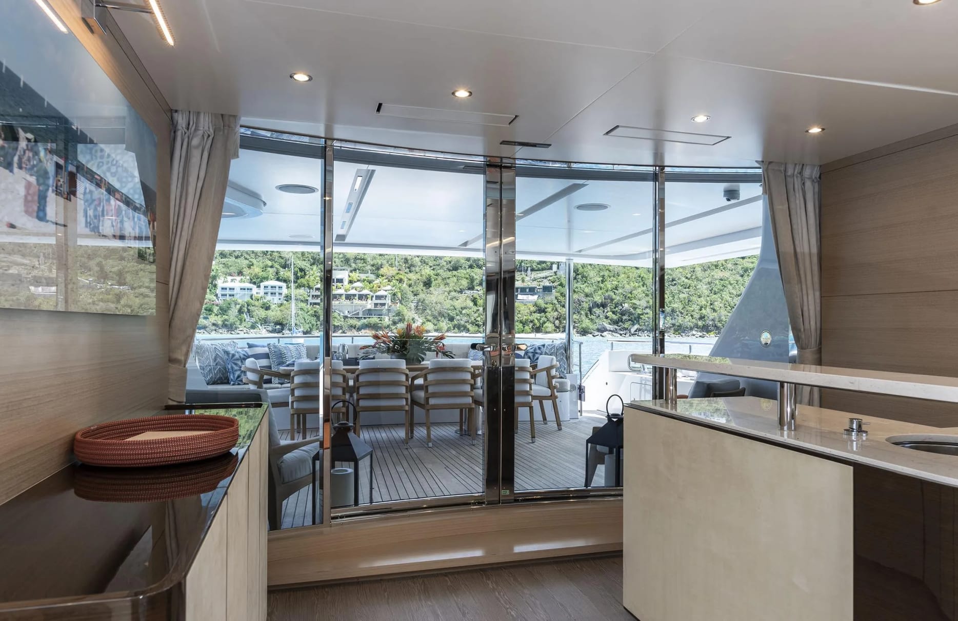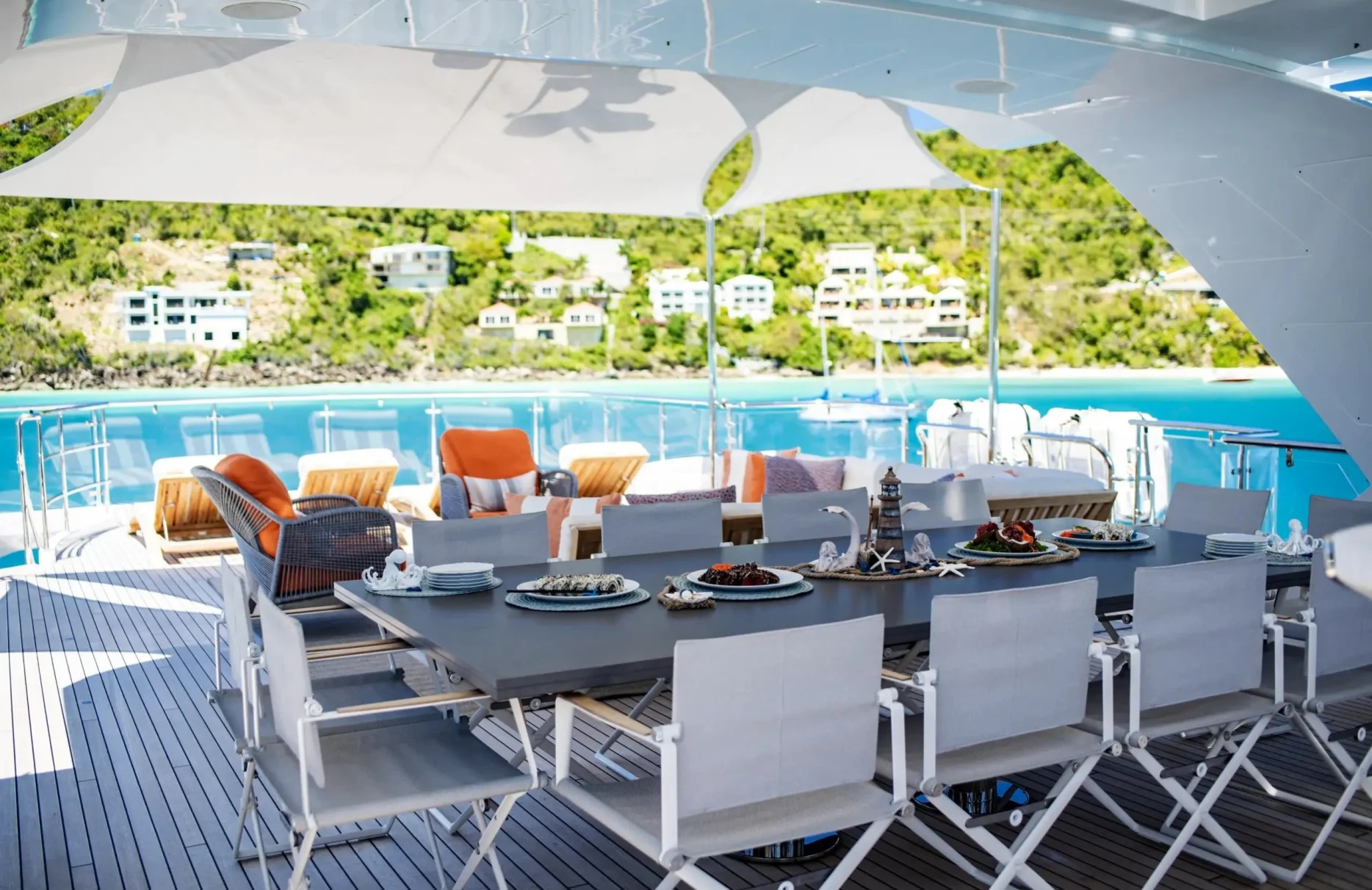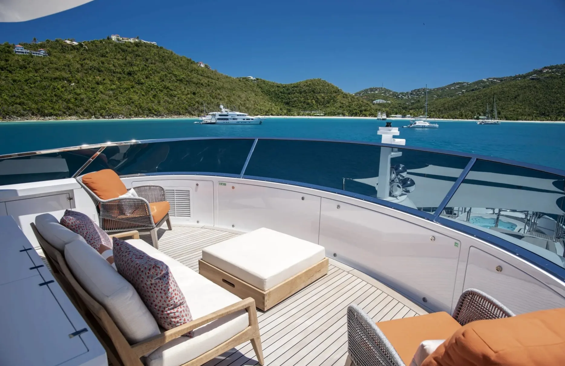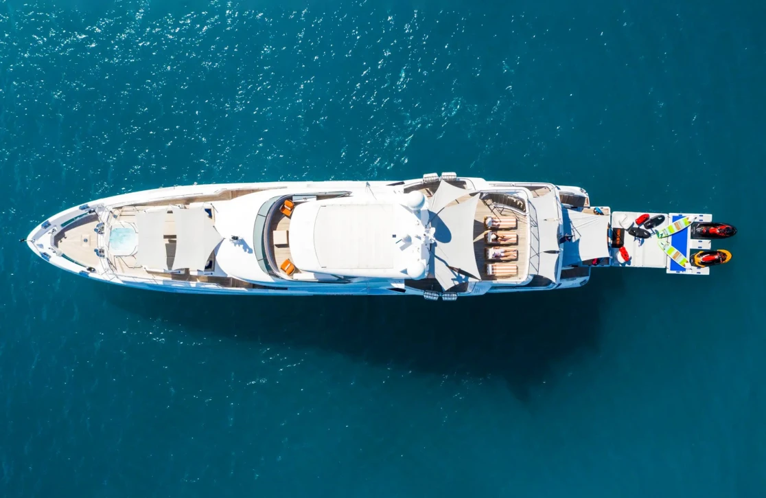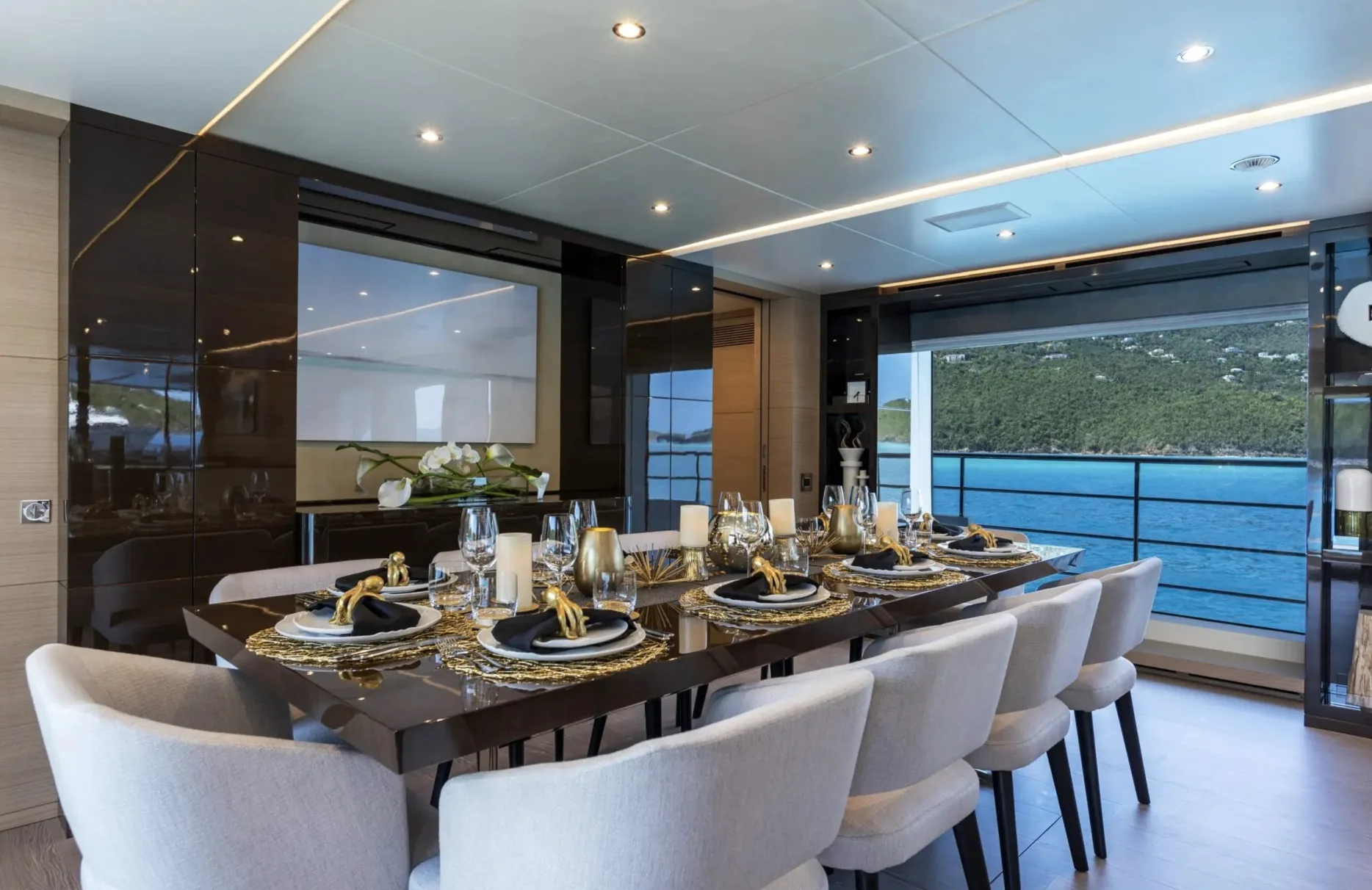 Onboard Wabash, every moment is crafted for comfort and delight. Picture yourself basking in the sun on the expansive sun deck, a refreshing cocktail in hand, or finding serenity in the deck jacuzzi as you gaze upon endless horizons. The yacht’s sophisticated air conditioning system ensures a perfect climate indoors, while Wi-Fi keeps you effortlessly connected to the world beyond. As daylight fades, the at-anchor stabilizers provide a gentle lull, setting the scene for an evening of refined entertainment and relaxation, whether you choose to unwind in the sumptuous indoor spaces or under the canopy of stars.
