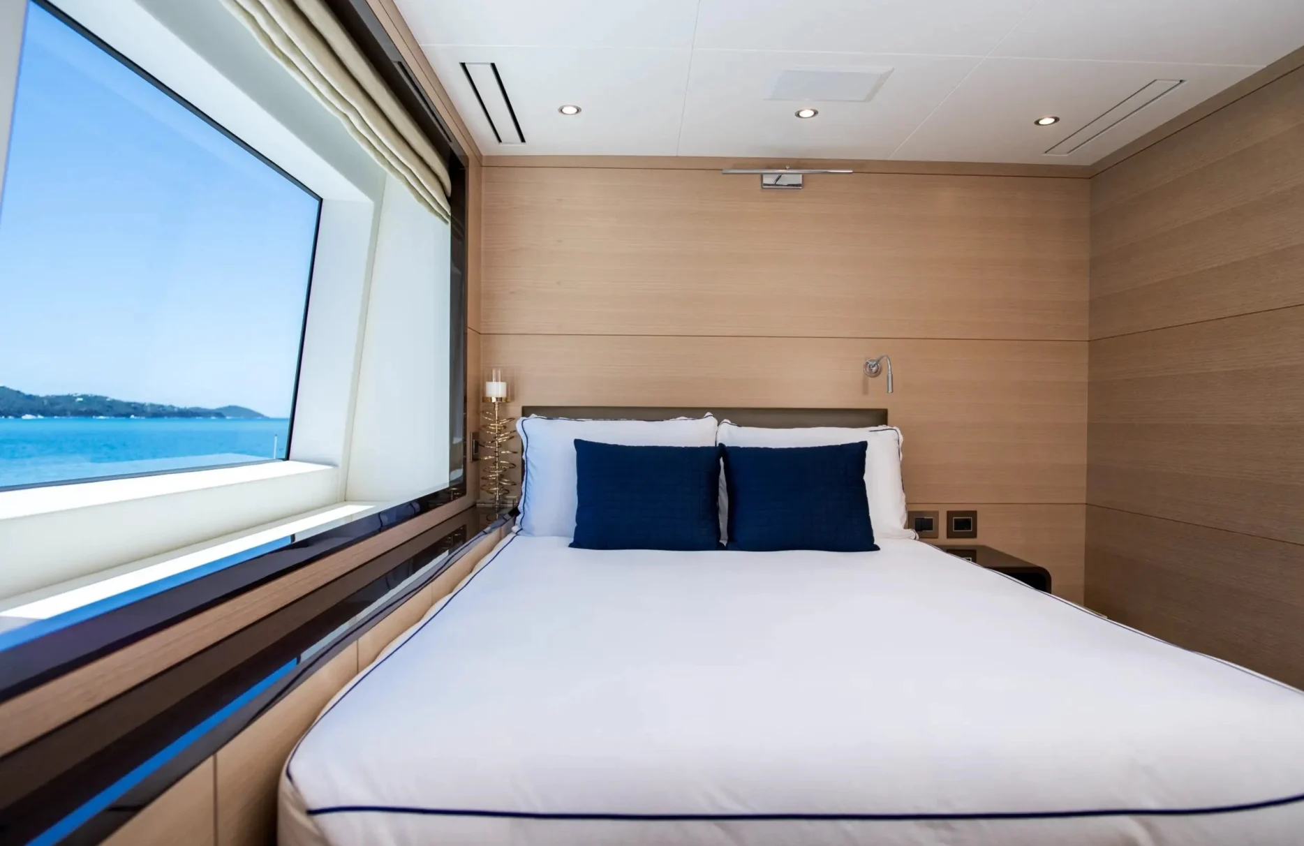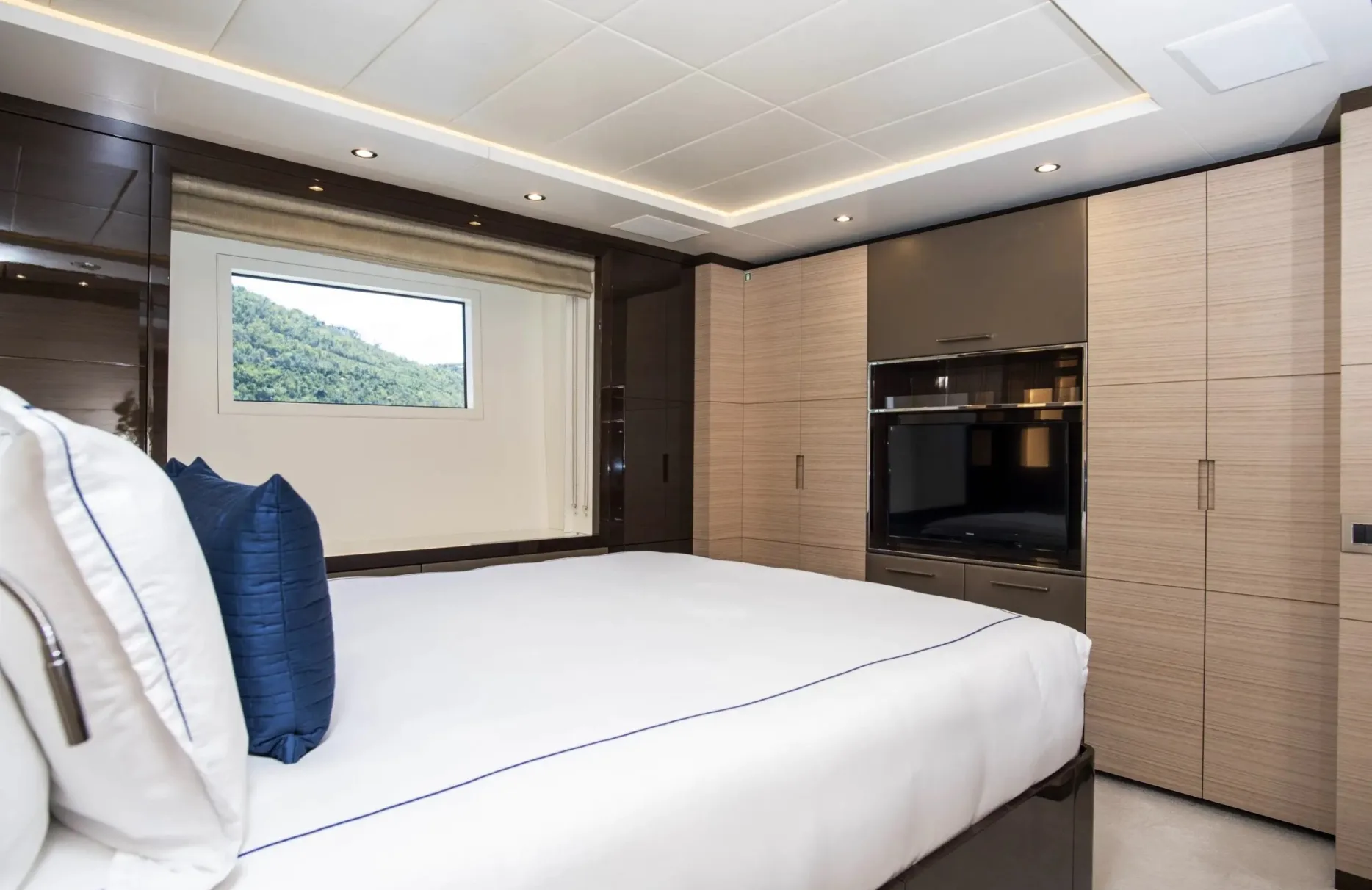 Wabash offers a sanctuary of comfort for up to 10 guests, with five elegantly appointed cabins that promise a restful retreat. The master suite, located on the main deck, provides a haven of tranquility with its generous space and a luxurious his-and-her bathroom. Alongside the master suite, a VIP cabin, a double cabin, and two twin cabins ensure that every guest experiences the utmost in comfort and privacy. Imagine waking up to the gentle sway of the ocean, the sunlight streaming through your window, and the promise of another day of exploration and indulgence on the horizon.