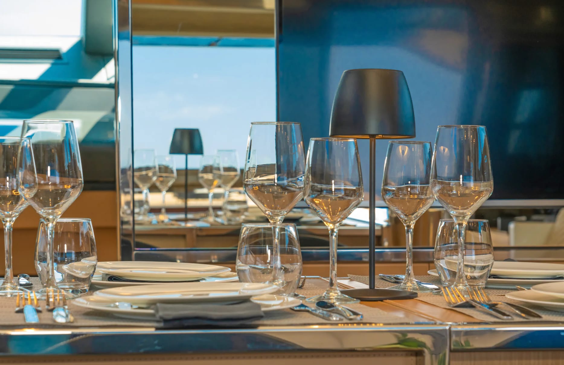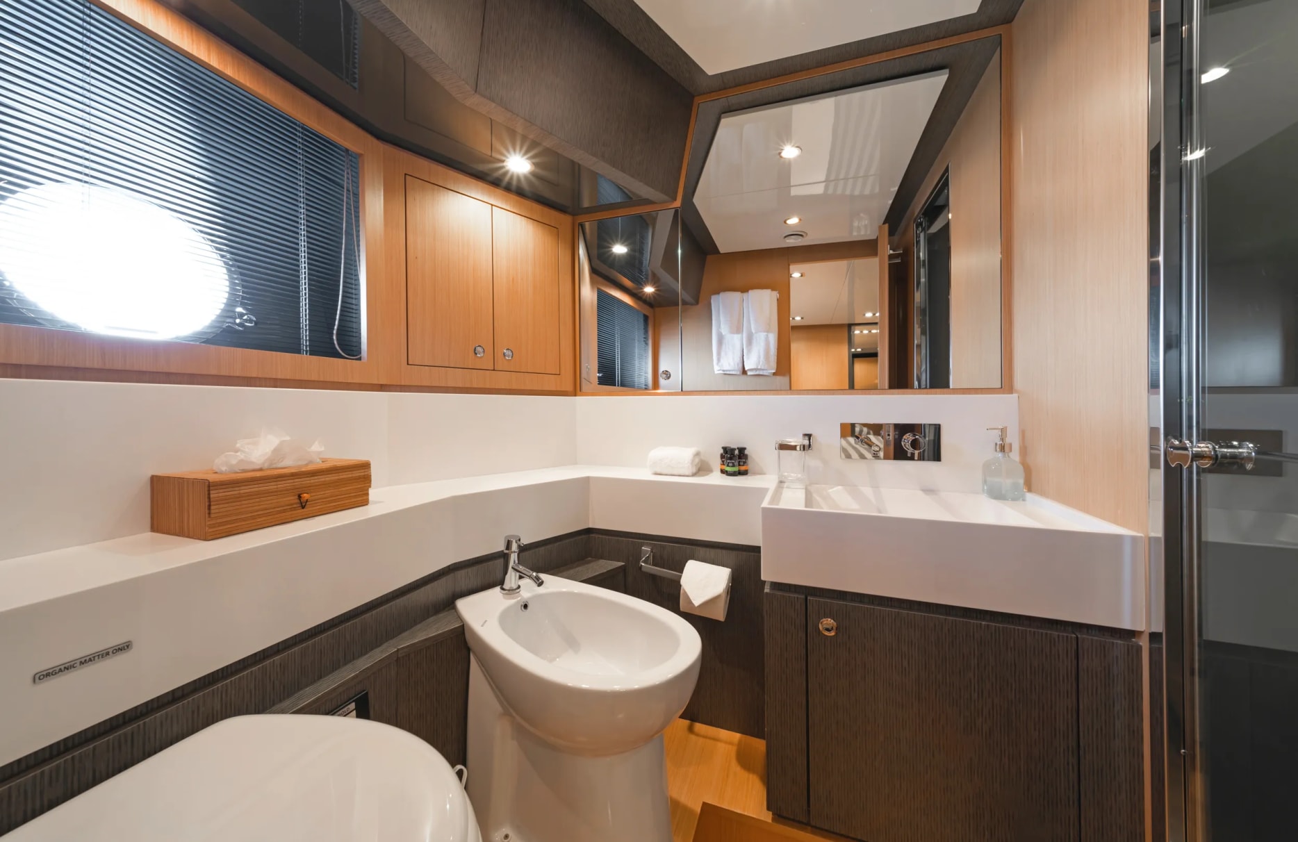 Hosting up to eight guests, Whatever offers an intimate sanctuary with four impeccably designed cabins that include a master suite, a VIP cabin, a double cabin, and a twin cabin. Each room is a haven of tranquility, where waking up to the gentle lull of the sea and the play of morning light creates a serene start to each day. The thoughtful layout and exquisite detailing provide an inviting space to unwind and relish the peace of your private retreat.