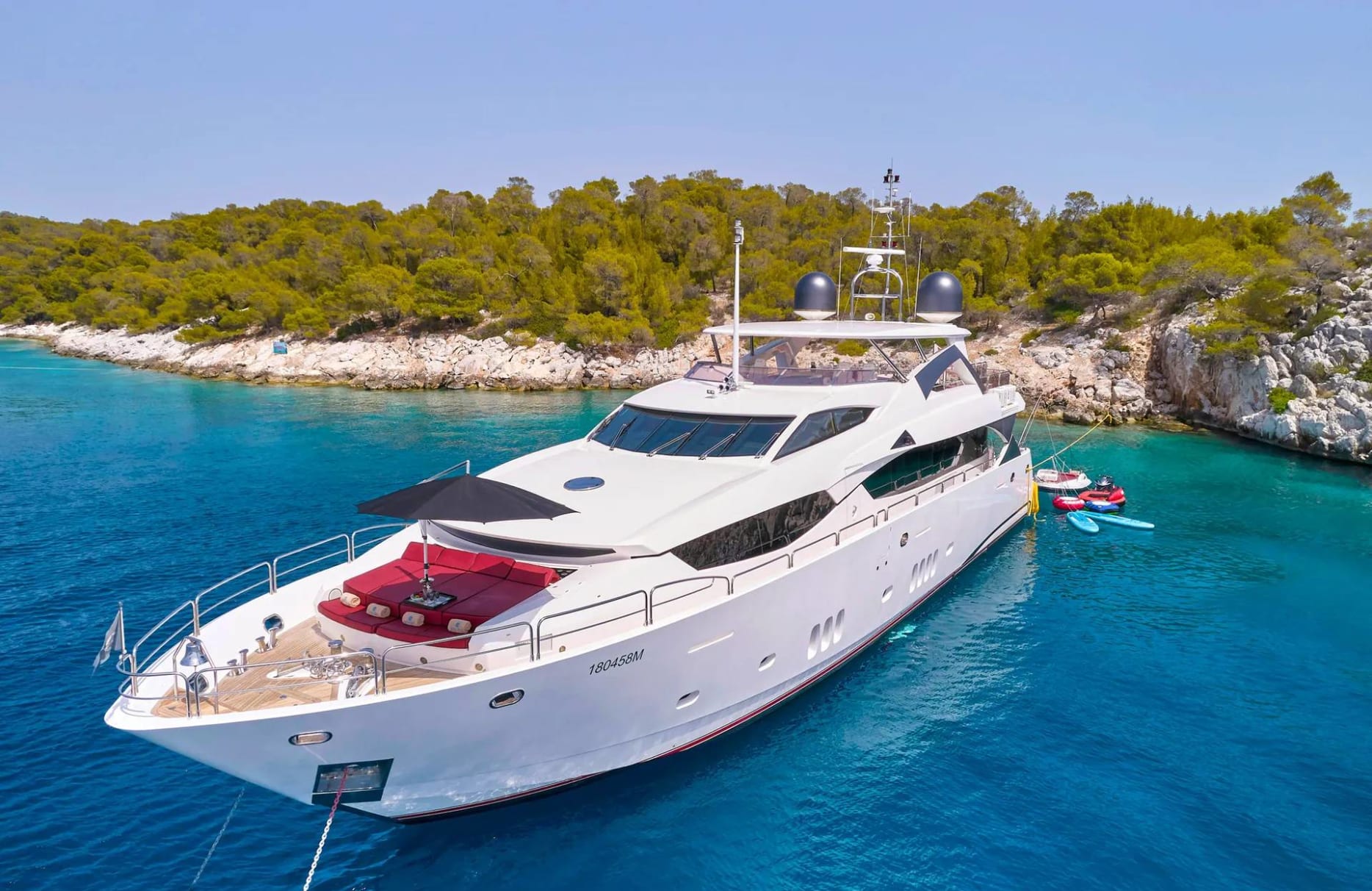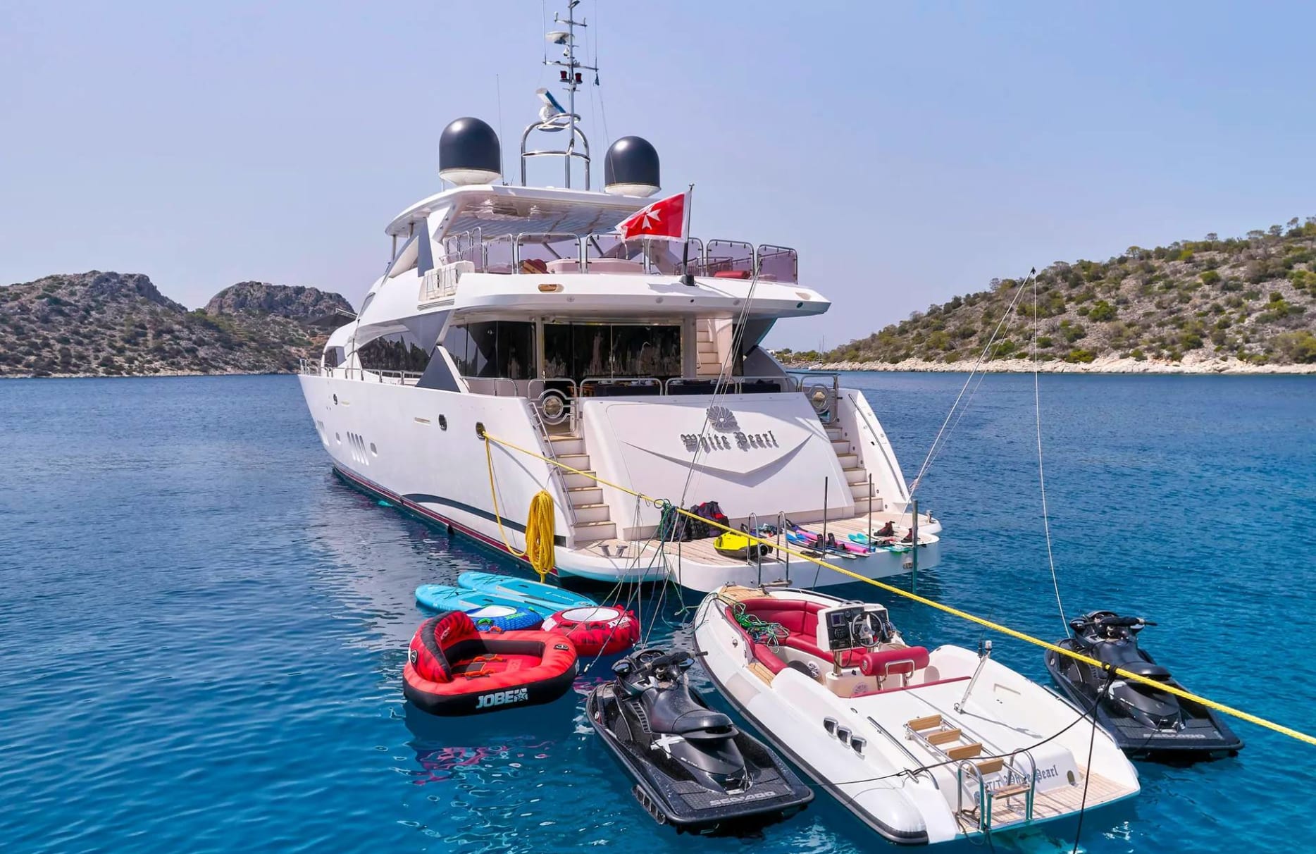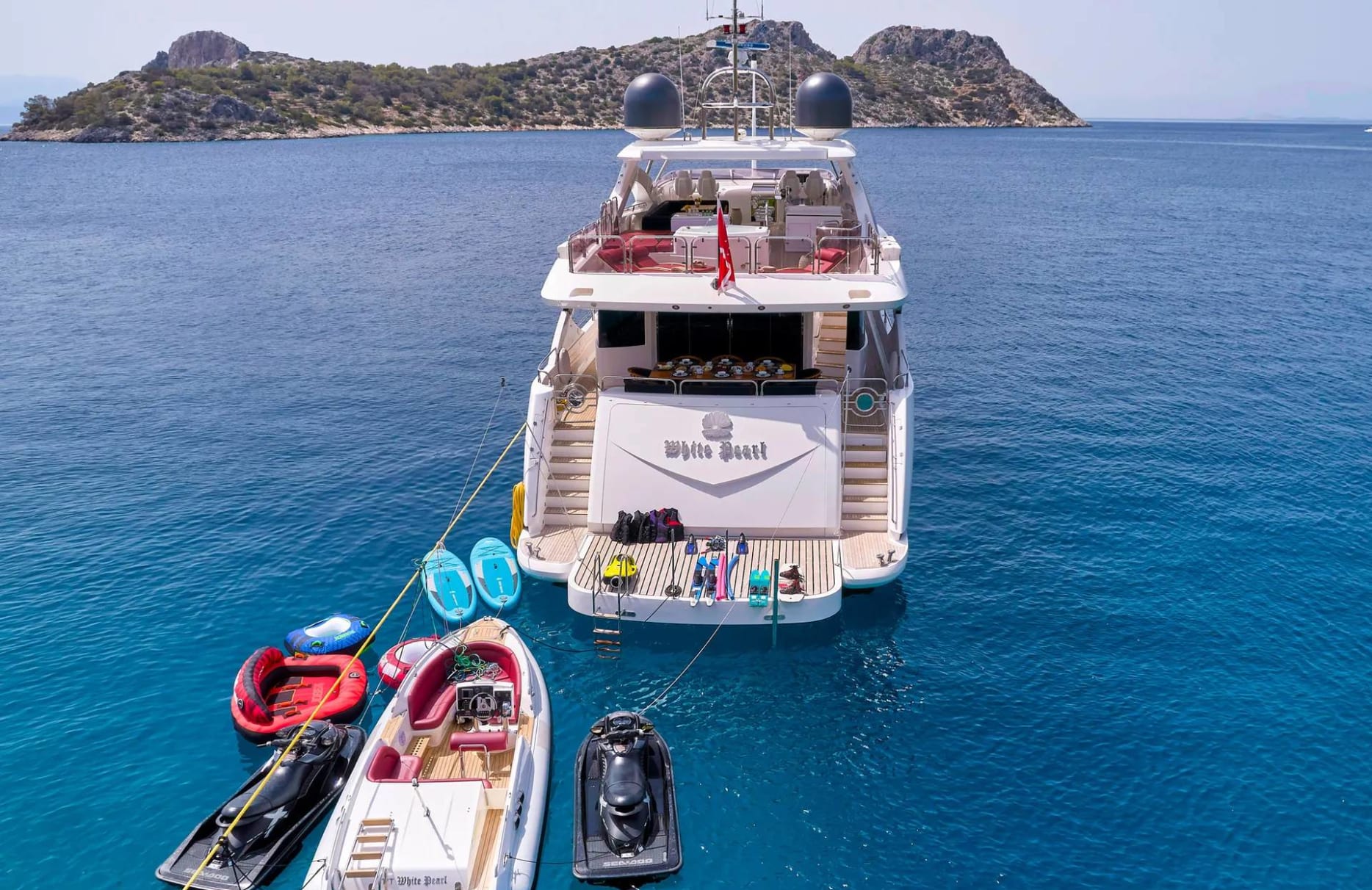 Embark on a voyage aboard White Pearl I, a masterpiece of nautical design by the revered Sunseeker shipyard. Spanning over 111 feet, this motor yacht melds elegance with engineering prowess, offering an experience that transcends the ordinary. With a cruising speed of 18 knots and a range of 1,250 nautical miles, your exploration of the Mediterranean’s sun-drenched coasts and secluded coves is only limited by your imagination. As you glide across azure waters, the promise of enchanting adventures awaits both on deck and ashore. Whether it’s a week of serene relaxation or vibrant exploration, White Pearl I offers a canvas for unforgettable moments, all meticulously curated by a dedicated crew.