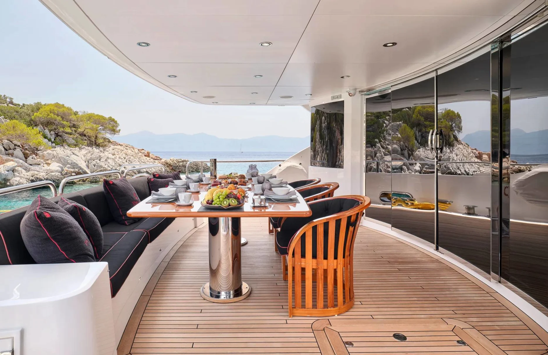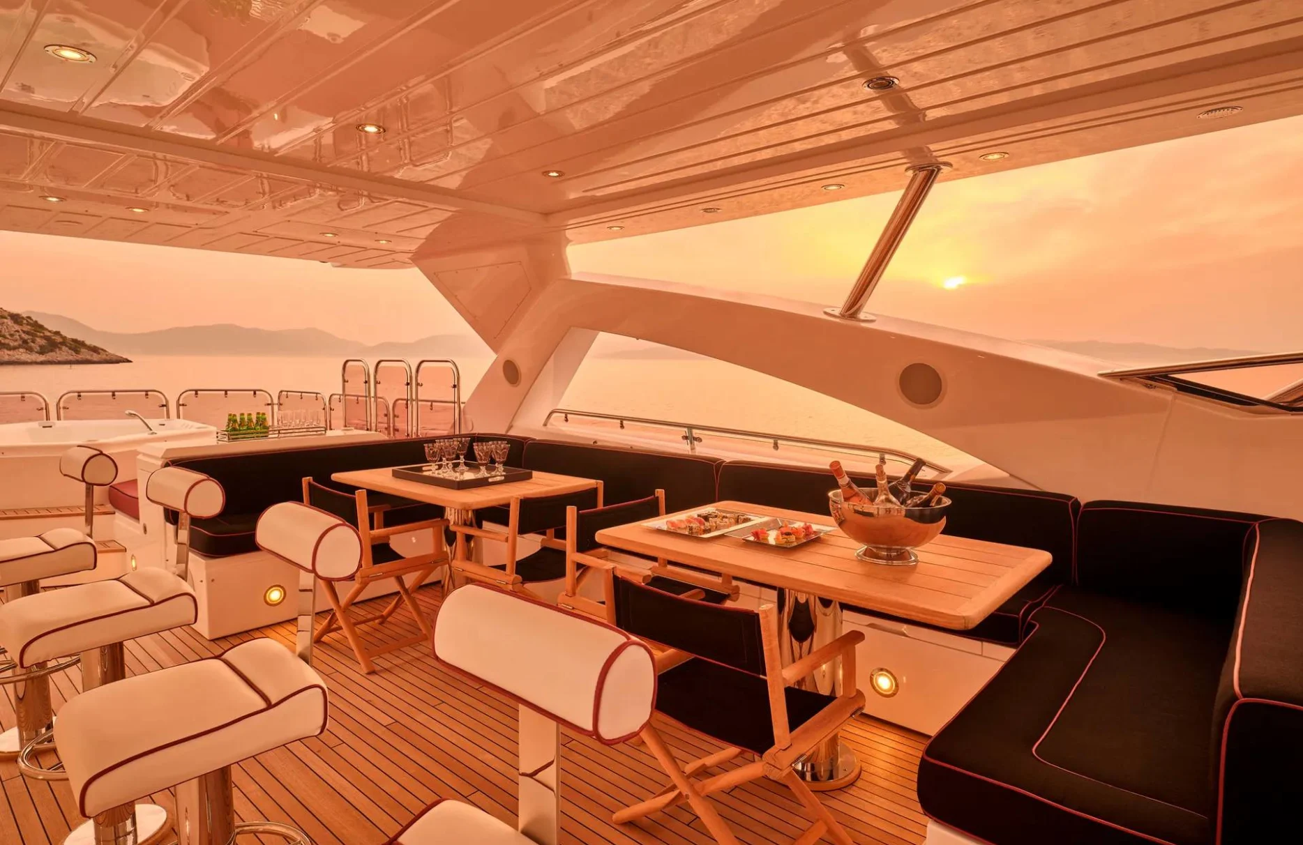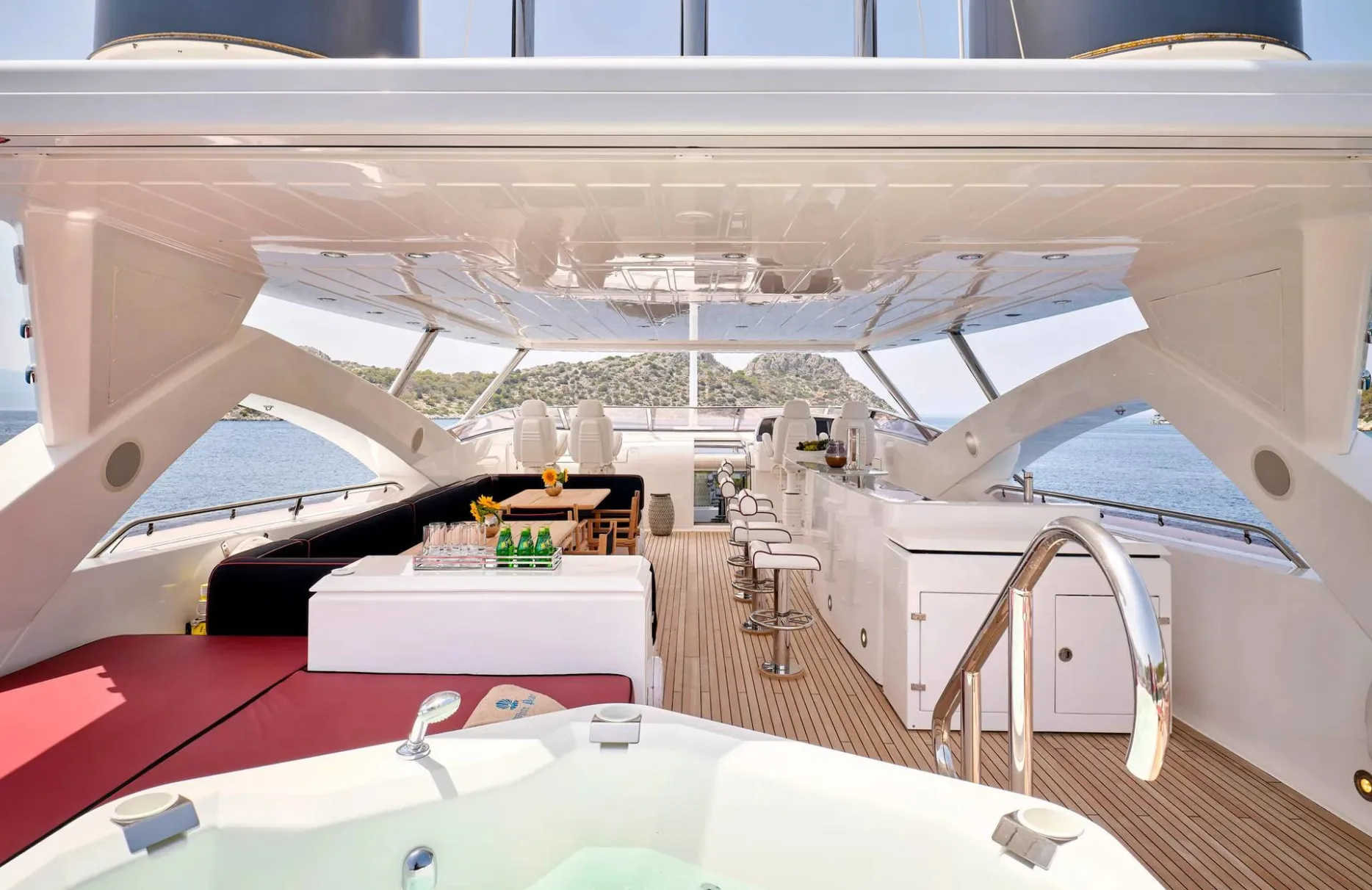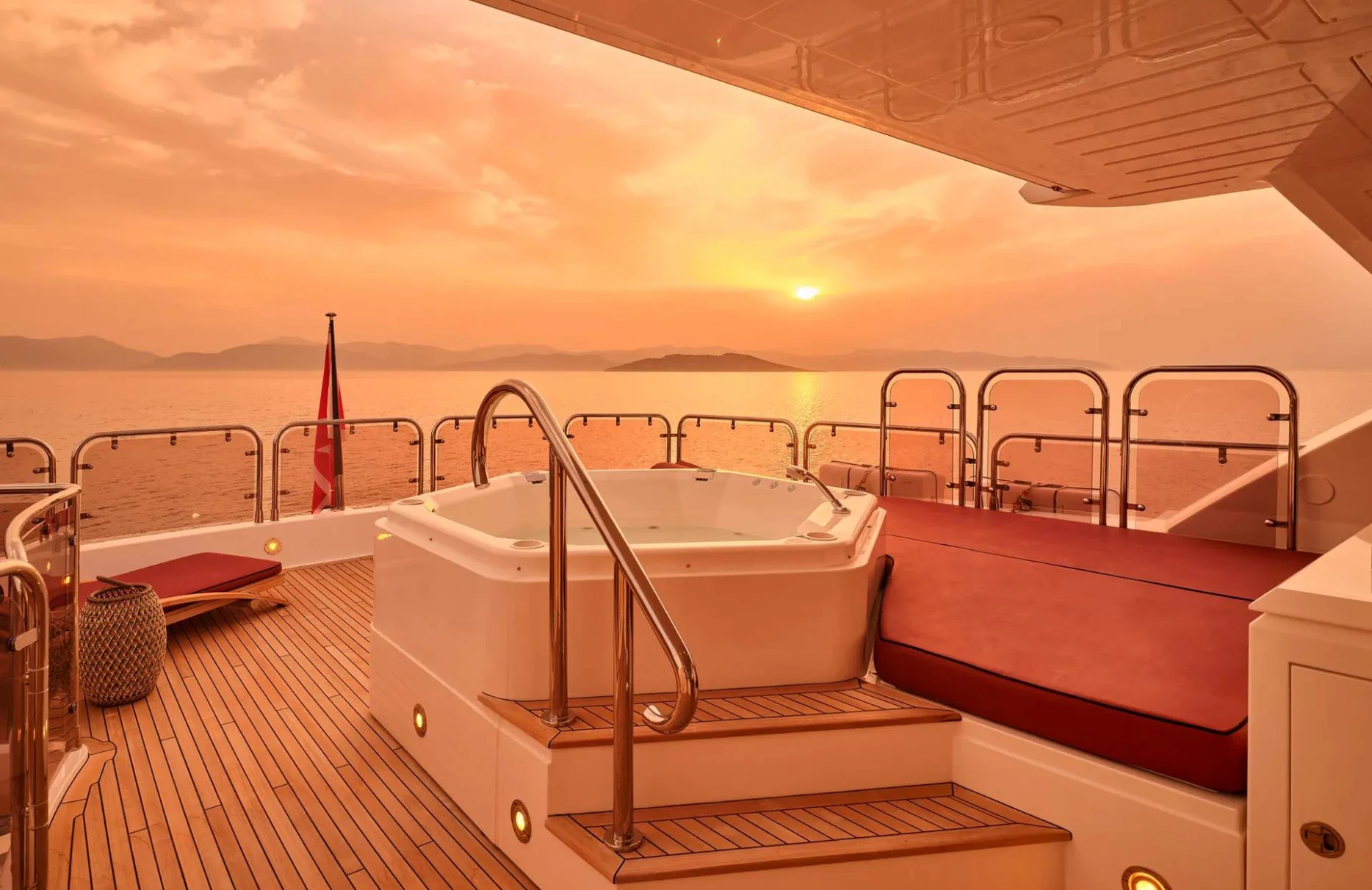 Step into a world where every detail is a testament to refined living. Onboard White Pearl I, indulge in the serenity of the deck jacuzzi as the sun dips below the horizon, or maintain your wellness routine in the fully equipped gym. Stay connected with the world through high-speed Wi-Fi, or retreat to the media room for an evening of entertainment via satellite TV and games consoles. The yacht’s thoughtfully designed spaces, from the sun-drenched terraces to the elegant salon, invite both tranquil solitude and joyful gatherings, creating a harmonious blend of intimacy and openness.
