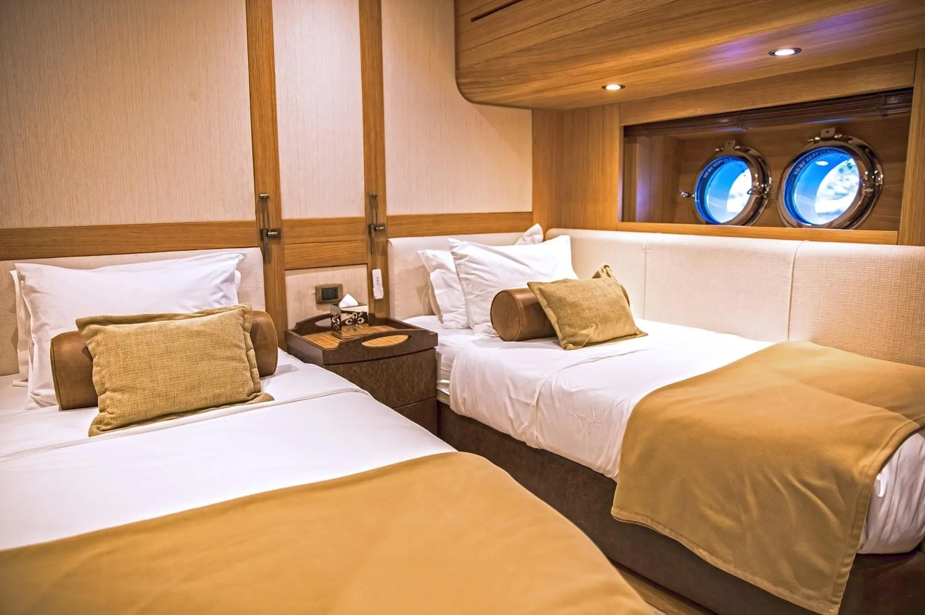 ZanZiba offers an intimate retreat with accommodations for up to 10 guests in five thoughtfully designed cabins. Each room is a sanctuary of comfort, inviting you to wake up to the gentle sway of the sea and stunning vistas framed by your cabin window. Supported by a dedicated crew of seven, your stay aboard promises a seamless blend of privacy and attentive service, ensuring each moment is as restful or invigorating as you desire.