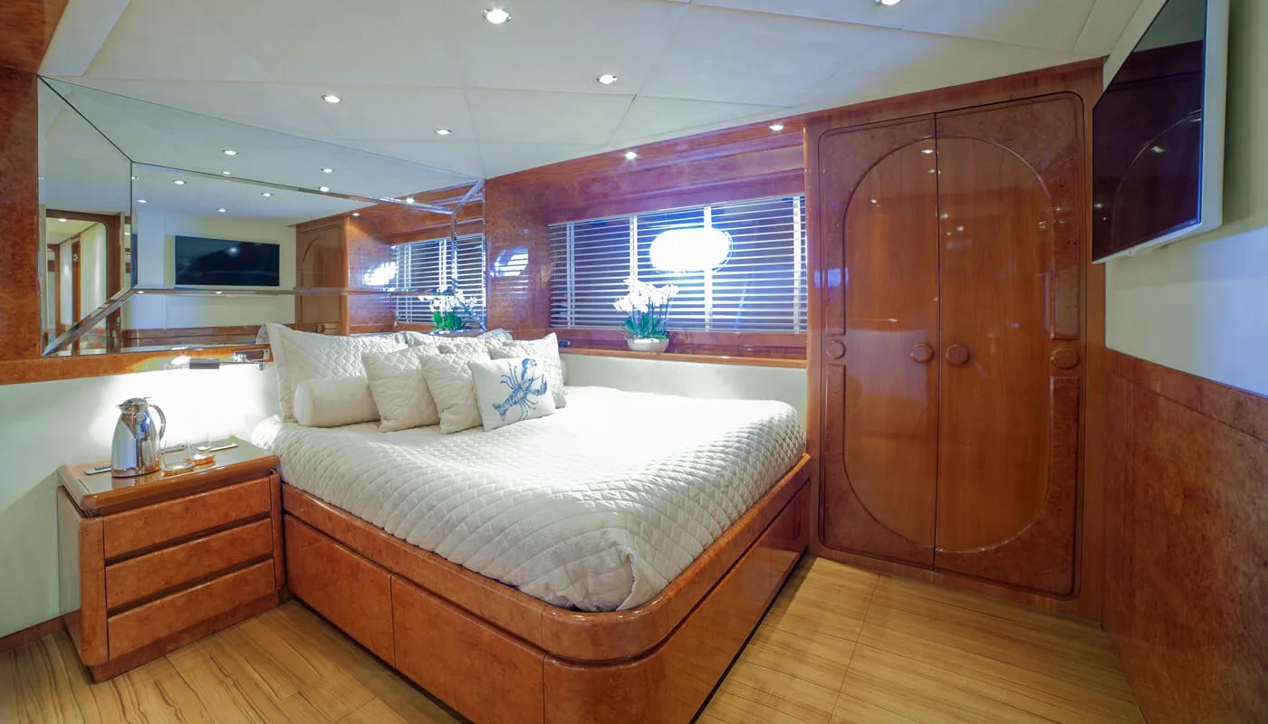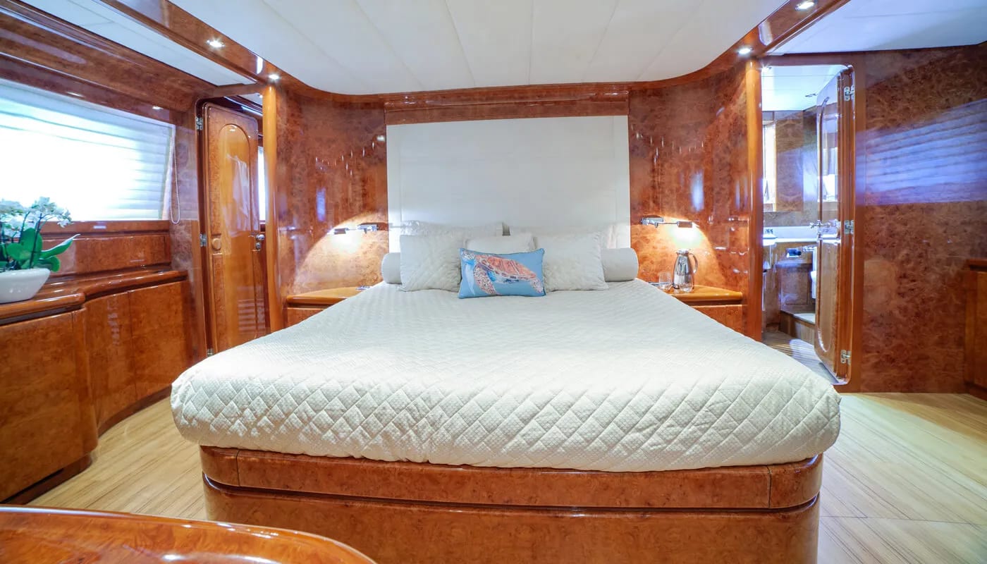 Zoi invites up to 10 guests to experience her refined accommodations, where each of the four cabins offers a sanctuary of restfulness. The master suite and VIP cabin provide a touch of grandeur with their king-sized beds, while two twin cabins, featuring pullman beds, ensure flexible arrangements for families or groups. Waking up aboard Zoi is a delight, as gentle waves lull you into a new day filled with promise and adventure.