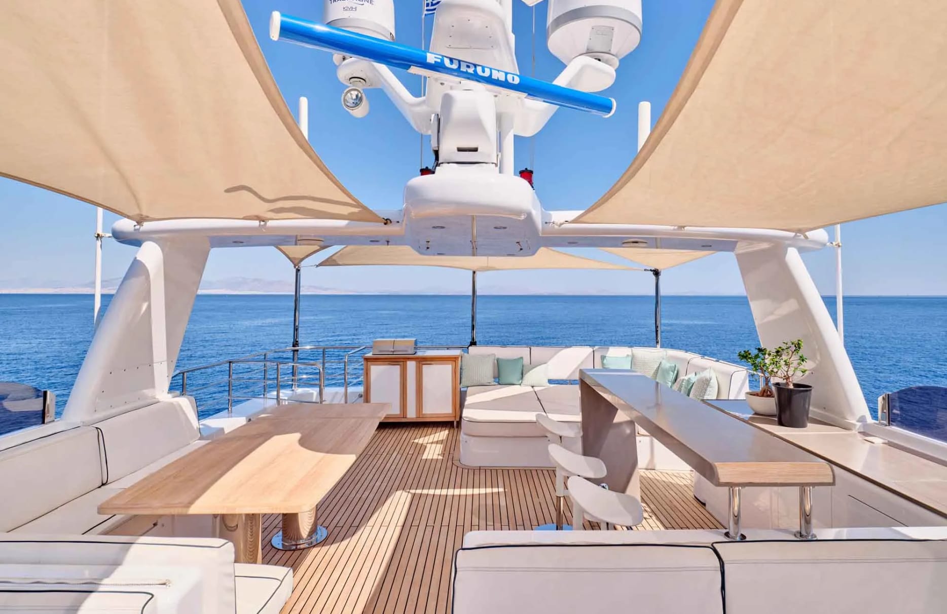 Aboard 3D, the art of relaxation and entertainment reaches new heights. Her inviting spaces, complemented by air conditioning, offer a sanctuary from the sun, while the sun deck provides a prime spot for basking in the day’s warmth. The exterior bar is an ideal setting for evening gatherings, where guests can savor fine spirits under the starlit sky. With Wi-Fi at your fingertips, staying connected is effortless, allowing you to share your journey’s highlights in real time. The yacht’s gym equipment ensures that wellness is never compromised, even in the midst of a nautical adventure.