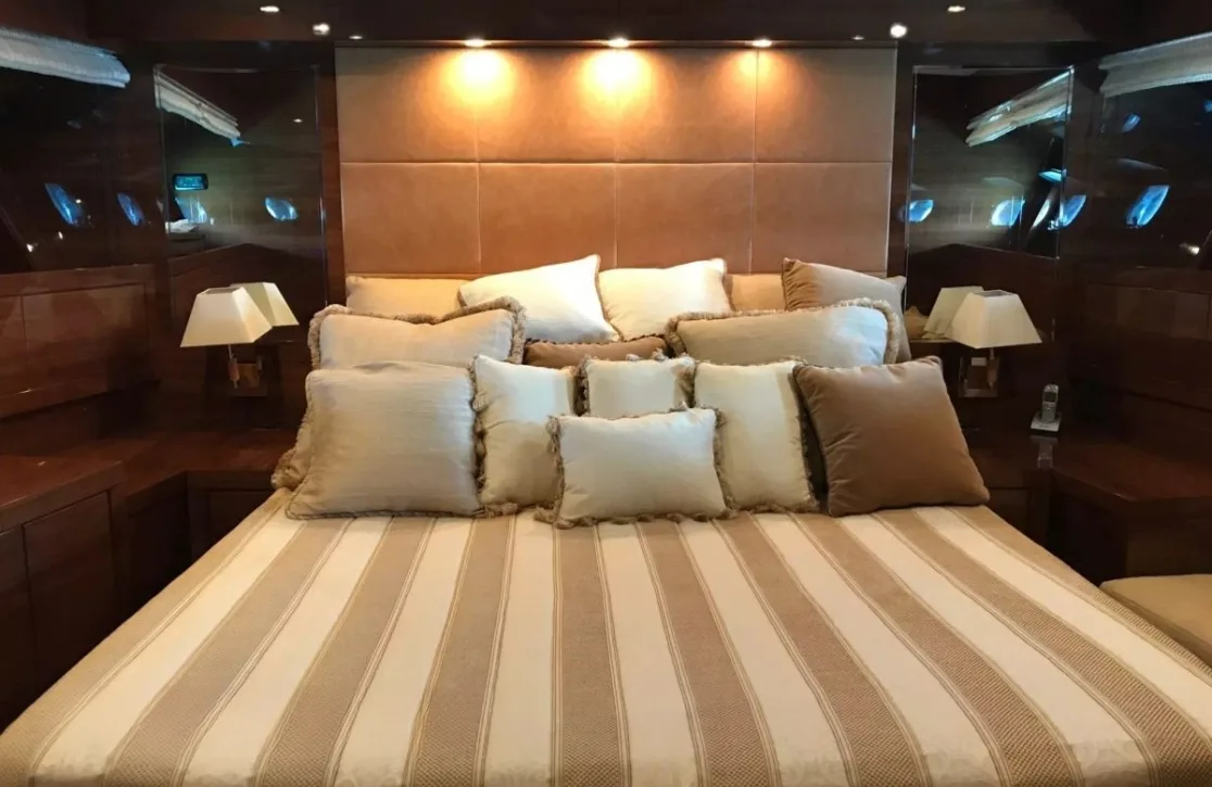 Life aboard 7 Zero is a seamless blend of indoor comfort and outdoor allure. Relish the soothing embrace of the sun while stretched out on expansive sunpads, or retreat to the cool luxury of her air-conditioned lounges. Her stabilizers ensure a smooth journey, whether anchored in a tranquil bay or underway, while high-speed Wi-Fi keeps you as connected as you wish to be. The yacht’s swimming platform offers easy access to the inviting waters, promising both relaxation and adventure.