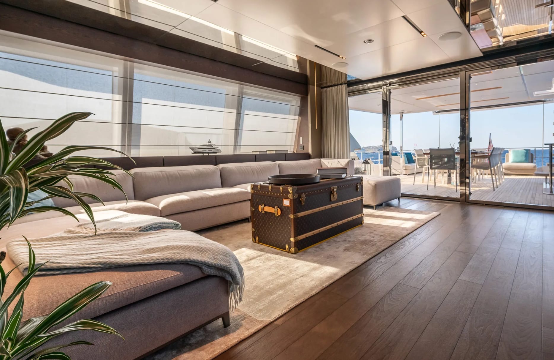 The moment you step aboard Acqua, a world of refined comfort envelops you. Feel the gentle sea breeze on the foredeck seating as you enjoy a convivial breakfast, or unwind in the serene beach club as the sun dips below the horizon. The deck jacuzzi offers a haven of relaxation, perfect for starlit evenings, while the gym equipment ensures you can maintain your wellness routine. With Wi-Fi throughout and an exterior bar for entertaining, every detail is crafted for your pleasure.