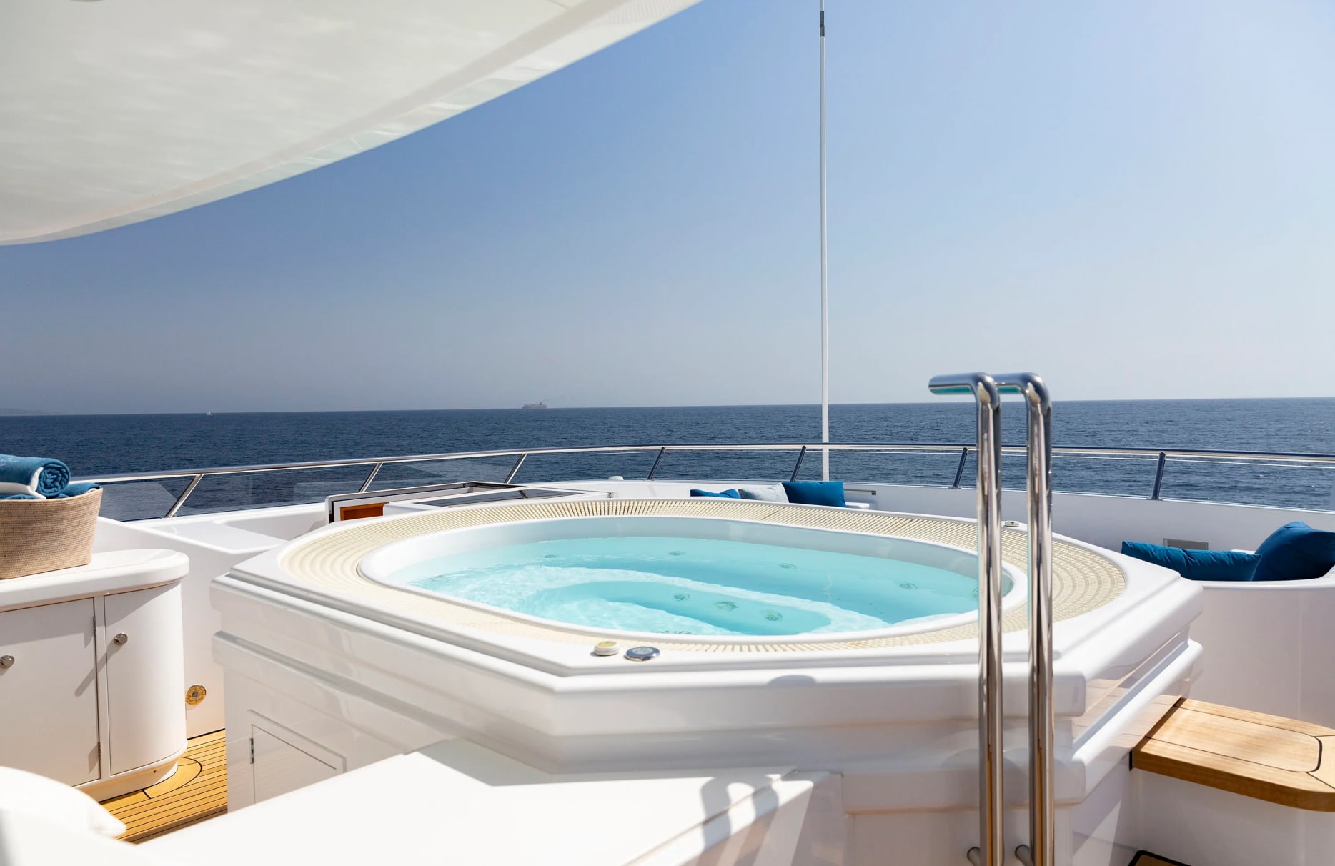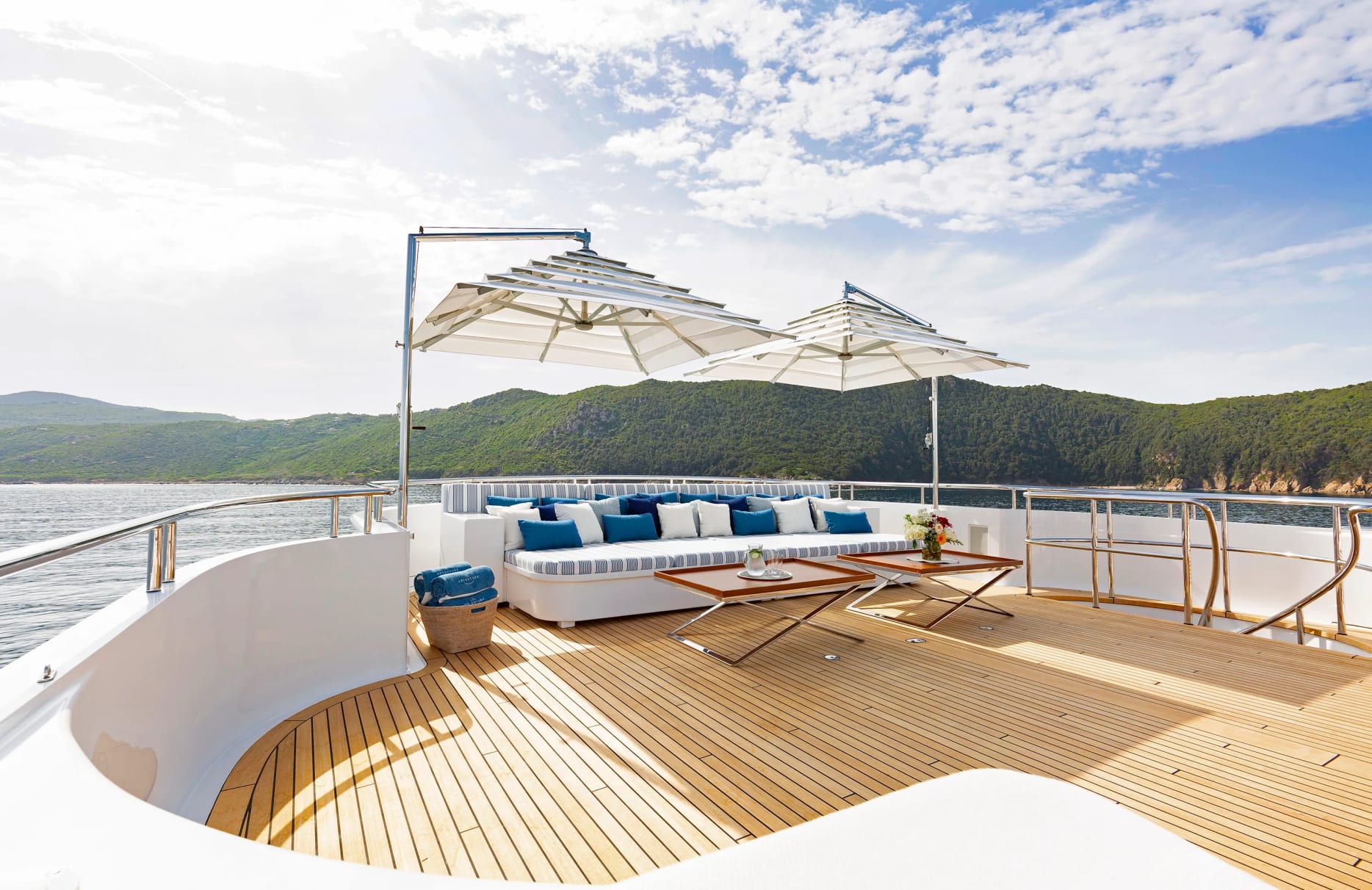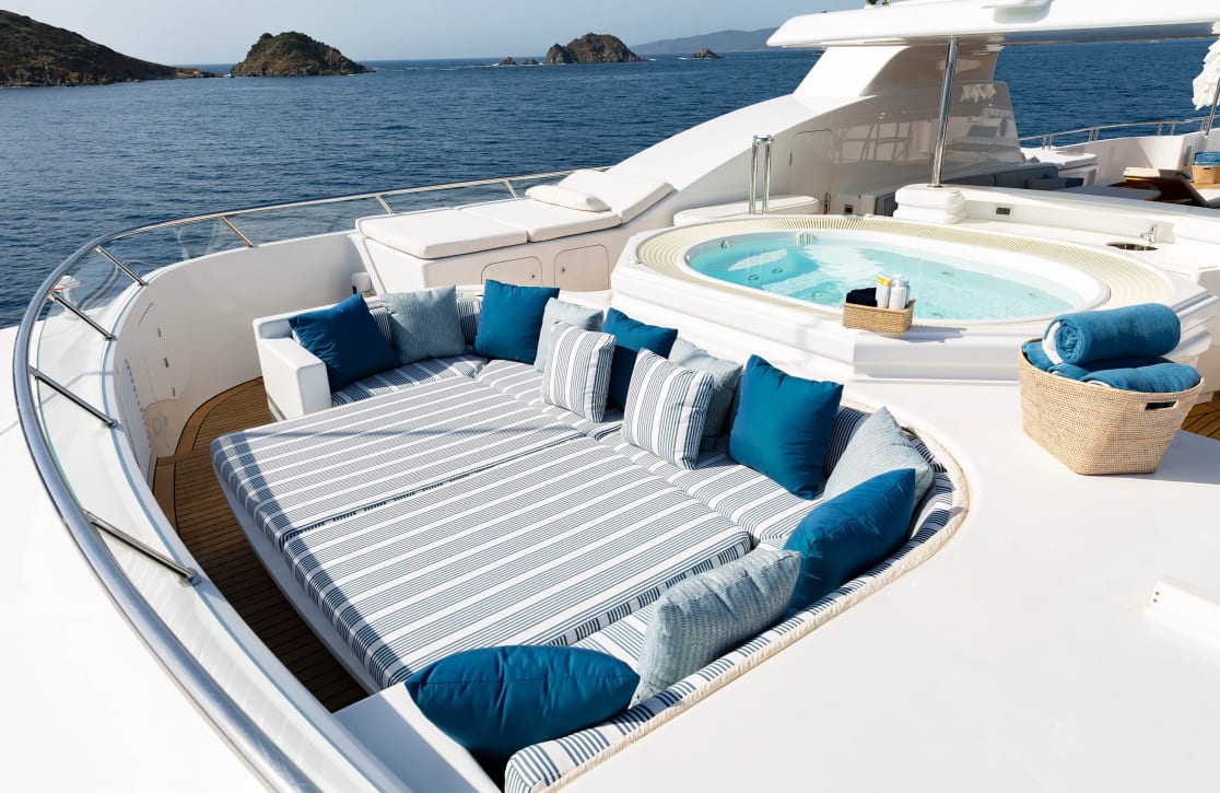 Aboard ‘Adventure,’ each day unfurls with the promise of relaxation and delight. Begin your morning with a refreshing dip from the swimming platform or enjoy a tranquil yoga session on the sun deck. As the day unfolds, the beckoning deck jacuzzi offers a serene backdrop for afternoon lounging, while the exterior bar serves as a convivial gathering spot for evening cocktails under a starlit sky. With state-of-the-art Wi-Fi and a rich selection of video on-demand, guests can remain connected and entertained throughout their voyage. The expansive beach club invites leisurely afternoons, while the fully equipped gym ensures fitness enthusiasts can maintain their routine surrounded by panoramic ocean views.