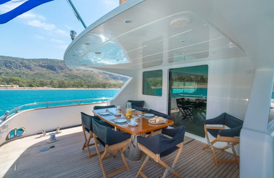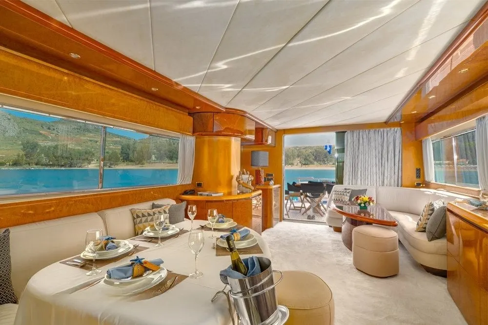 Embark on a journey aboard AlanDiNi, a timeless motor yacht that has gracefully sailed the Mediterranean’s azure waters for over two decades. Launched in 1997 by the esteemed Italian shipyard Maiora and thoughtfully refitted in 2018, she offers a harmonious blend of classic charm and modern comfort. Imagine a week spent basking in the sun-drenched landscapes of Greece, exploring hidden coves by day and relishing the peaceful serenity of the starlit sea by night. With a cruising speed of 20 knots, AlanDiNi seamlessly transports you to each day’s new adventure, offering the perfect balance of relaxation and exploration.