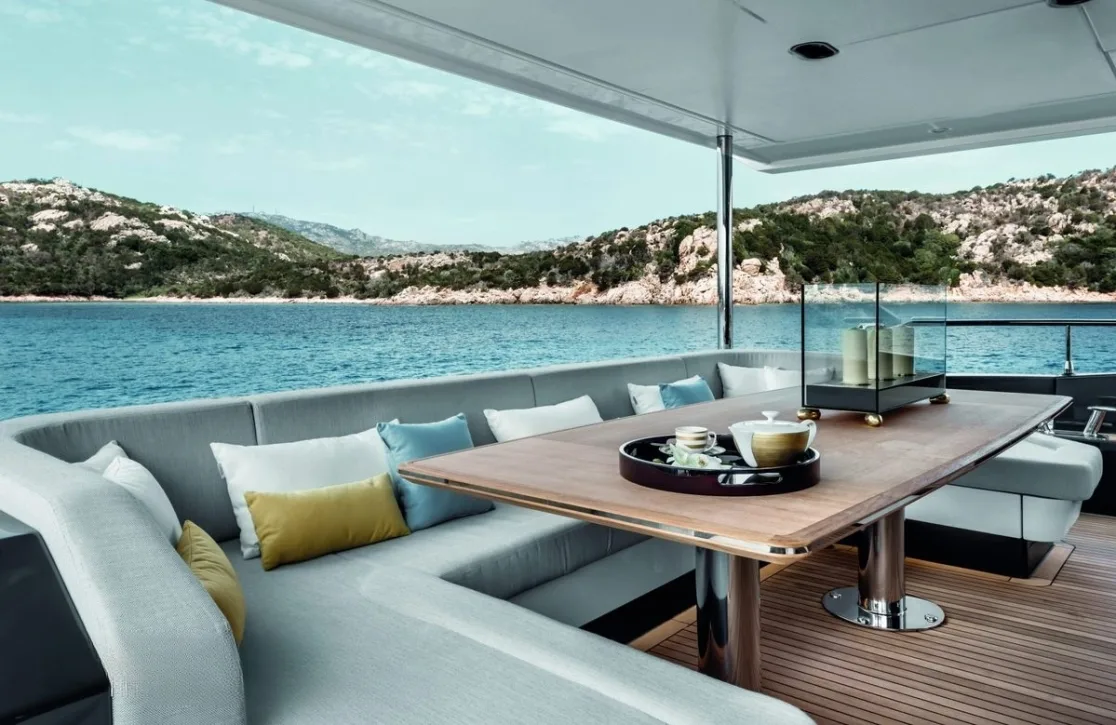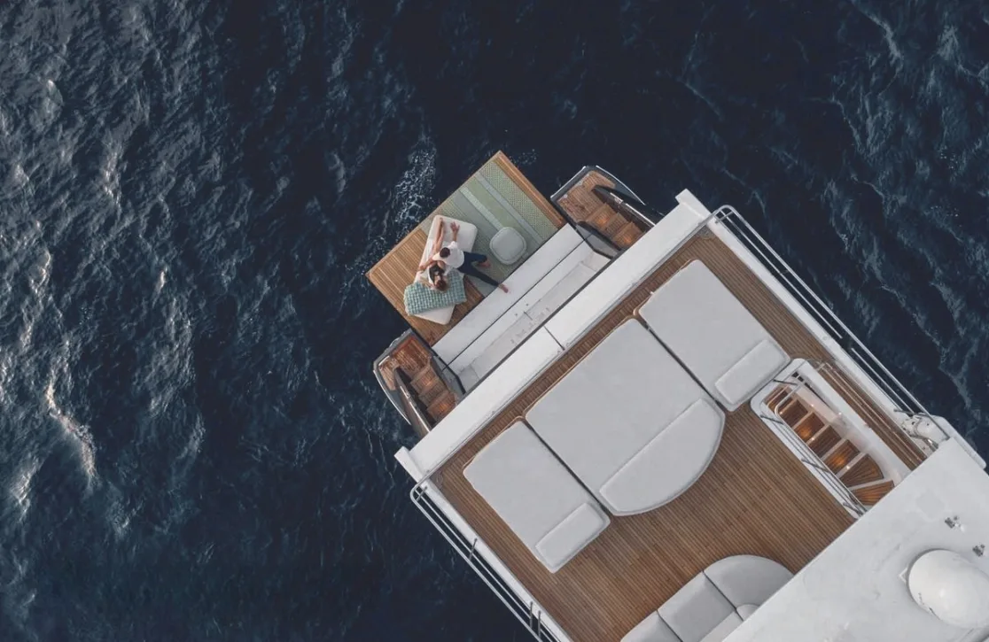 Aboard Aluminia Too, each moment is an invitation to delight. Her expansive sun deck beckons for leisurely afternoons under the sun, while an exterior bar sets the scene for evening gatherings under starlit skies. The hydraulic swim platform allows for effortless dips into crystal-clear waters, and a deck jacuzzi offers a serene retreat with breathtaking ocean vistas. Whether you choose to connect with the world via onboard Wi-Fi or simply unwind in air-conditioned comfort, Aluminia Too ensures every need is met with grace.