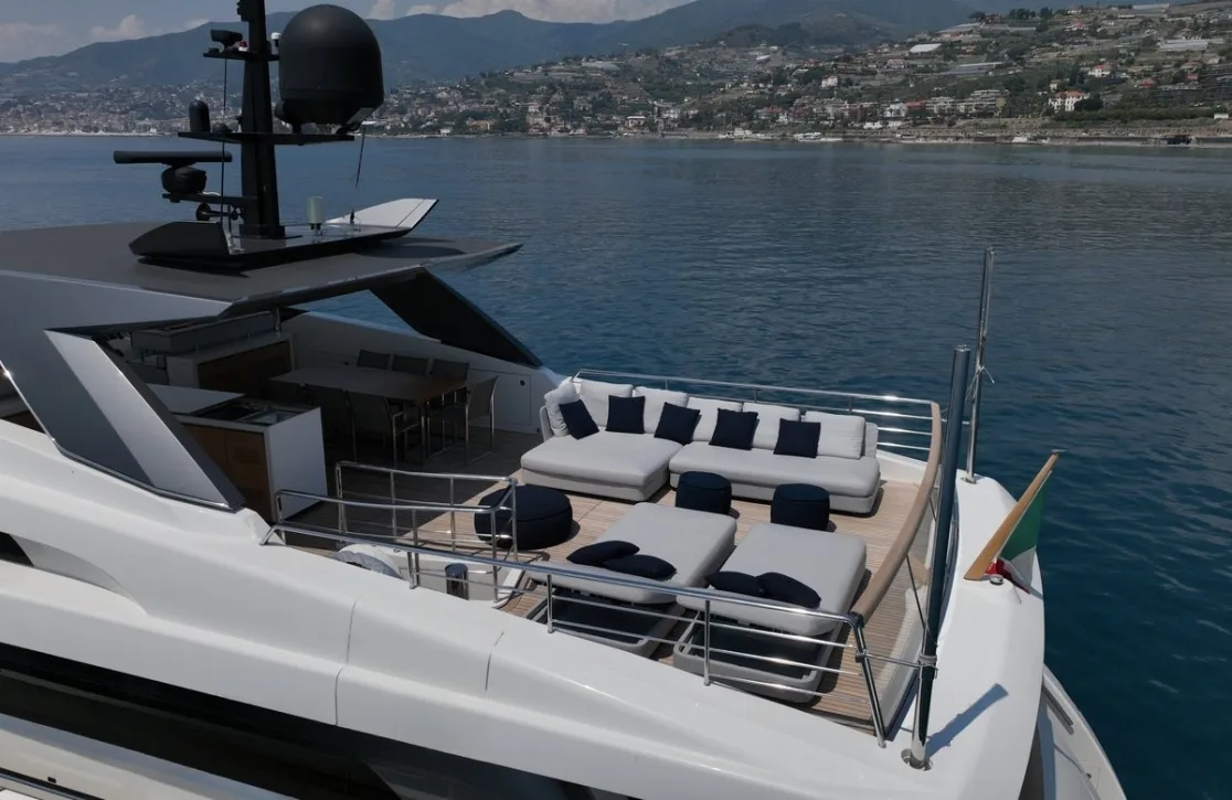 Aman’s decks are a symphony of spaces designed to enhance your time at sea. The outdoor cinema invites you to enjoy a starlit movie night, while the sun deck provides the perfect backdrop for soaking in the Mediterranean sun. Culinary delights await as you indulge in alfresco dining, with a barbecue sizzling and a drink crafted at the exterior bar. For those seeking a blend of leisure and excitement, the hydraulic swim platform offers effortless access to the sea, while the tender garage ensures seamless transitions between your aquatic adventures and onboard tranquility.
