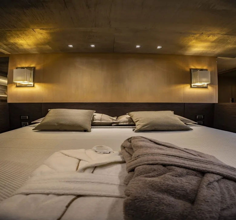 Accommodating up to ten guests in five thoughtfully designed suites, Aman ensures that each guest wakes up to the gentle lull of the Mediterranean waves. The subtle elegance of the cabins, enhanced by air conditioning and Wi-Fi connectivity, creates a sanctuary of comfort. Each room is a private oasis, inviting you to unwind and rejuvenate after a day of exploration. As sunlight filters through, the ambiance is one of serene luxury, making every morning a delightful awakening.