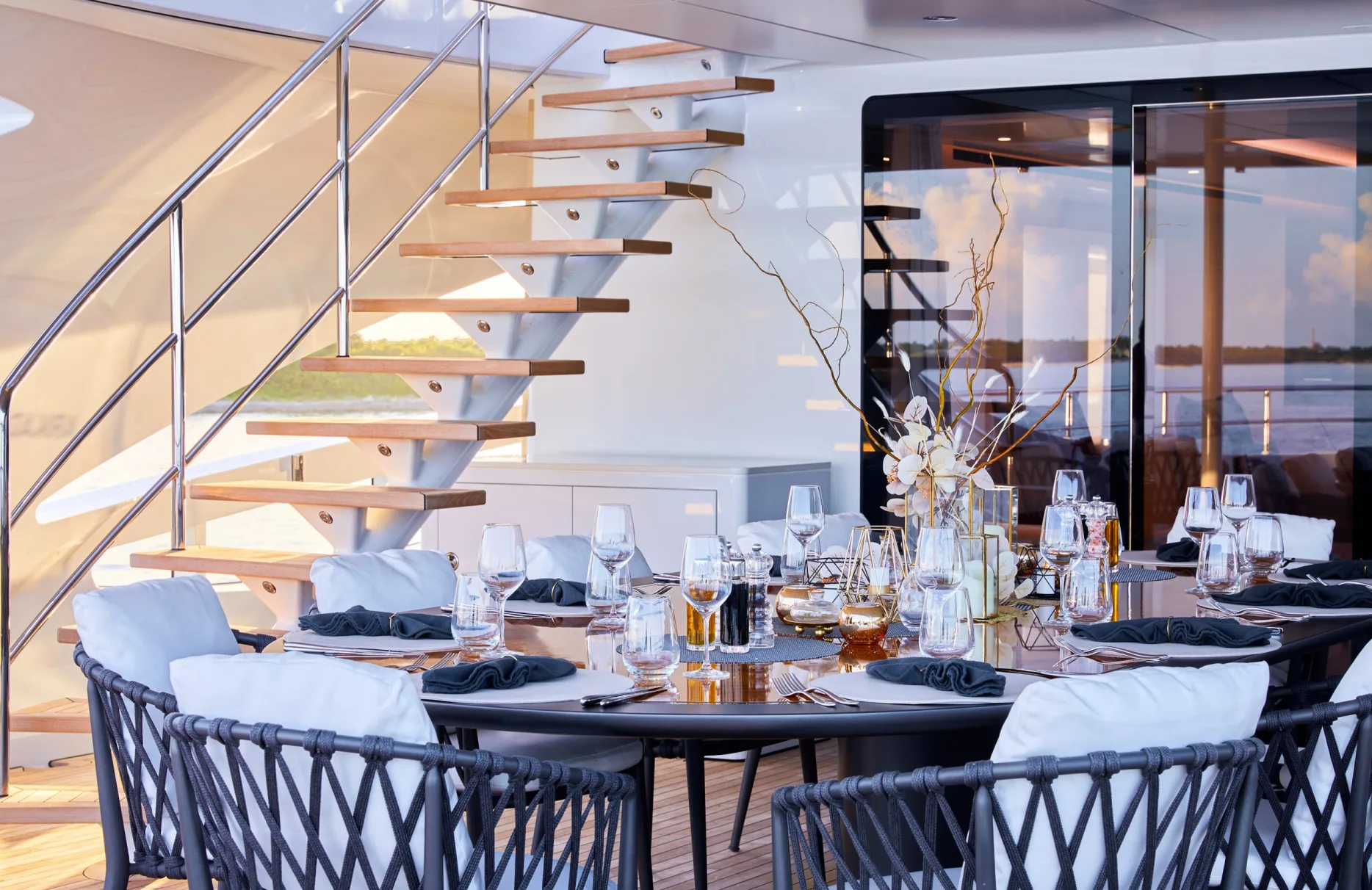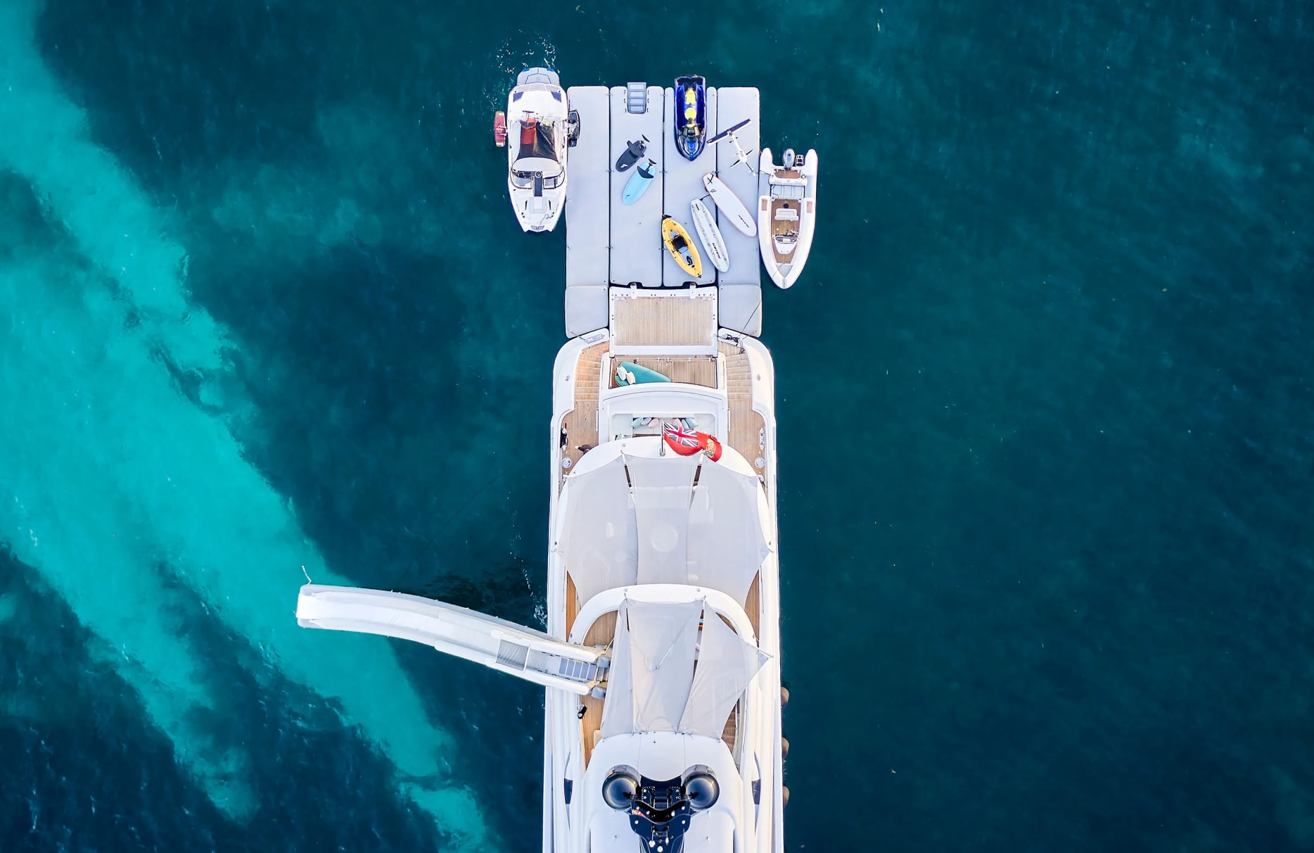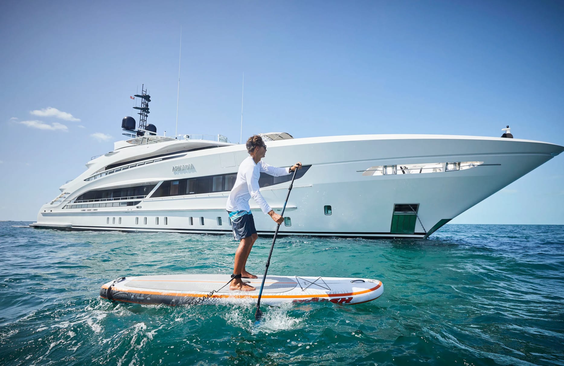 While the Arkadia invites you to revel in her inviting interiors and expansive decks, she also beckons you to explore the world beyond her hull. Each day aboard can be as serene or adventurous as you wish, with opportunities to indulge in water sports, visit secluded beaches, or savor the culinary delights prepared by your dedicated crew. With nine attentive crew members ensuring every detail is perfect, your time aboard is a bespoke experience tailored to your desires. Arkadia is more than a yacht; she is your gateway to a world of refined exploration.