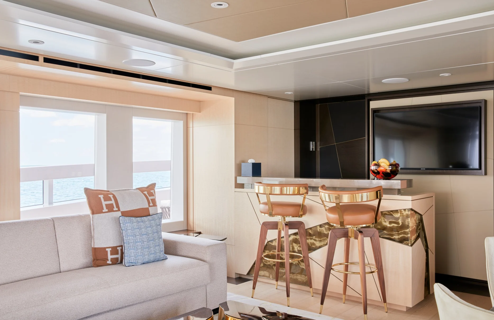 On board the Arkadia, a 50-meter masterpiece crafted by Heesen, every moment is a symphony of elegance and adventure. As you journey across the seas at a comfortable 12 knots, with the capability to reach 15, you’re not merely traveling; you’re exploring a realm where the ocean becomes your playground. With a range of 3,800 nautical miles, your itinerary can be as expansive as your imagination. Whether you’re lounging on the sun-drenched deck or preparing to explore a hidden cove, Arkadia offers an experience that is both intimate and exhilarating. The yacht’s design, courtesy of the celebrated Reymond Langton, invites you to discover the seamless blend of style and comfort that defines life on board.